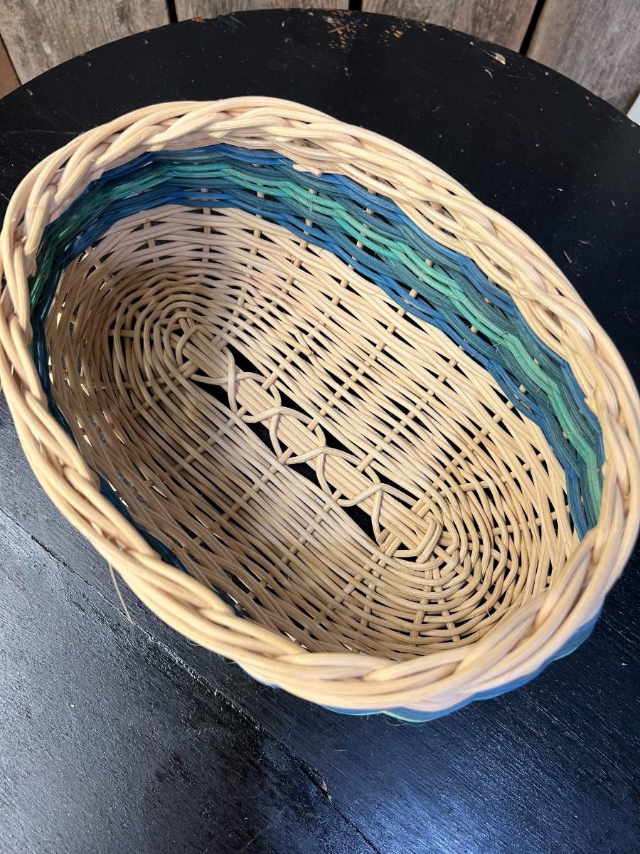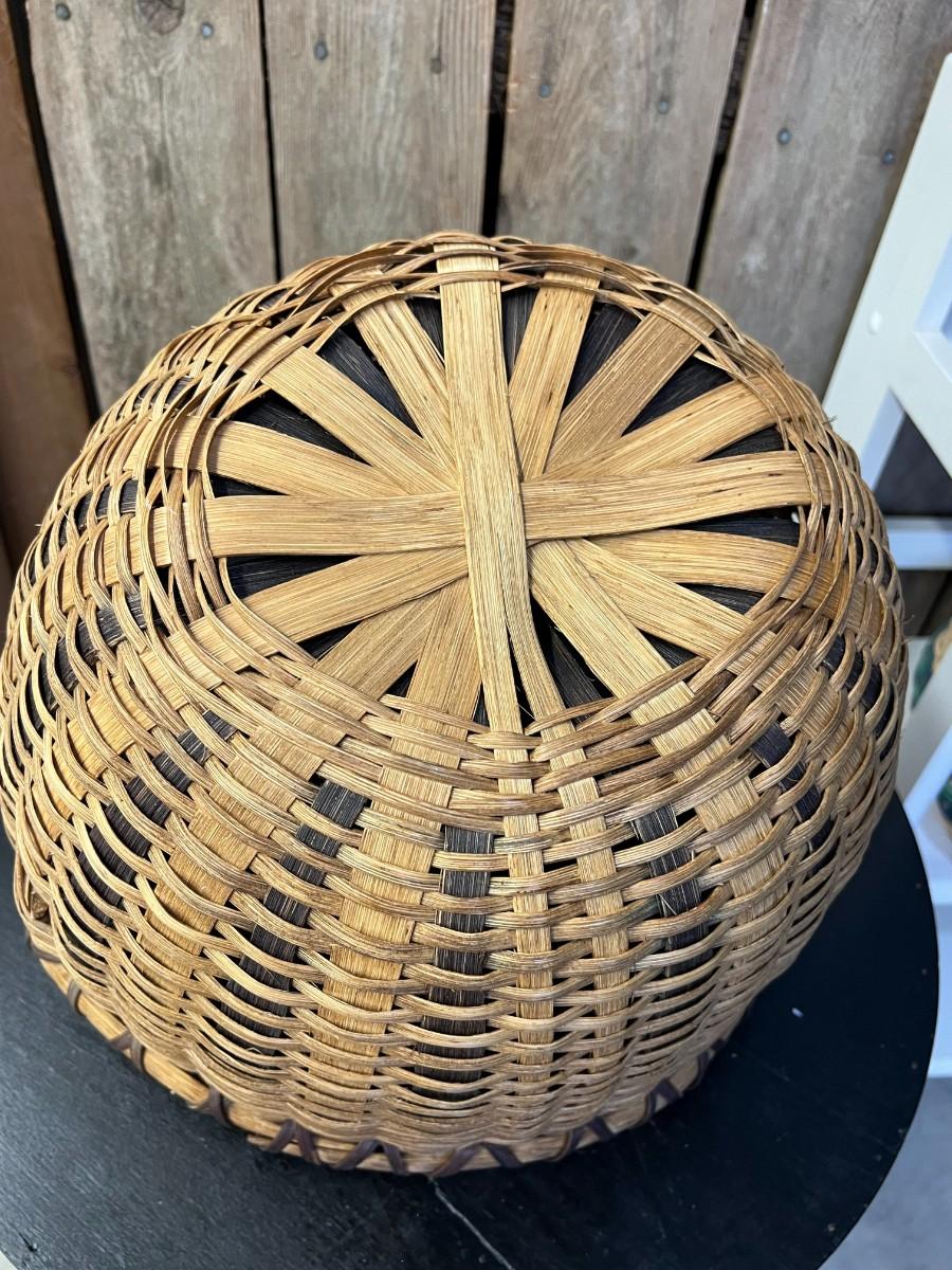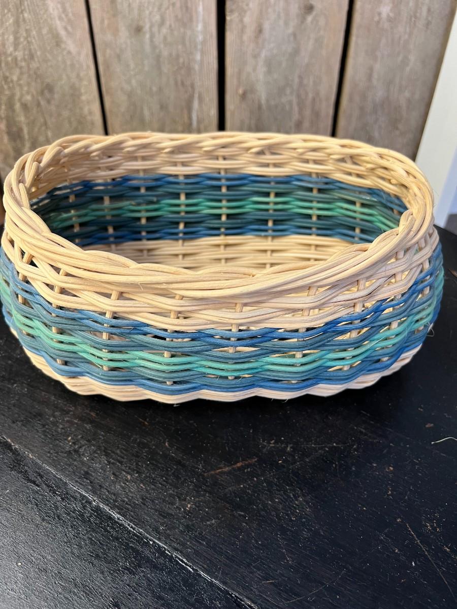 Cherokee style twist art neutral and blues handwoven basket.