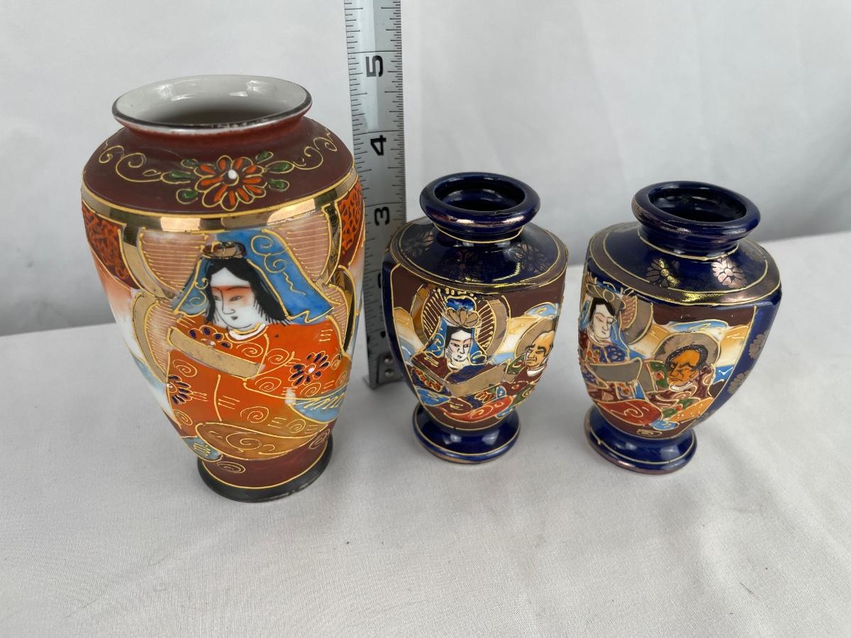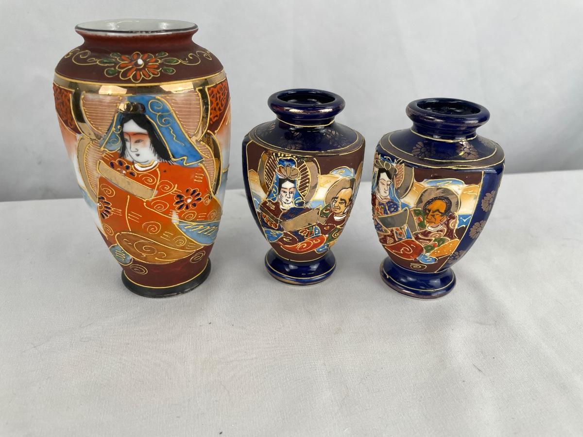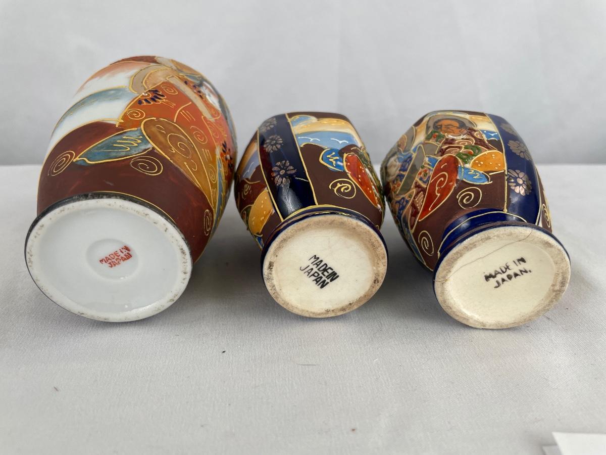 3 vintage hand painted Satsuma vases