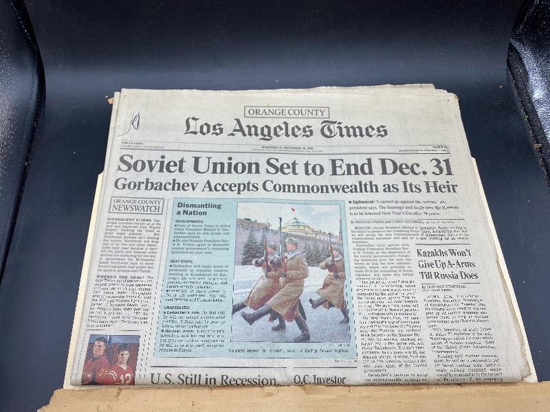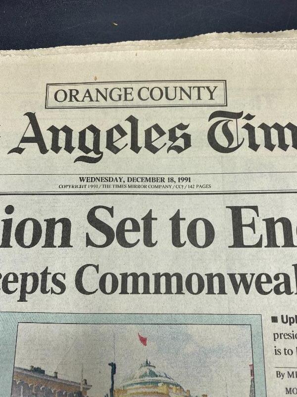 Three Vintage Los Angeles Times Headline Papers WWII & Soviet Union End