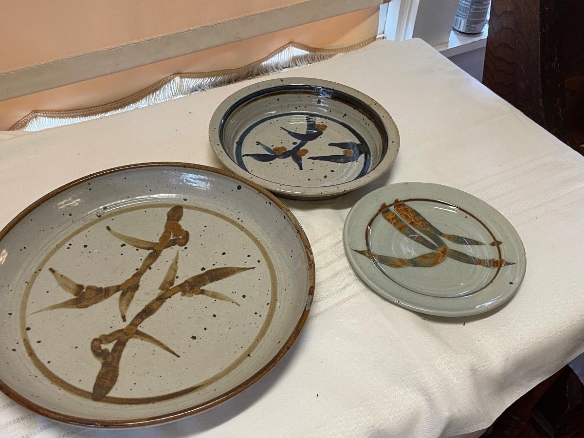 Three Vintage Stoneware Plates