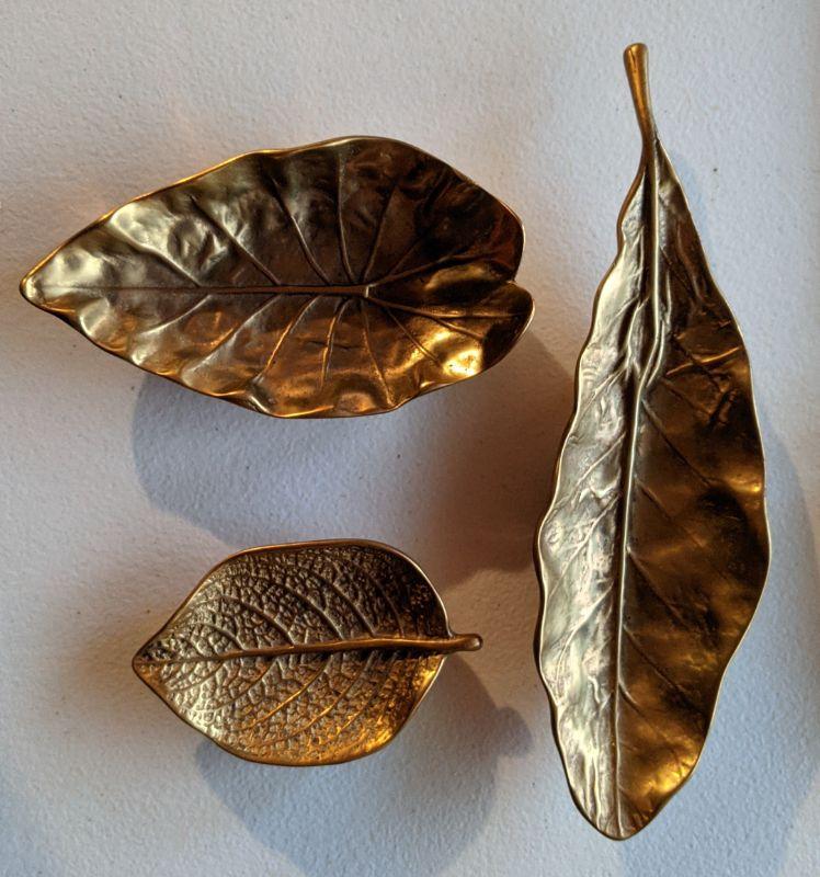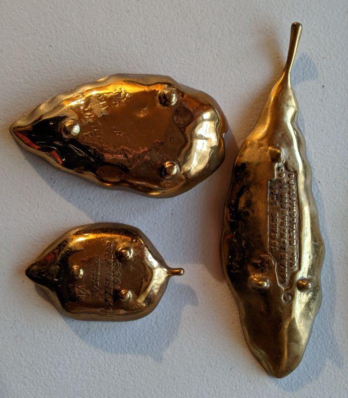 Three vintage Virginia Metalcrafters Leaf trinket or ashtrays 1948 and 1963