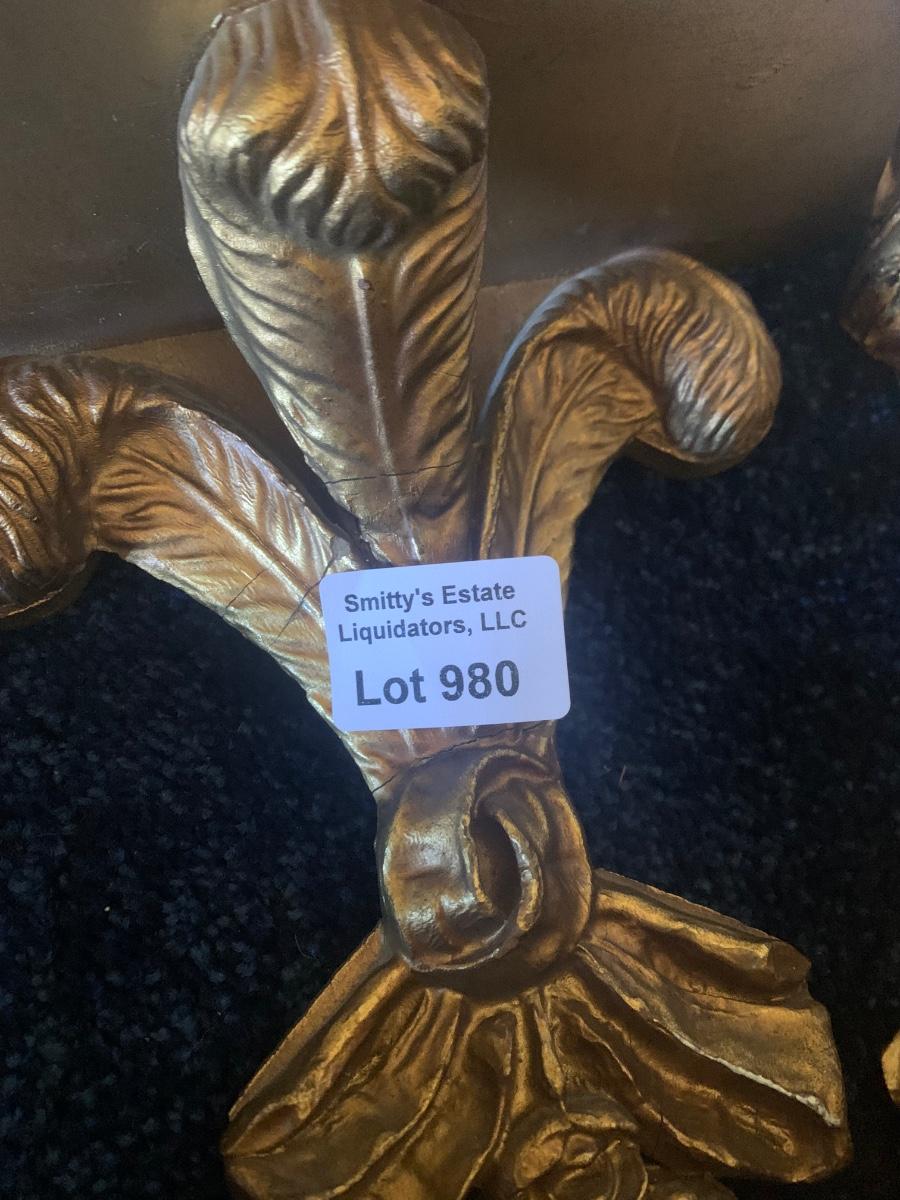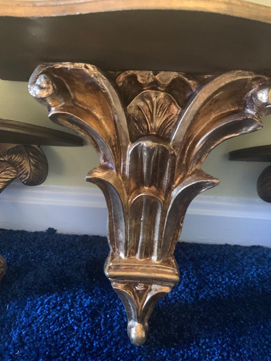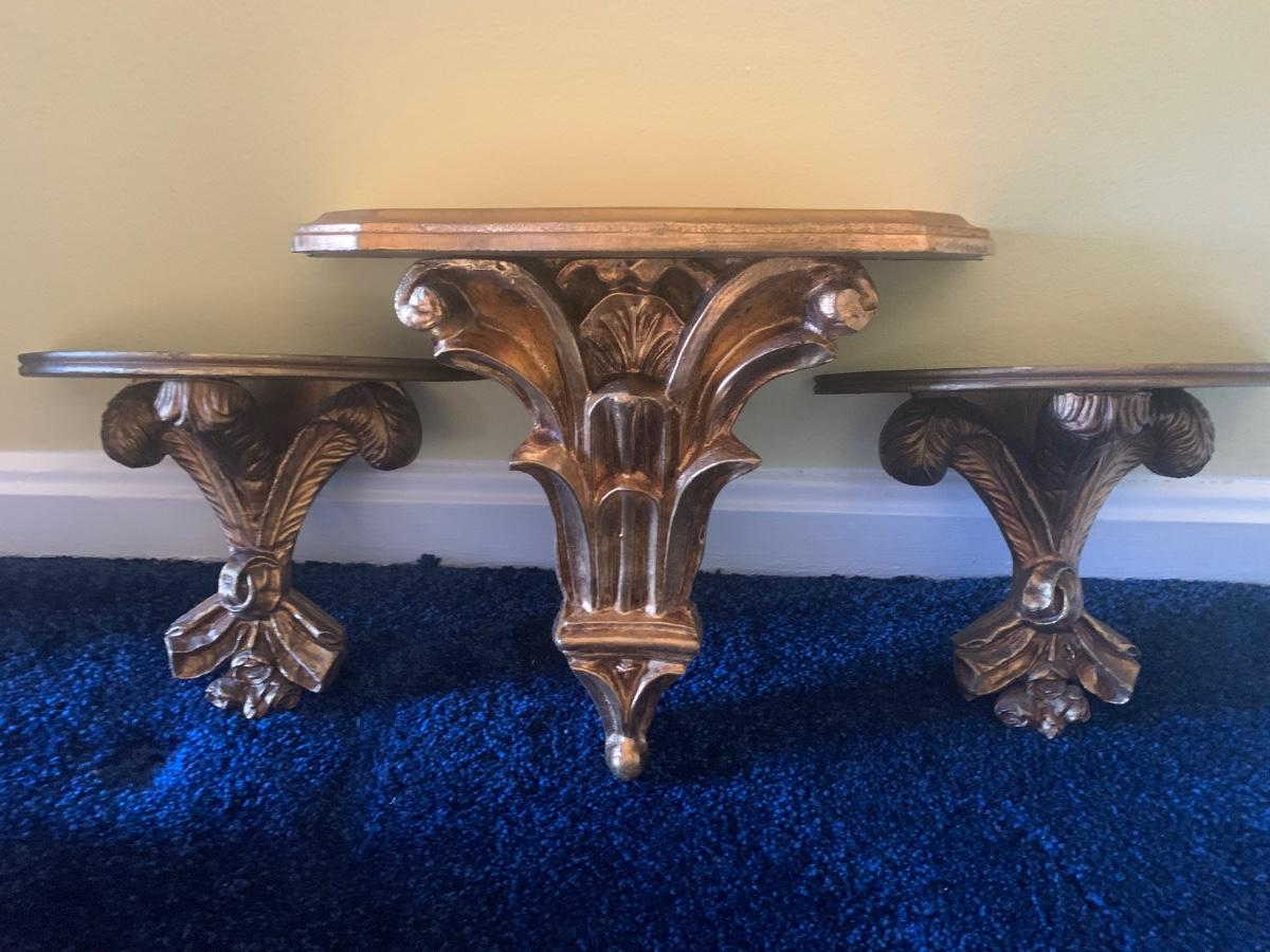 THREE Vintage Wood Wall Gold Gilt Sconces