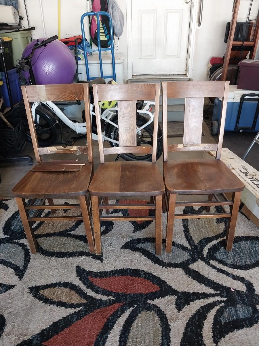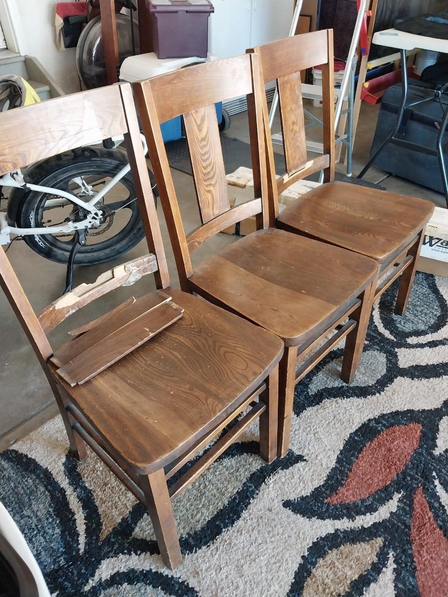 THREE VINTAGE WOODEN CHAIRS ^REFURNISH PROJECT
