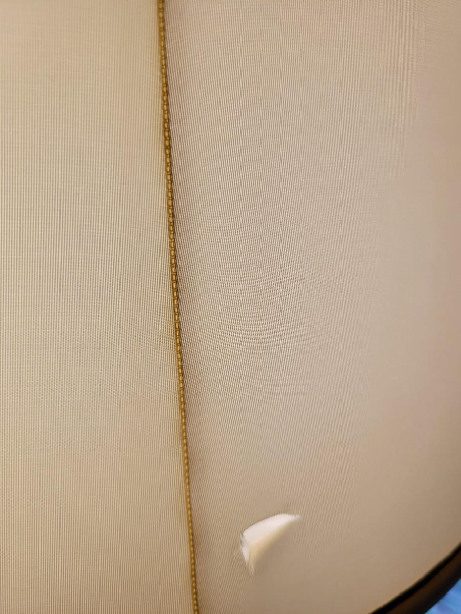 Lamp shade has a small tear on the back (out)side.