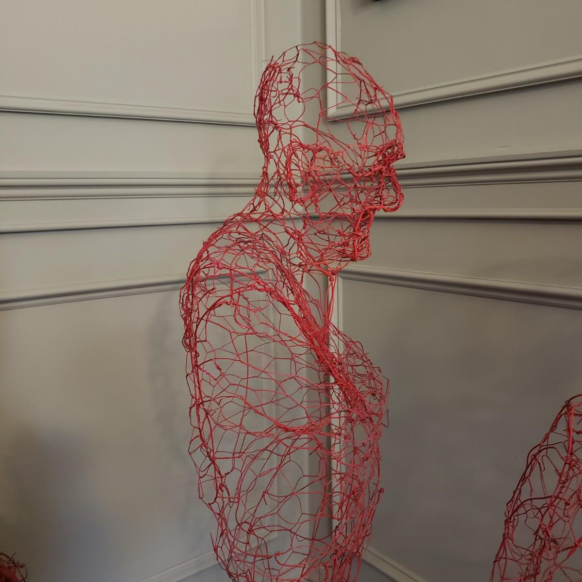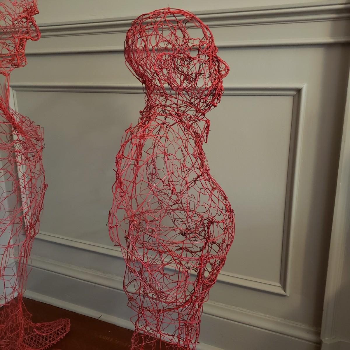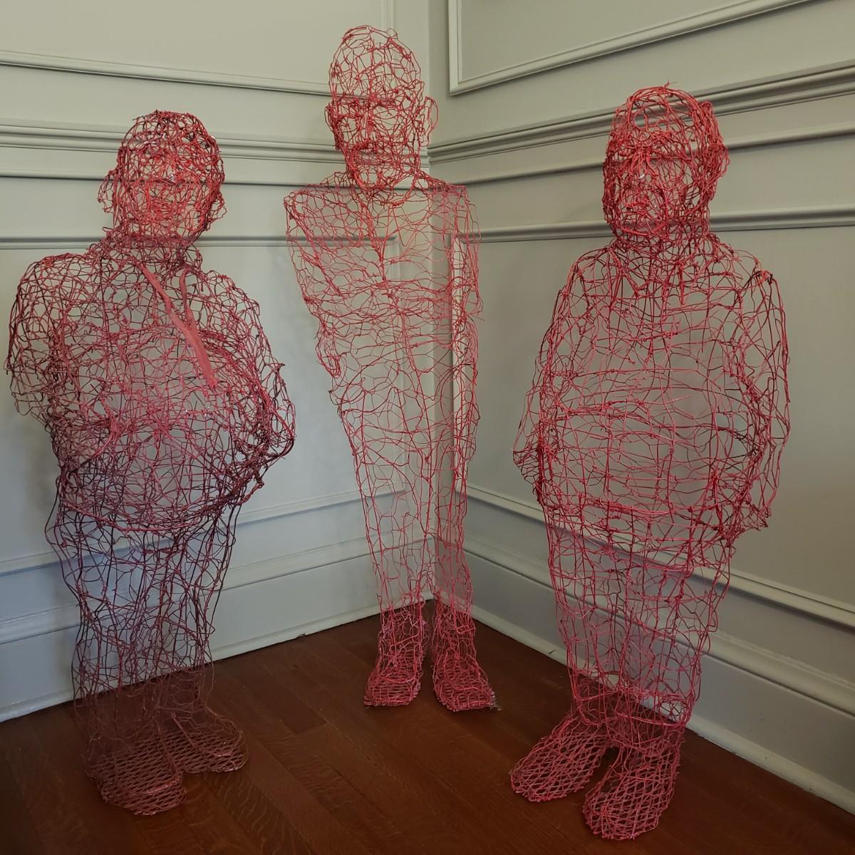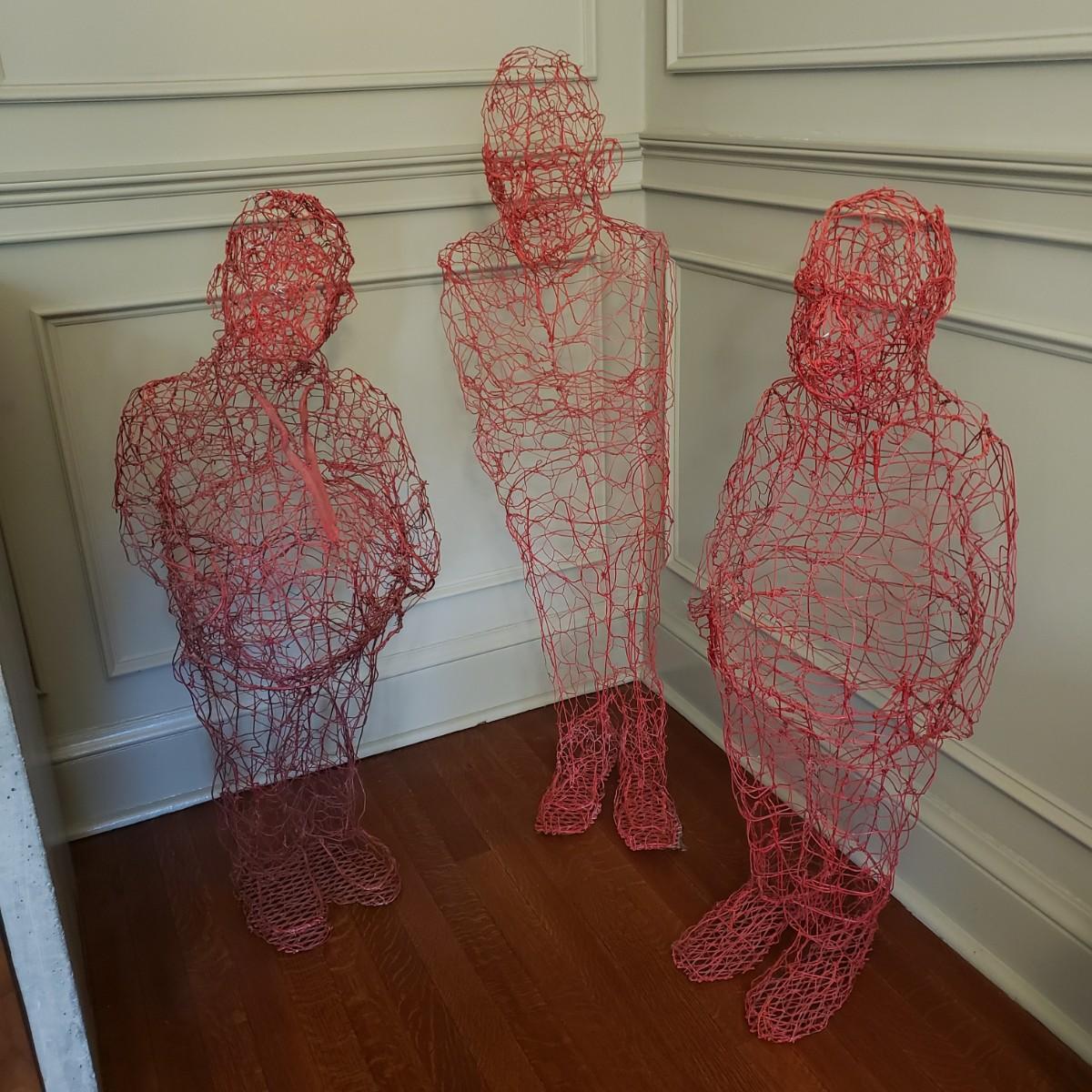 These three unique wire sculptures completely capture these three gentlemen's characters. Photos may or may not do these justice, but you can see their faces with expression, the details in their arms, bellies and stance.