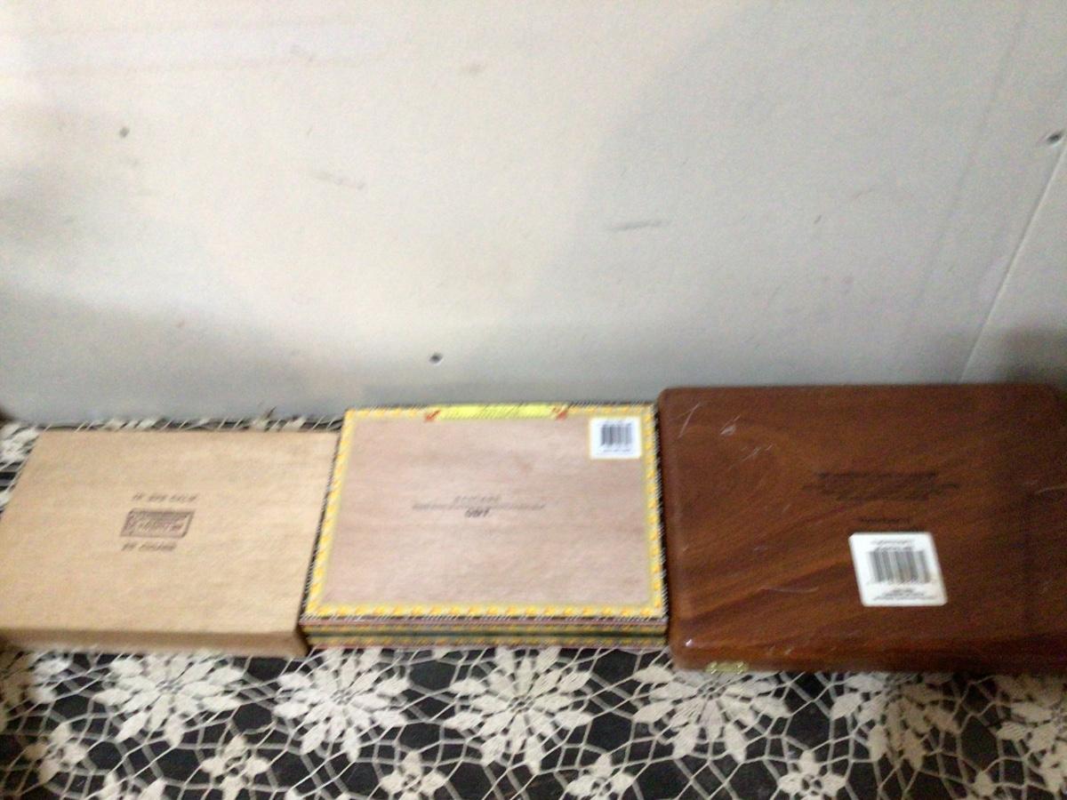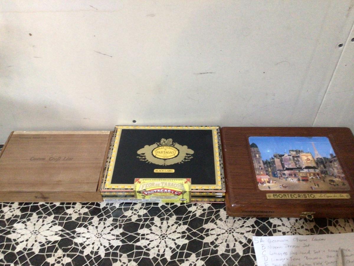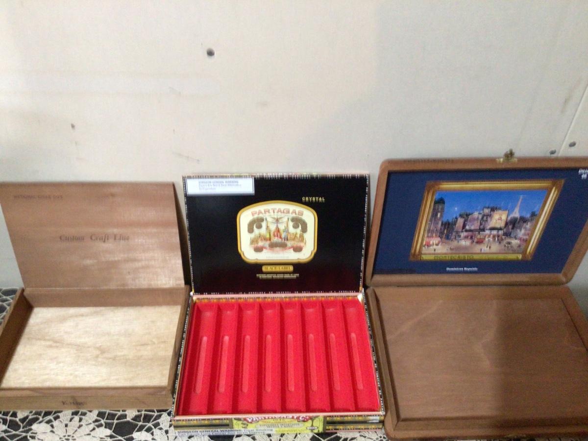 This is great set of three wood cigar boxes. You get Montecristo, Partagas, and Custom Craft Line.