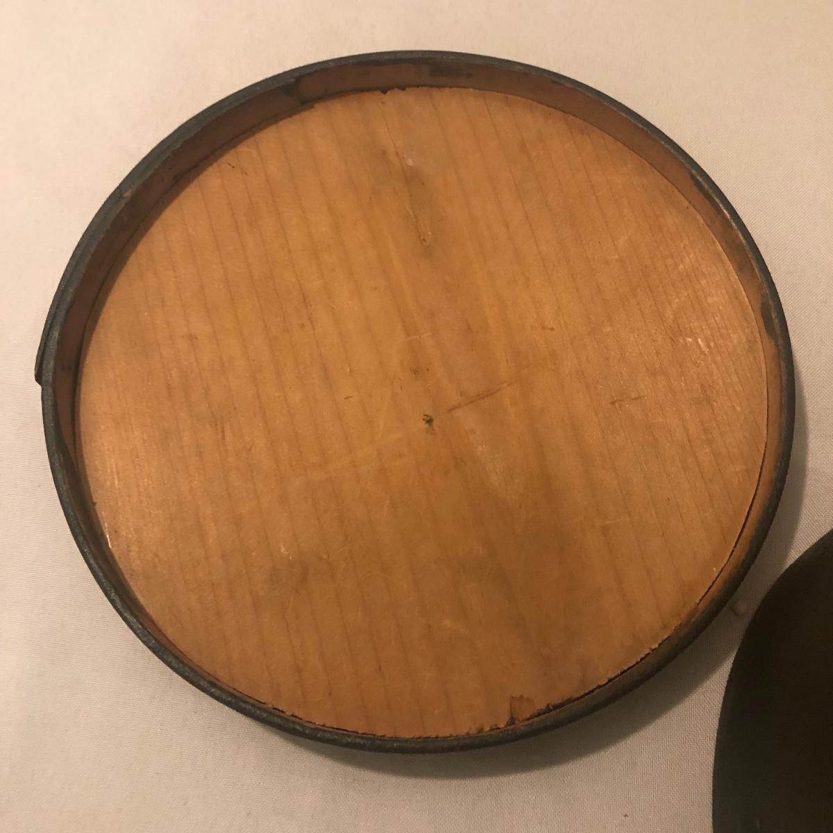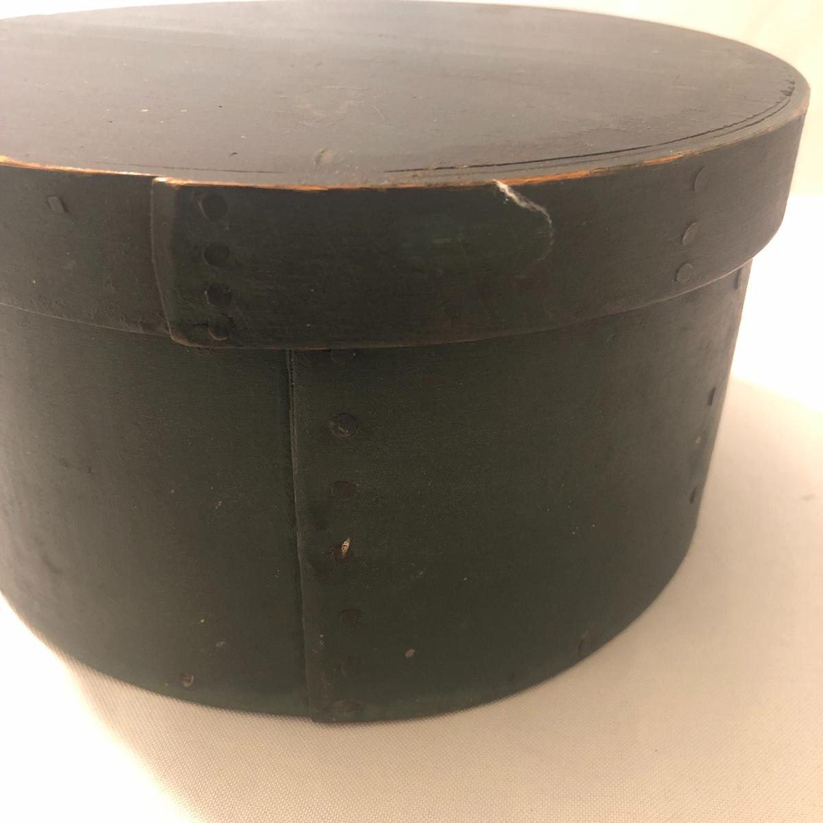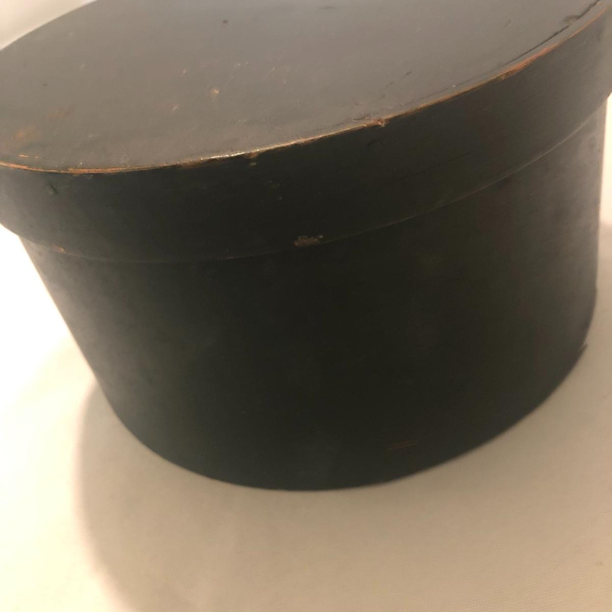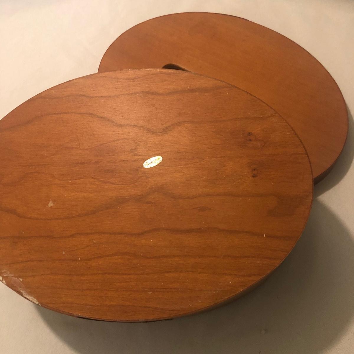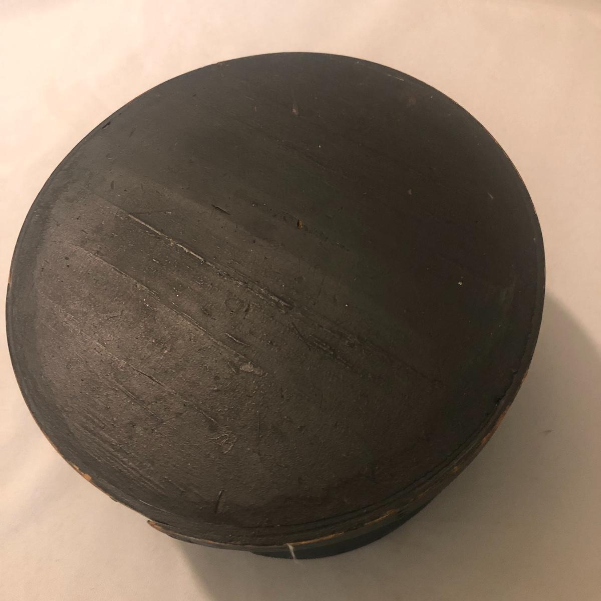 This lot contains three wooden boxes. Dimensions of the tissue box is 12” x 9”. The black box is 8” diameter and the red one 6”. Shipping Available. All have fitted lids. Shipping Available.