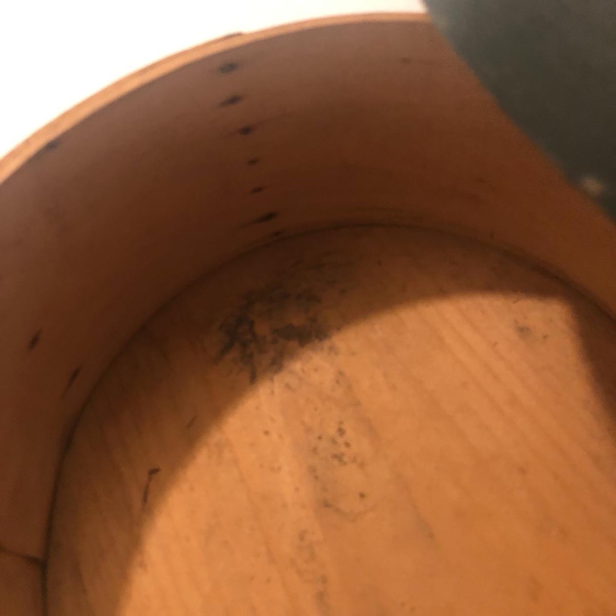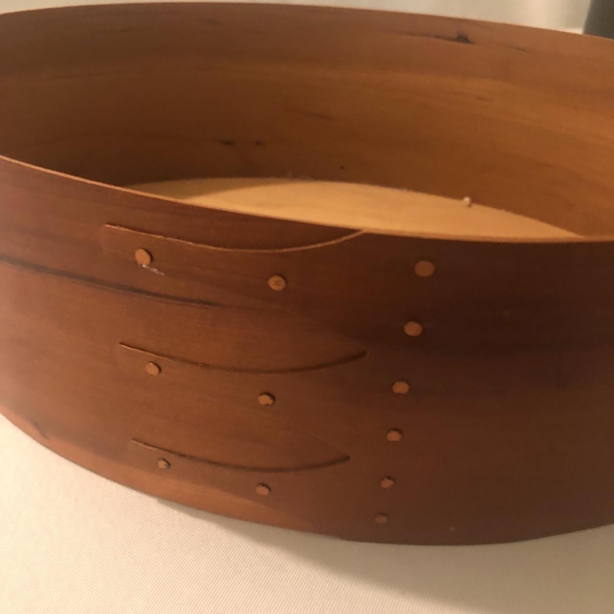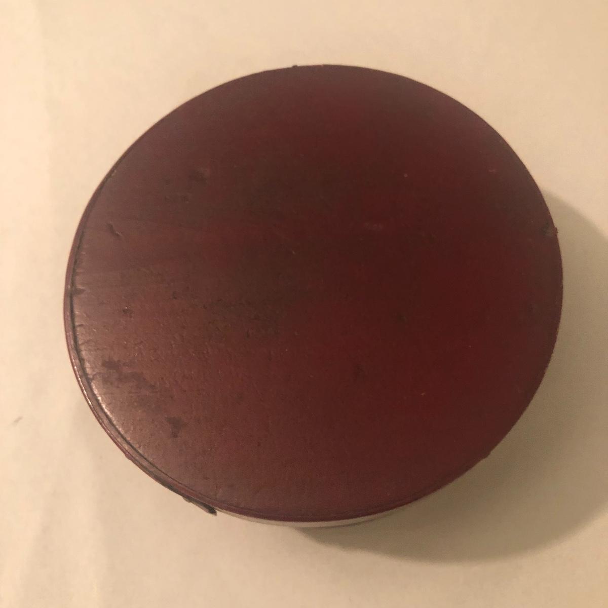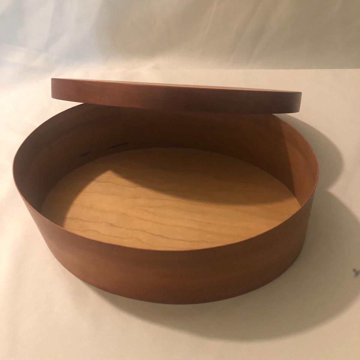 This lot contains three wooden boxes. Dimensions of the tissue box is 12” x 9”. The black box is 8” diameter and the red one 6”. Shipping Available. All have fitted lids. Shipping Available.