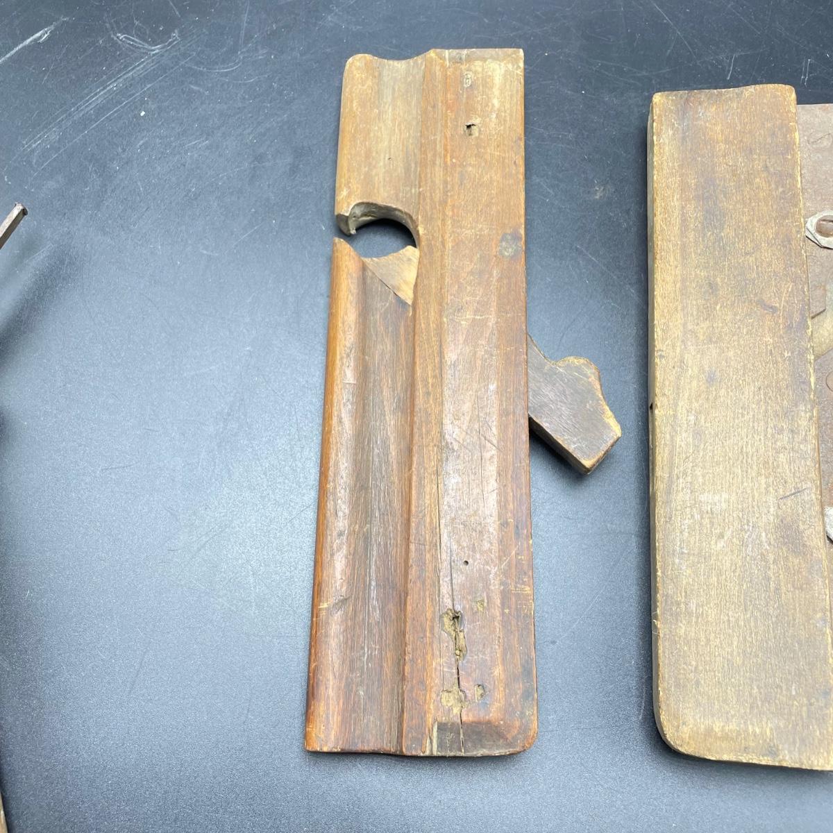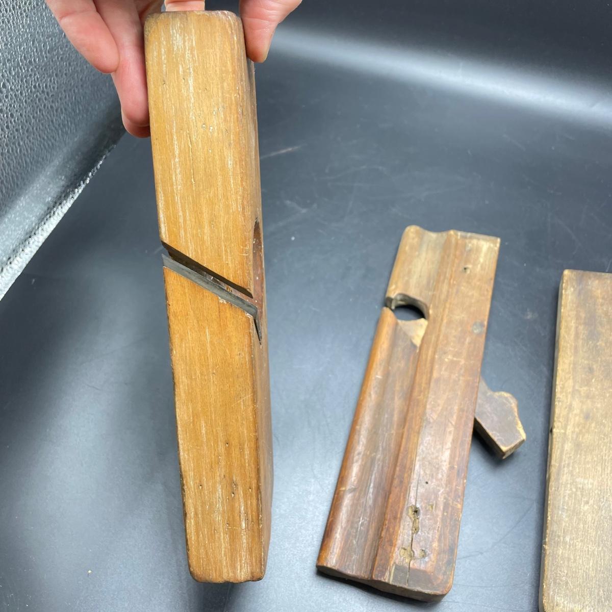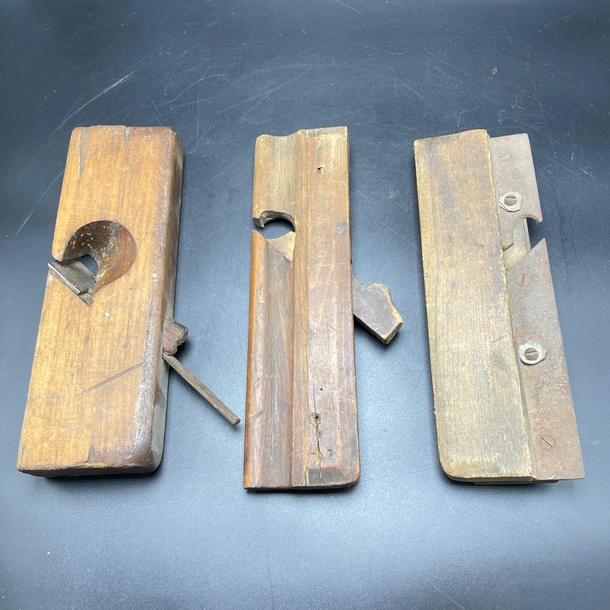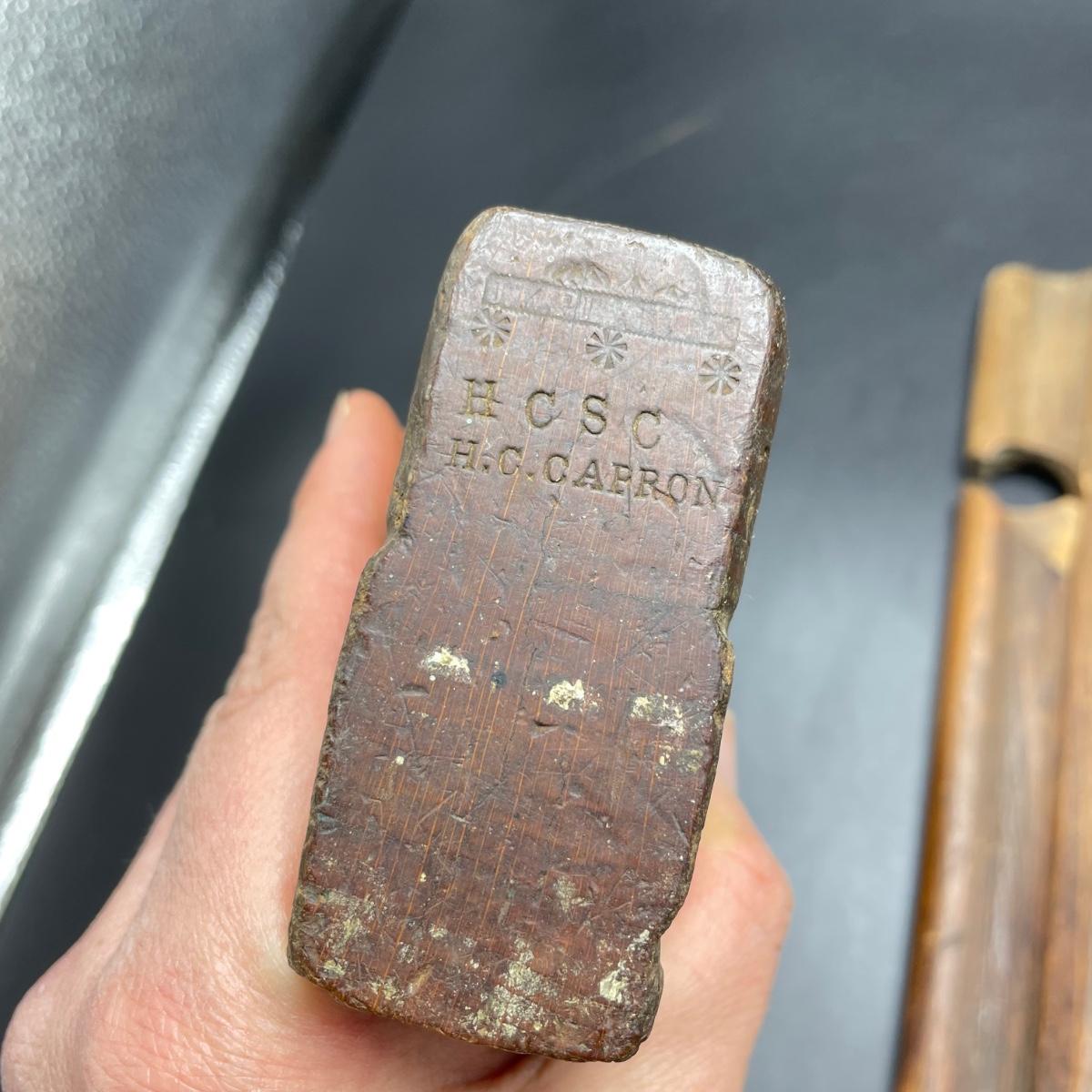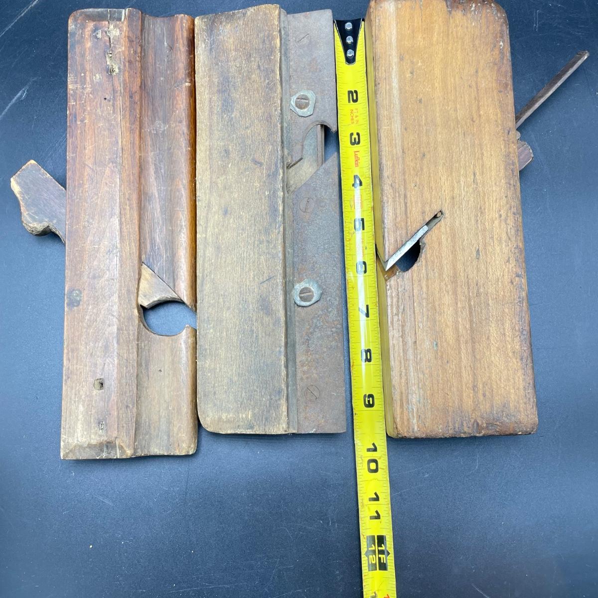 Three vintage wooden planes. One is marked HCSC HC CAPRON. The other two planes are missing their irons and one is missing the cap lever. Shipping available.
