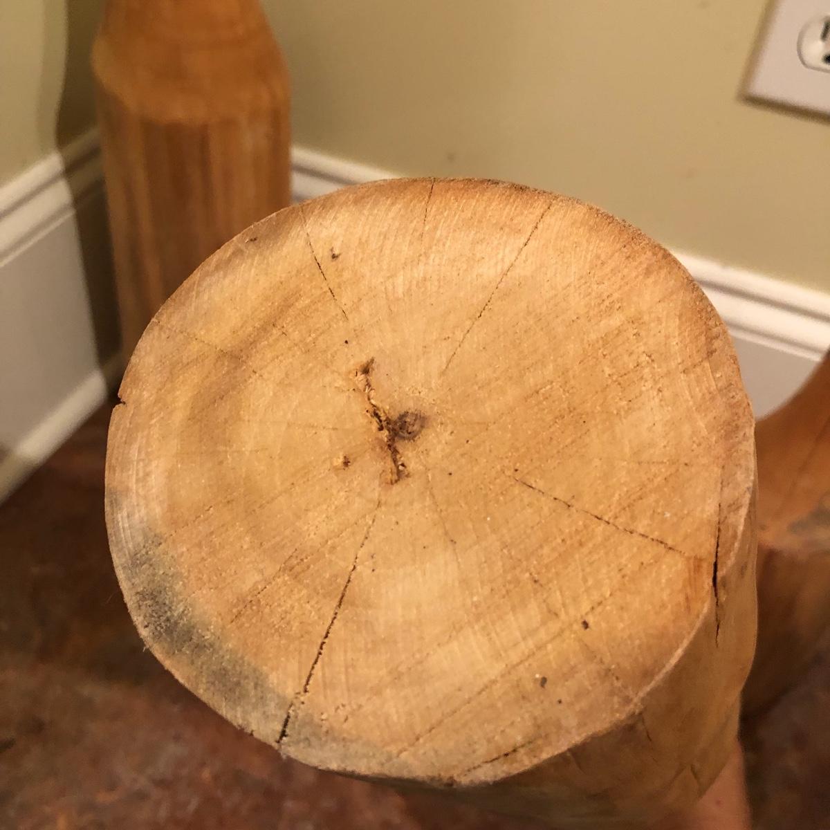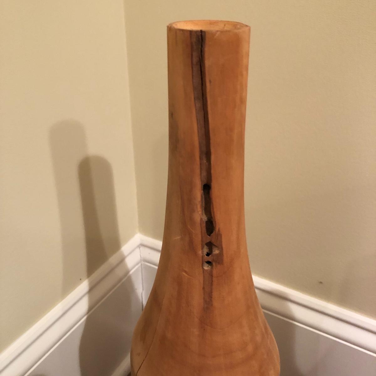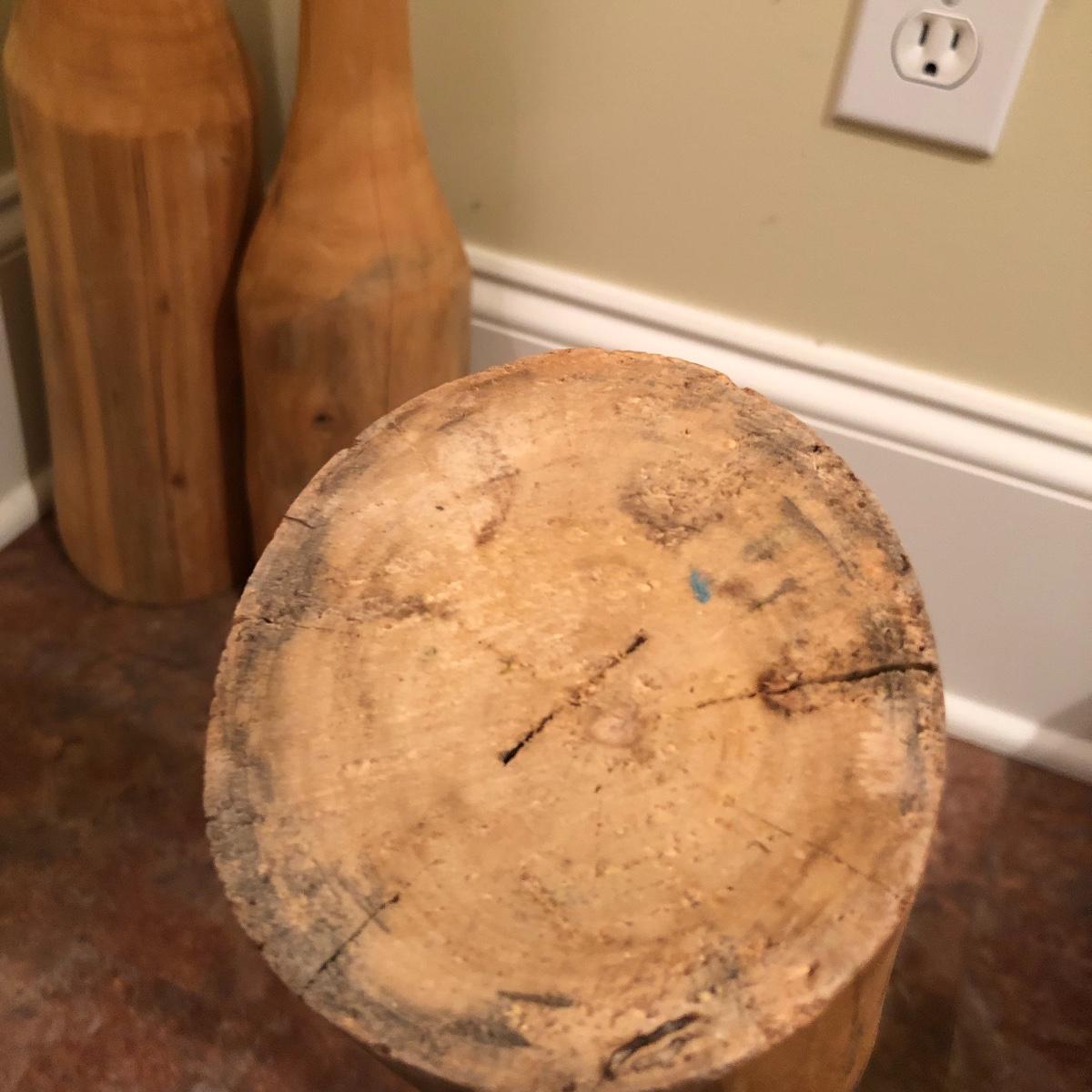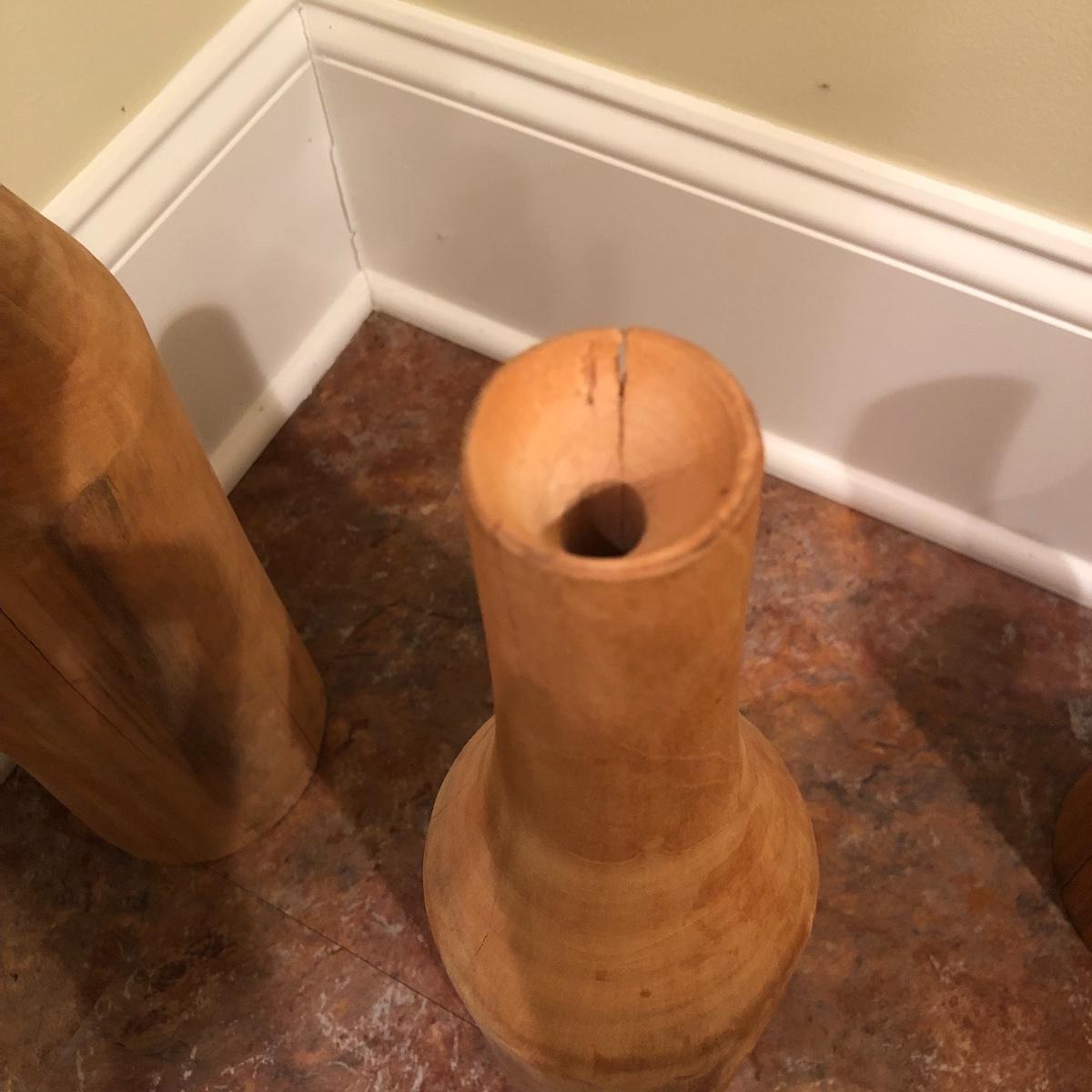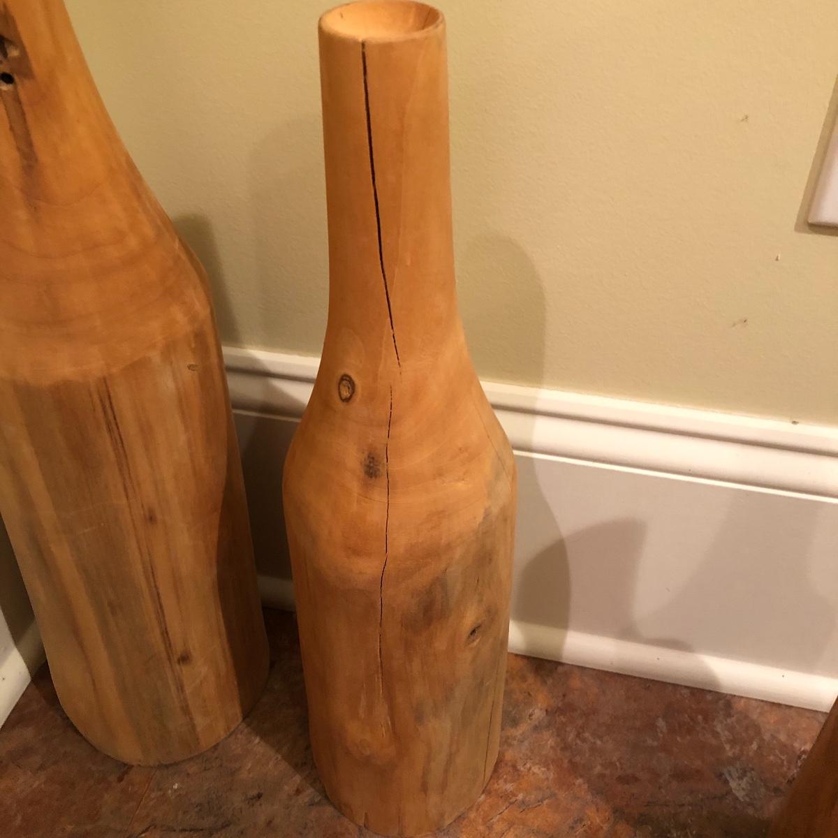 Each vase is made of wood measuring 20” , 16” and 12” tall with approximately a 4” diameter. Shipping Available.