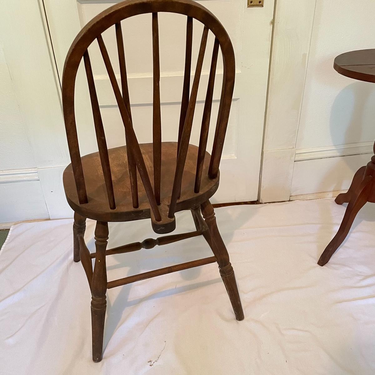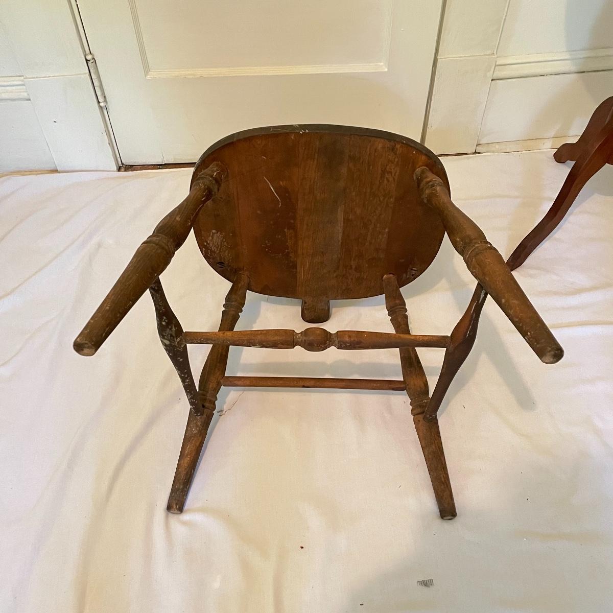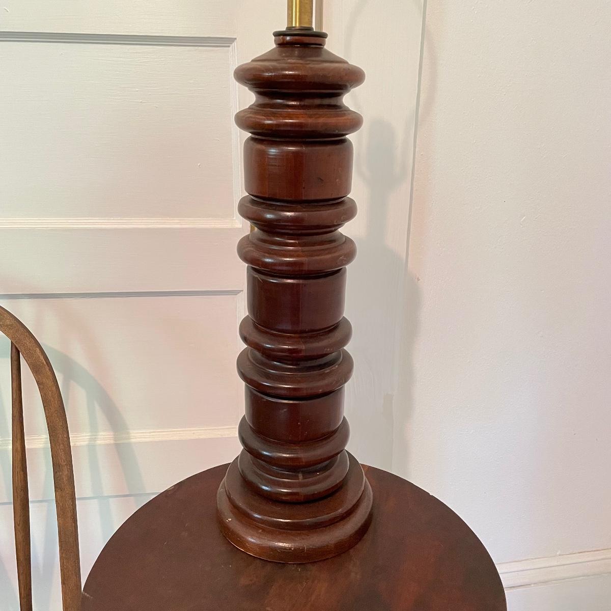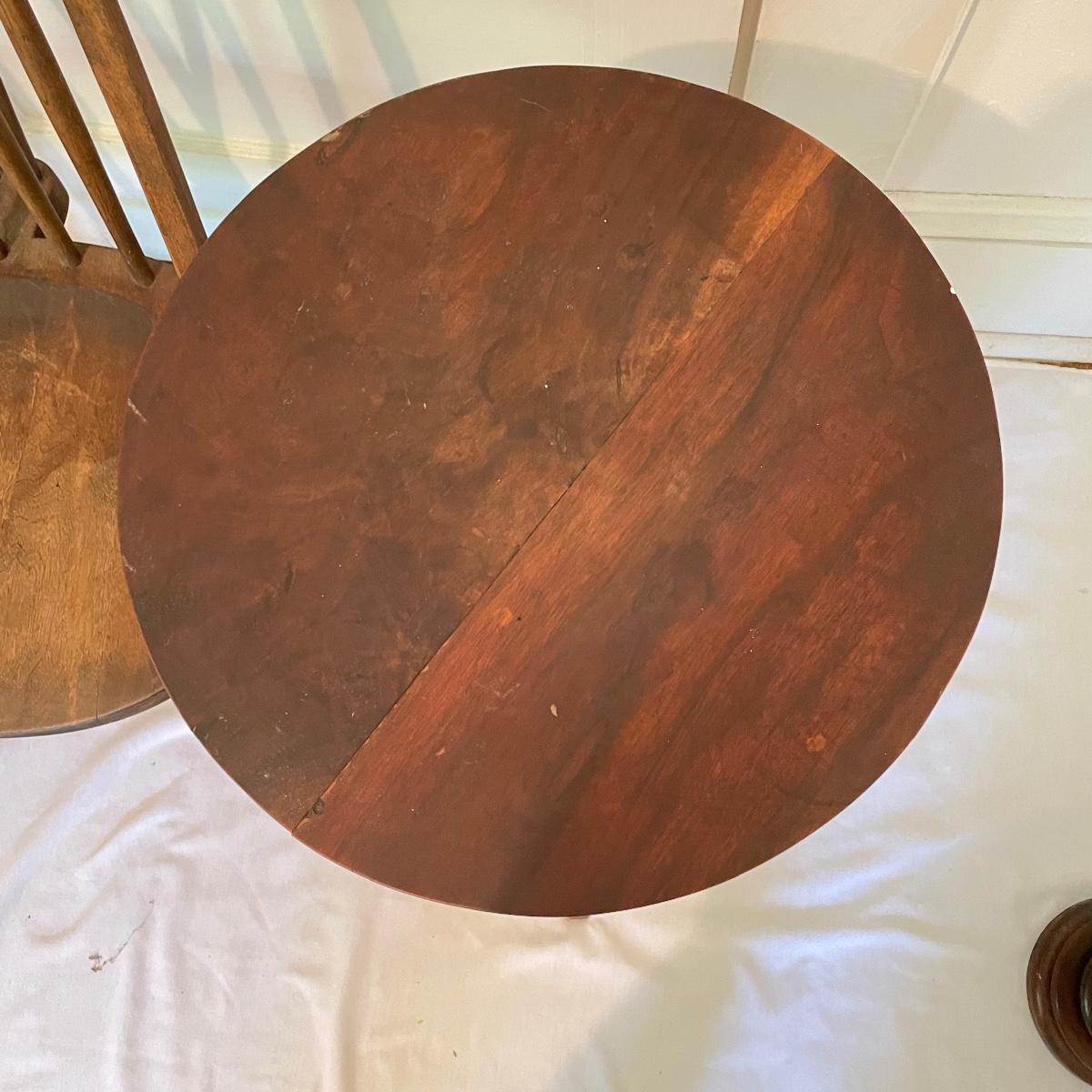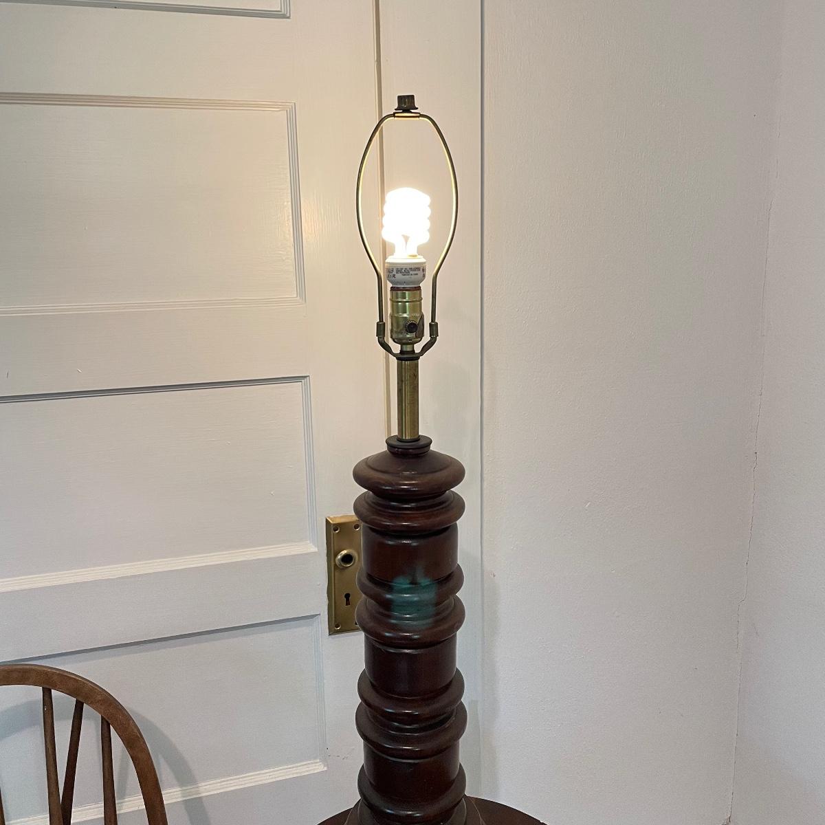 Three dark solid wood vintage finds. Lot includes 33.5” tall lamp, 16”d x 26” pedestal table and the chair measures 17” x 17.5” x 35” with a seat height at 17.5”. Chair needs a bit of cleaning and all three could use a bit of polish. See images. Local pick up only.