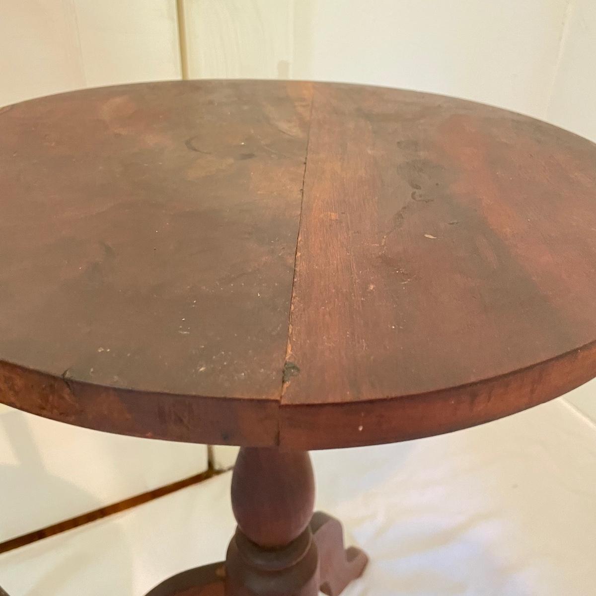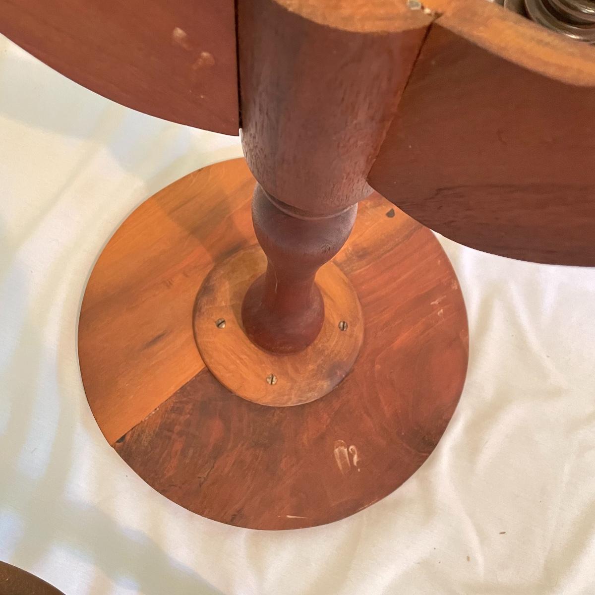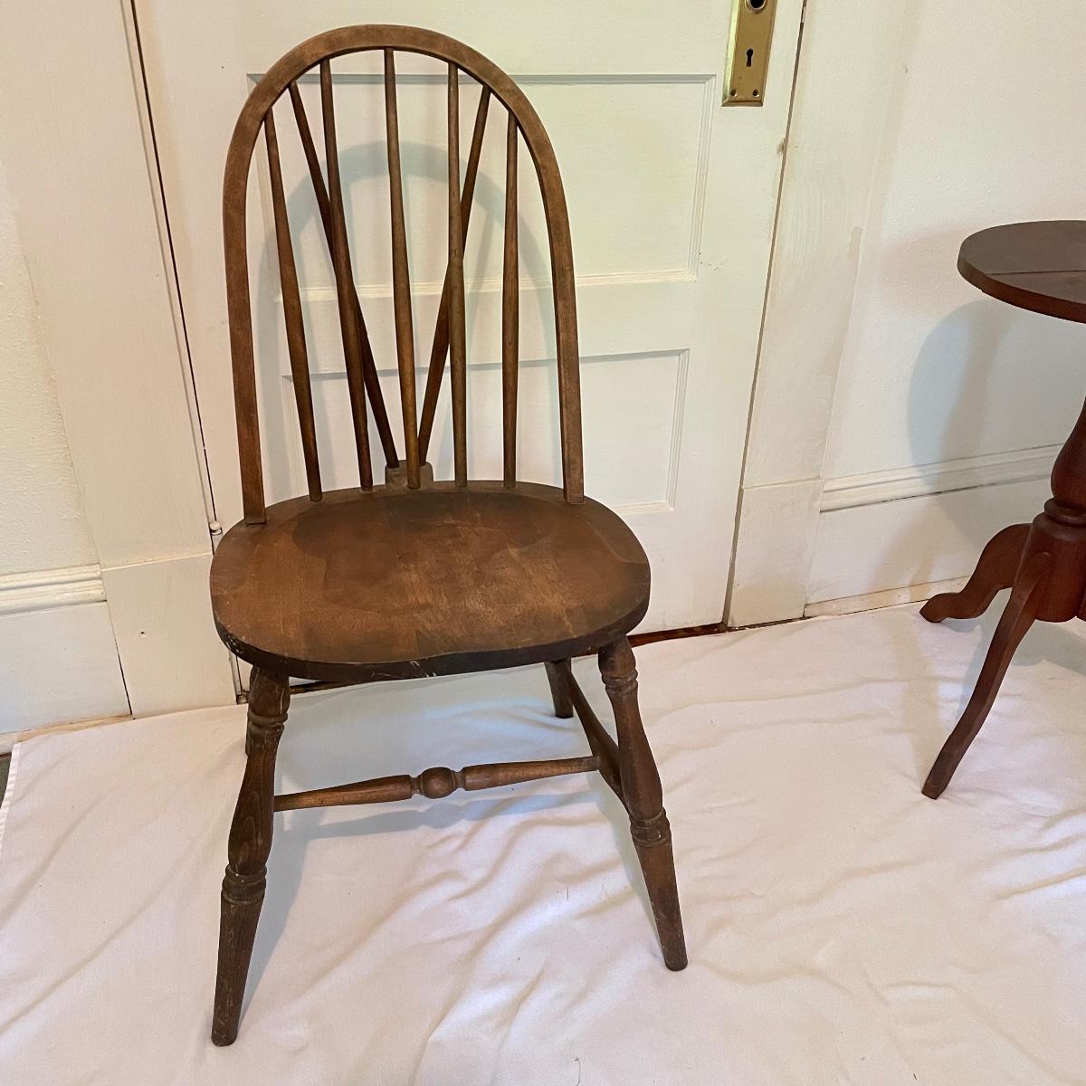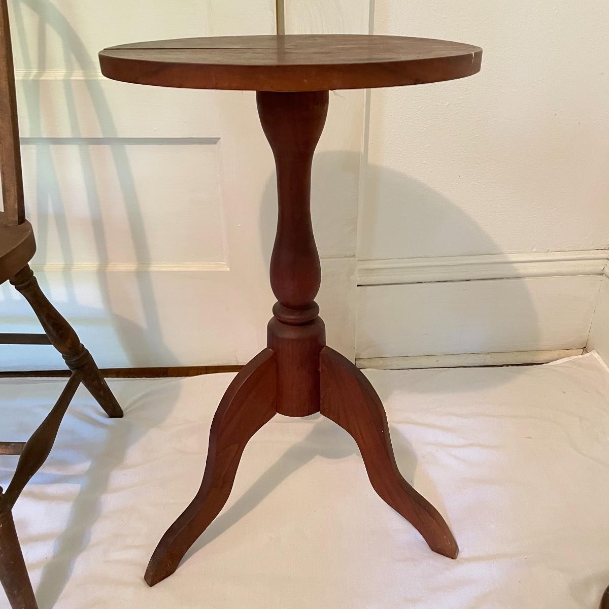 Three dark solid wood vintage finds. Lot includes 33.5” tall lamp, 16”d x 26” pedestal table and the chair measures 17” x 17.5” x 35” with a seat height at 17.5”. Chair needs a bit of cleaning and all three could use a bit of polish. See images. Local pick up only.