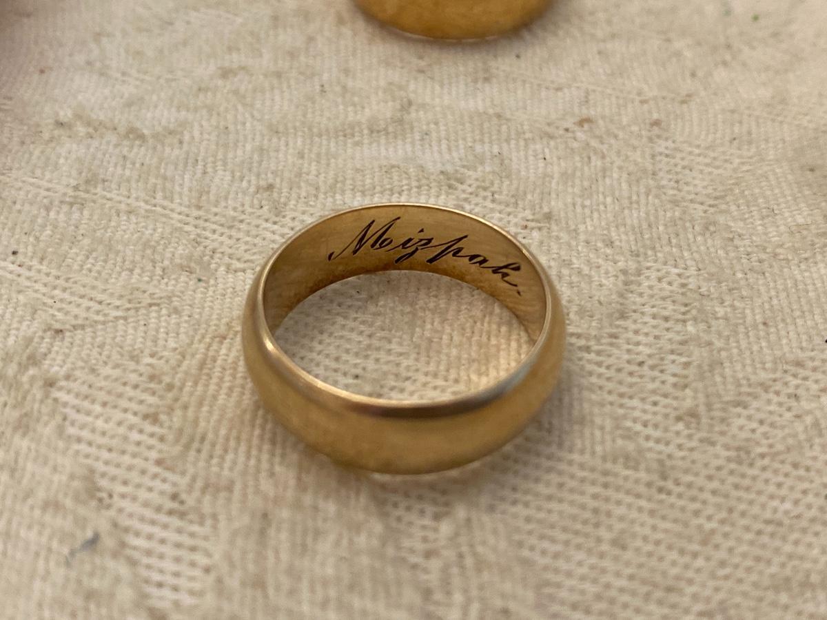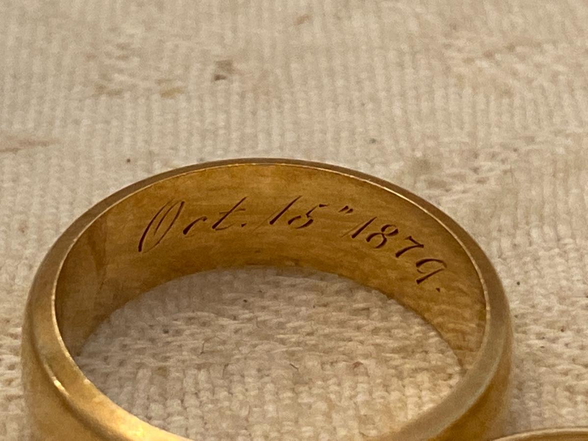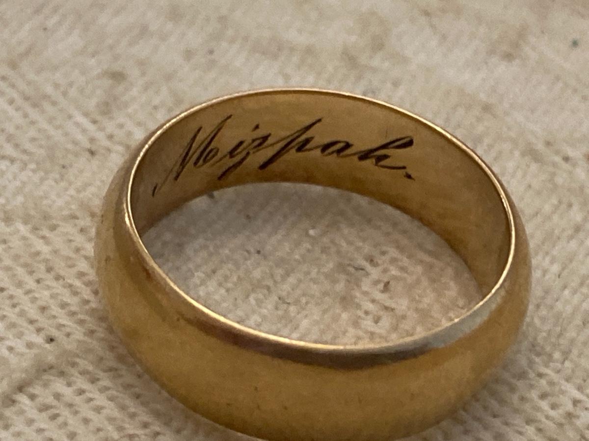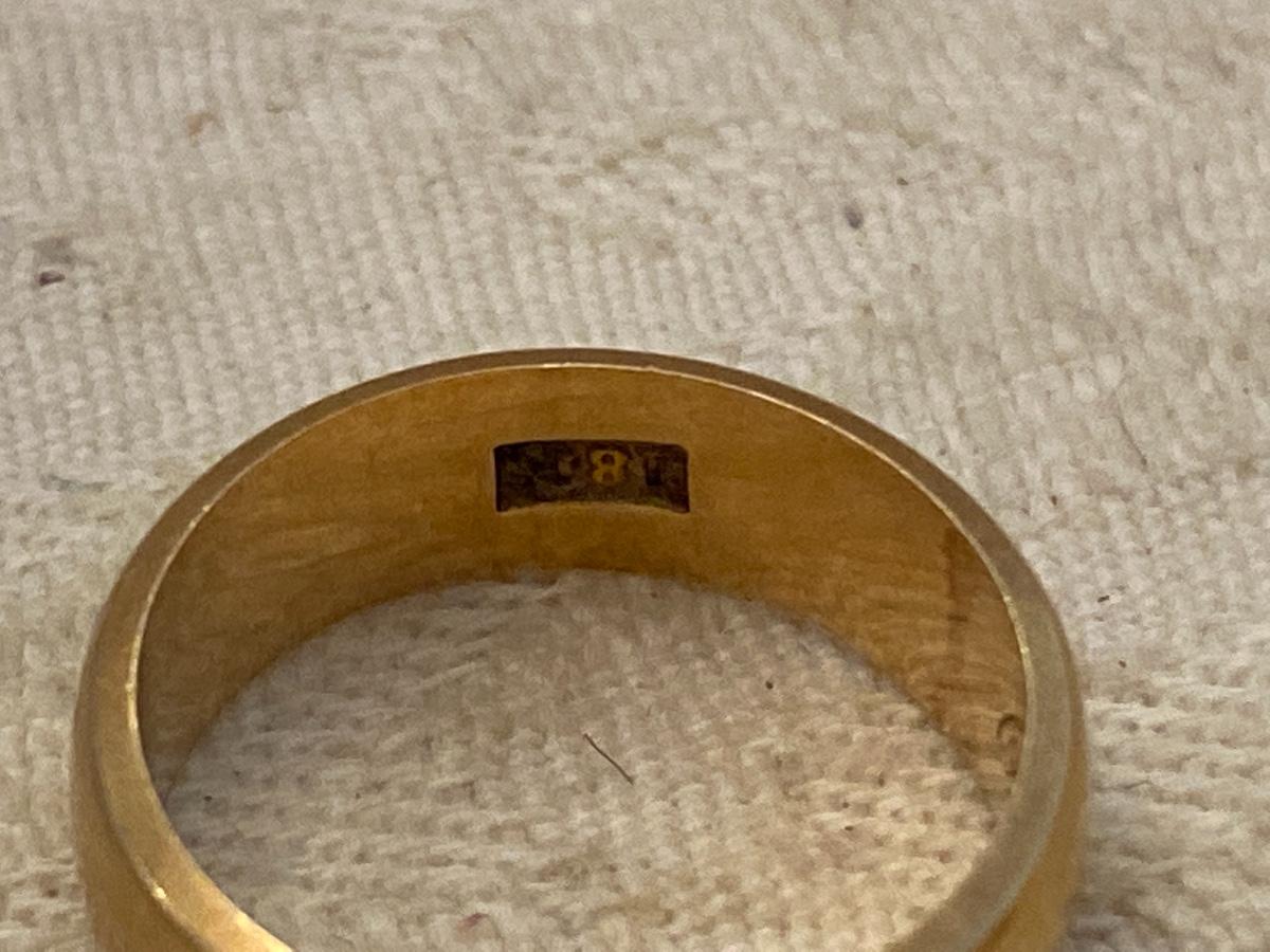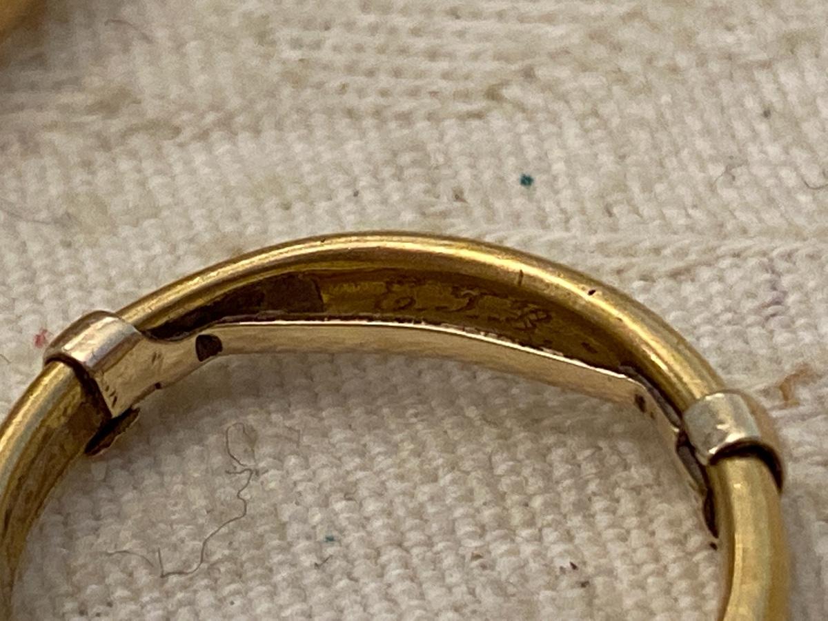 One band is marked 14K. One is marked 18K. One has a difficult to read mark. All are size 5. Total weight of all is 9.6 dwt or 15 grams.