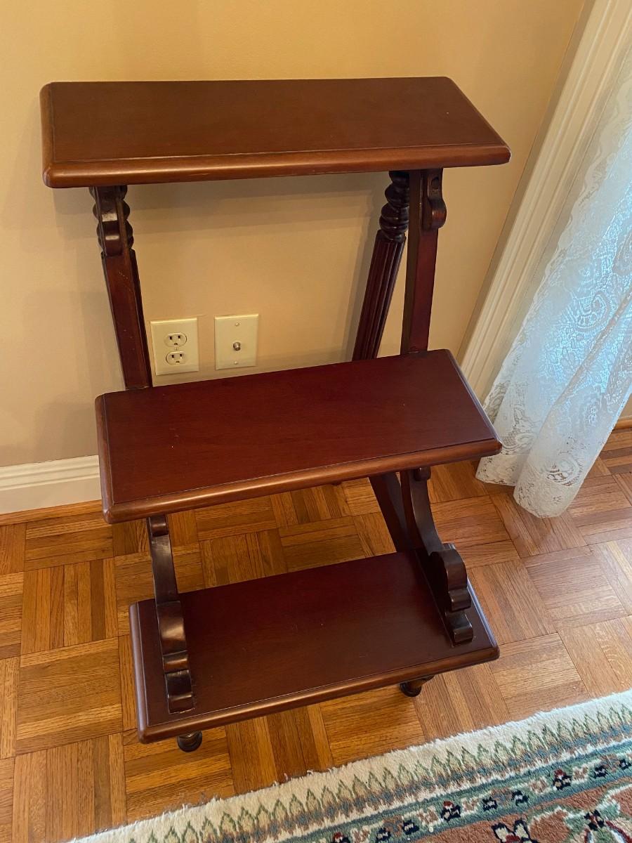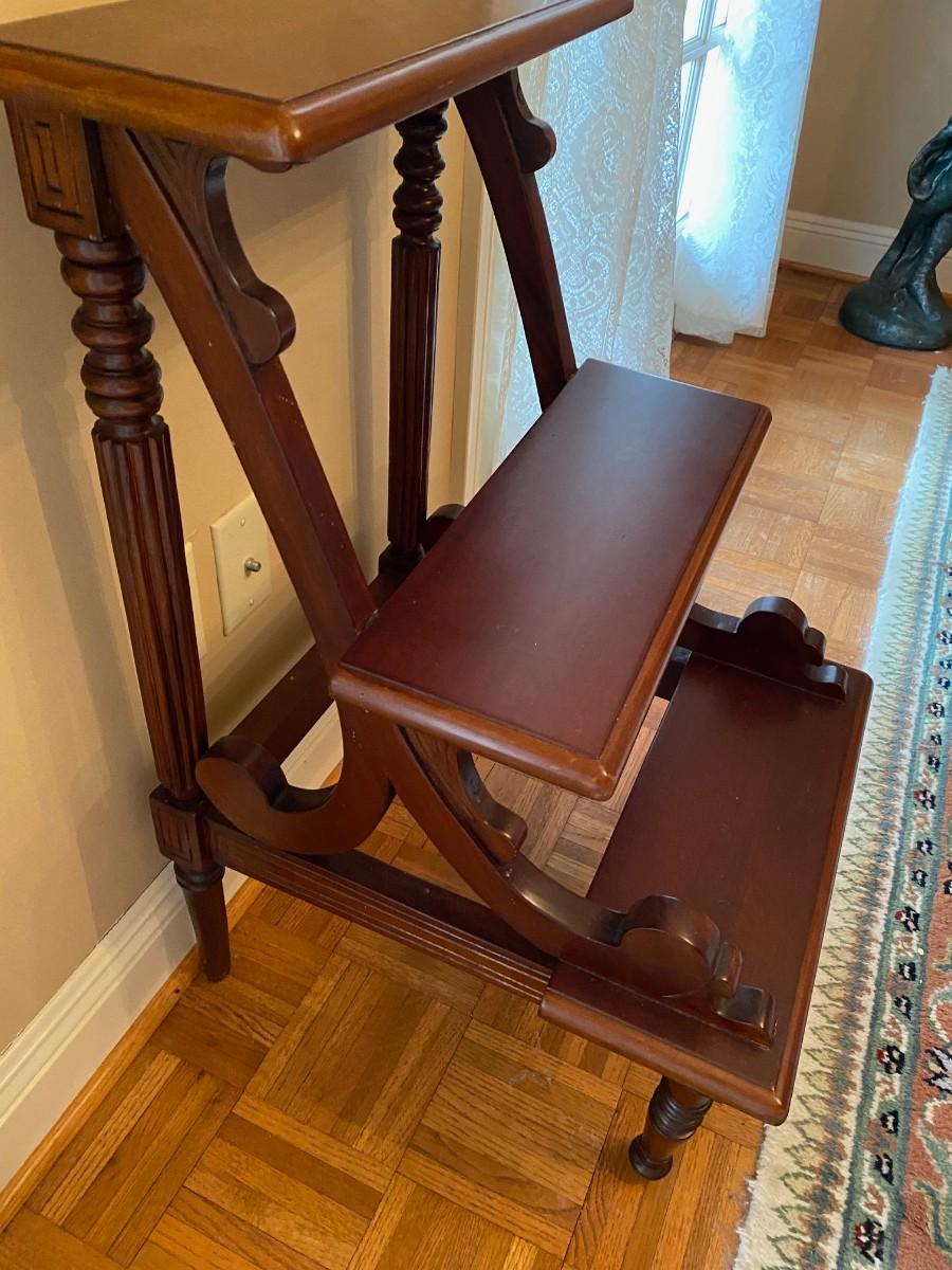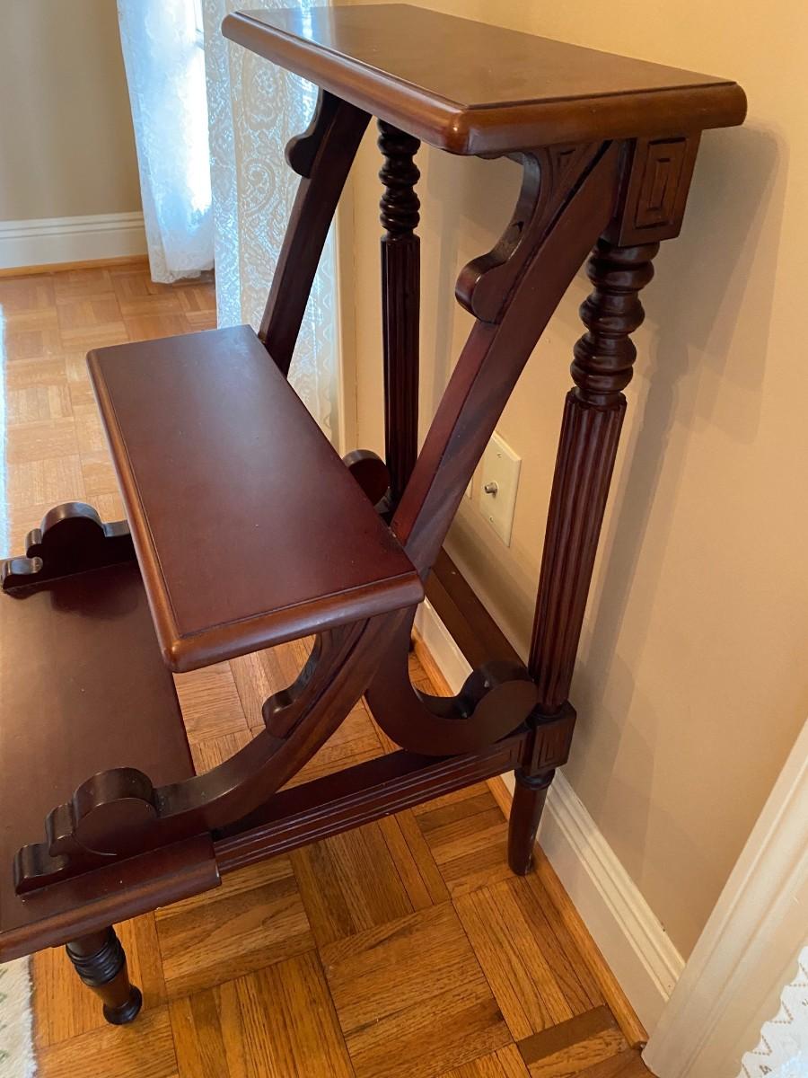 Three-step library ladder, all wood. Approx. 31-1/2" H x 20" D x 18-1/2" W