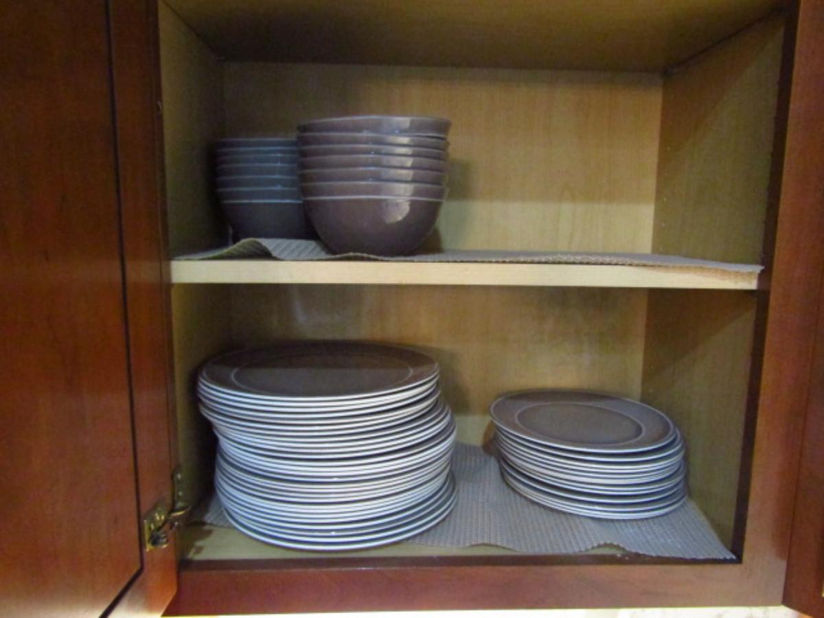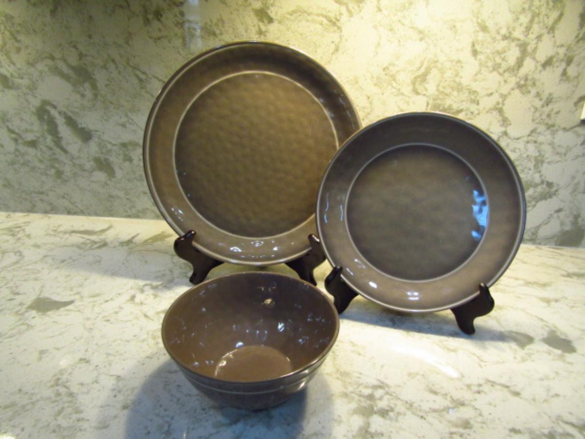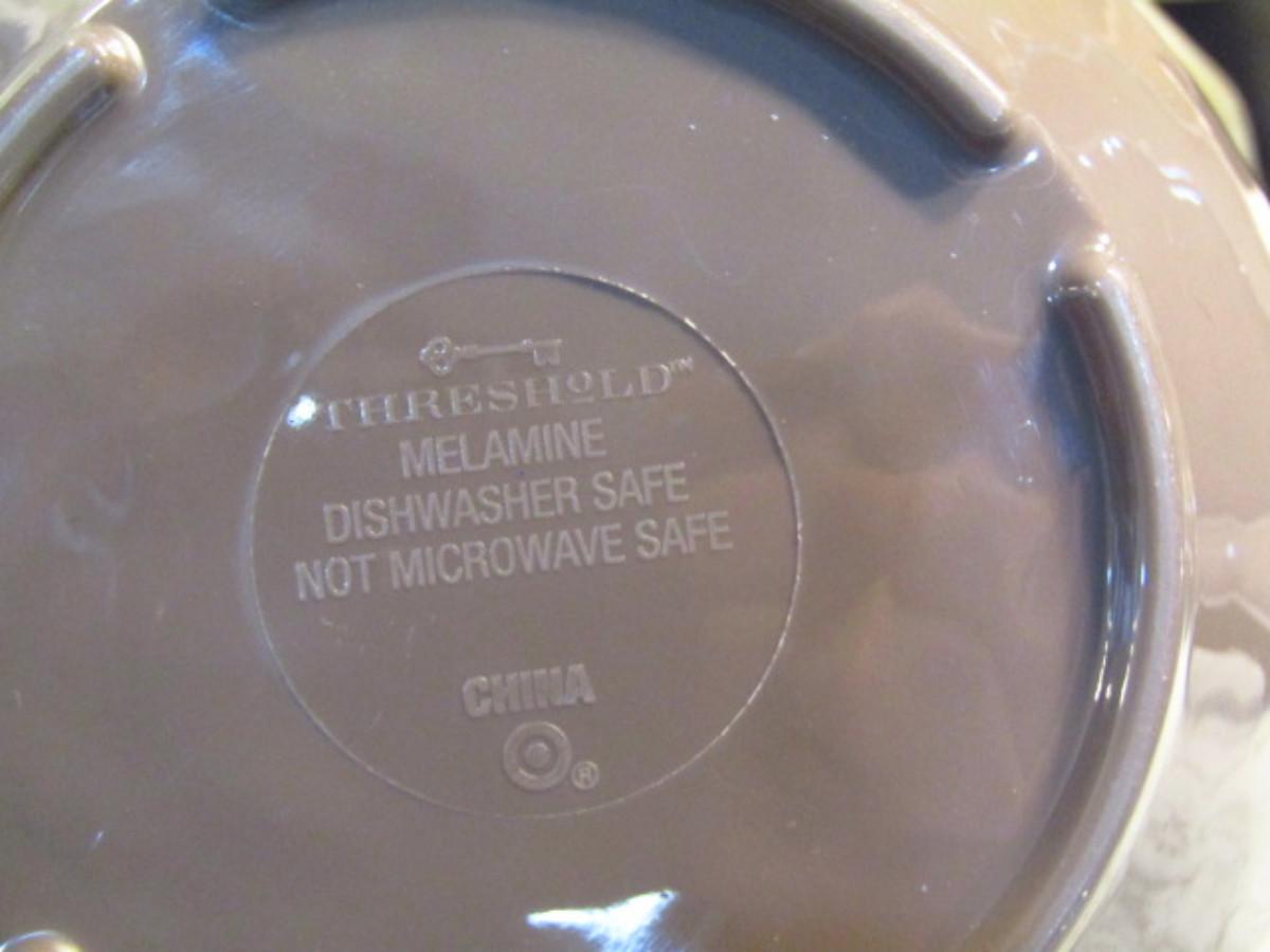 Threshold Melamine Dinnerware (Kitchen). Large plates (10 3/8")- 27 pcs. Small plates (8 1/2")-14 pcs. Soup/cereal bowls- 14 pcs. Plate holders not included.