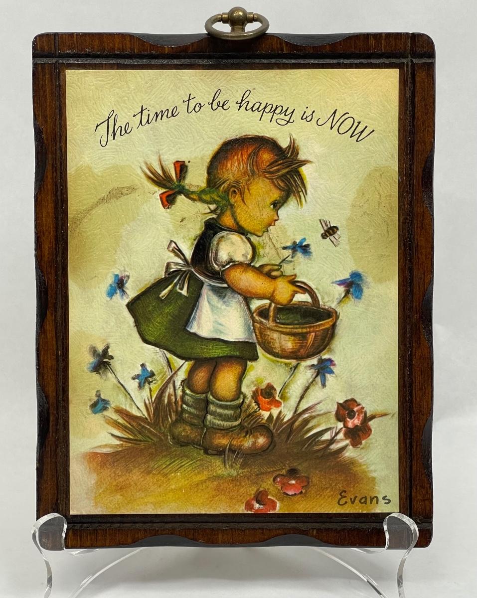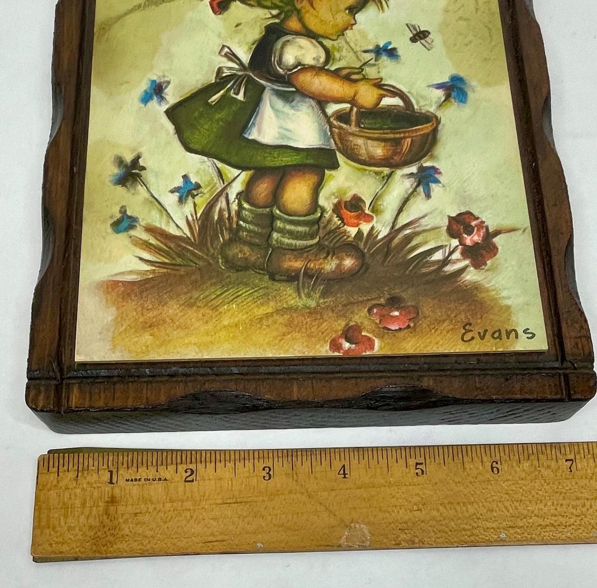 Vintage 1950's Hummel Wooden Wall Plaque Girl Watering Flowers