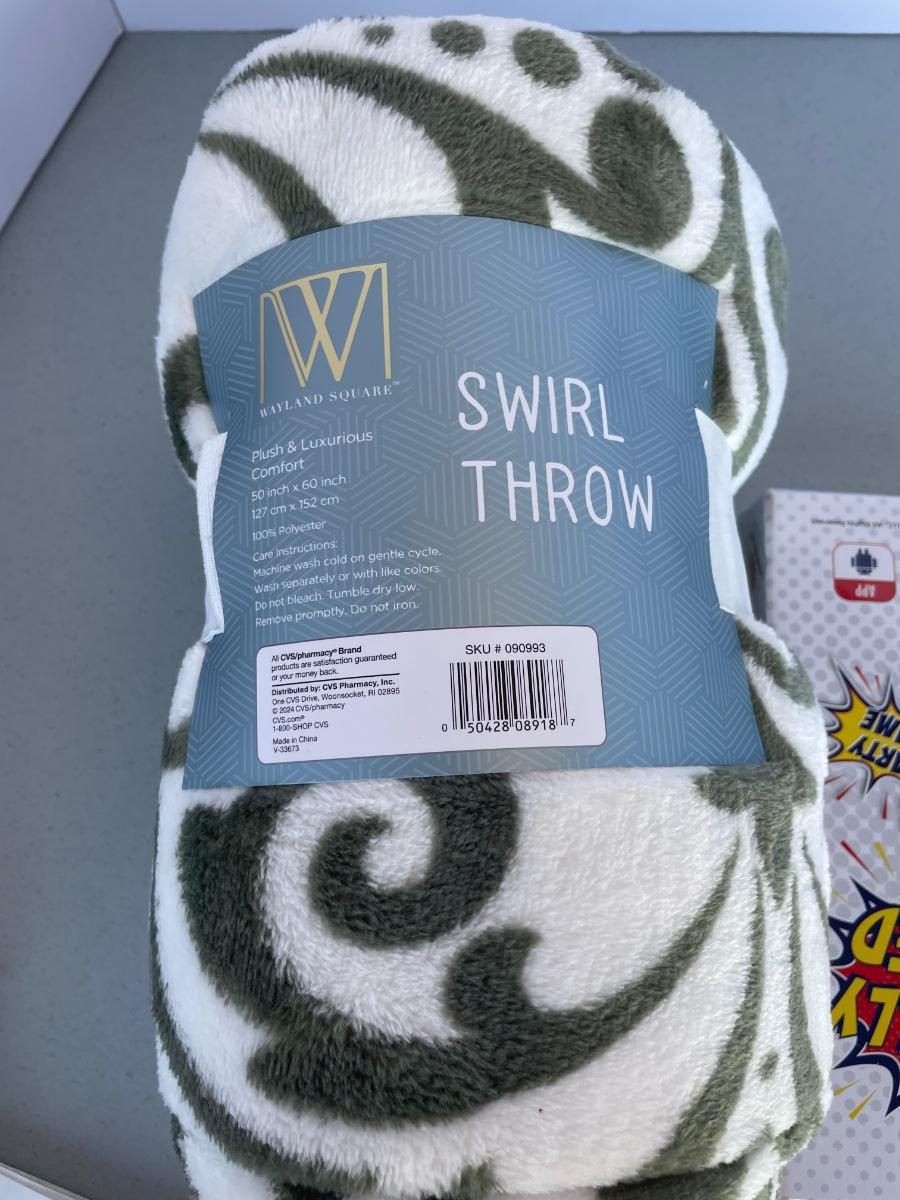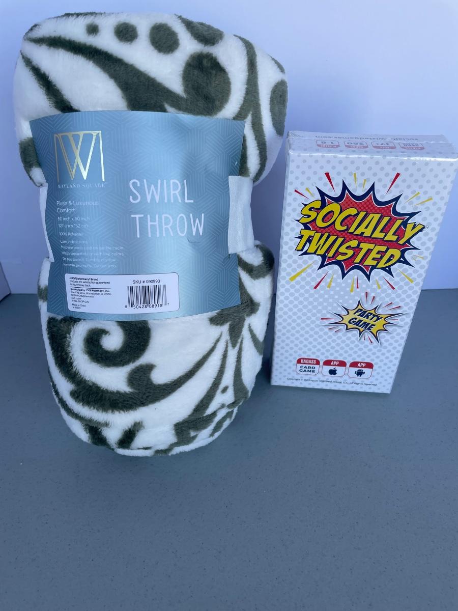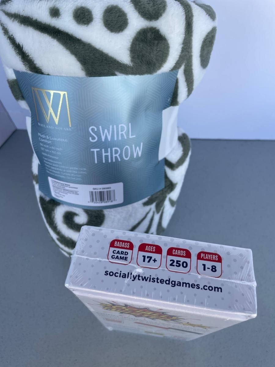 All new! Green and cream blanket, adult party card game.