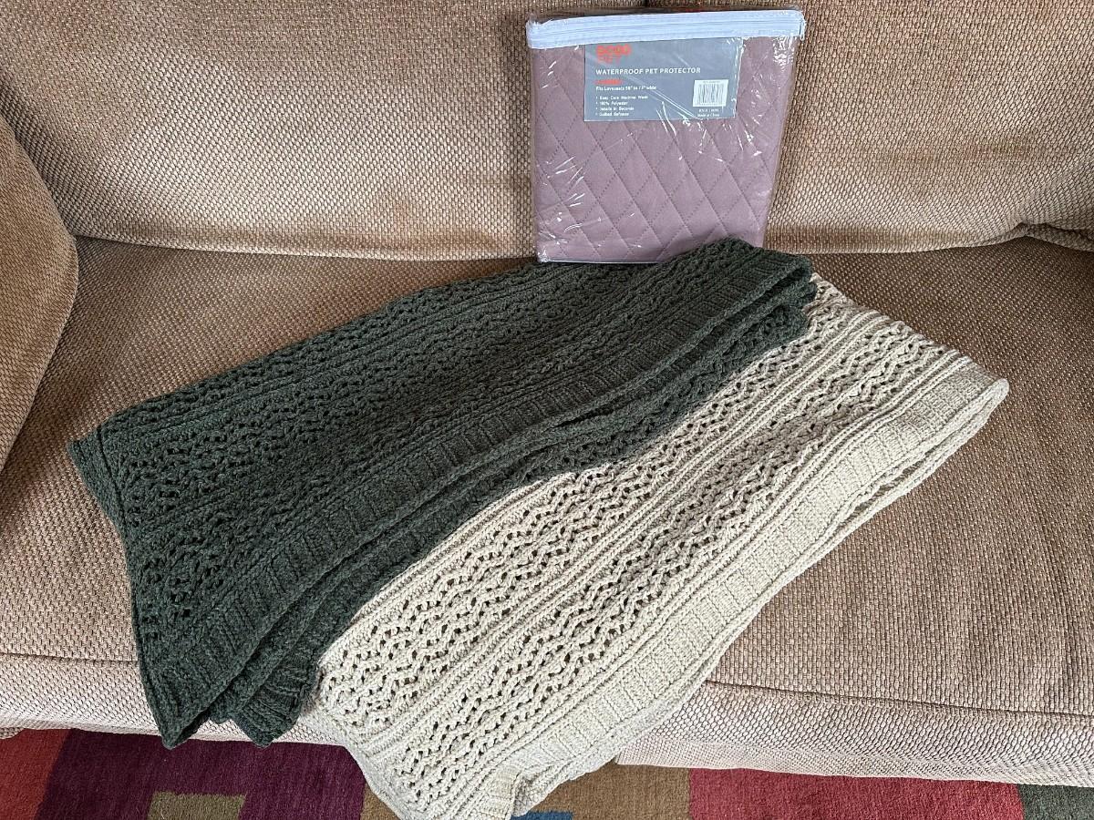 1 Green Throw 52" x 60". 1 Beige Throw 52" x 60". Waterproof Pet Protector for Loveseat 58" x 73"