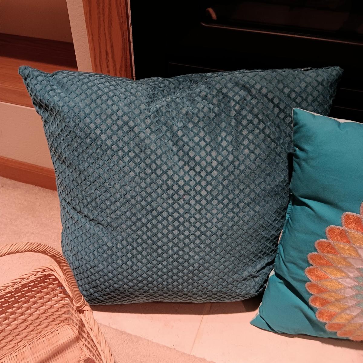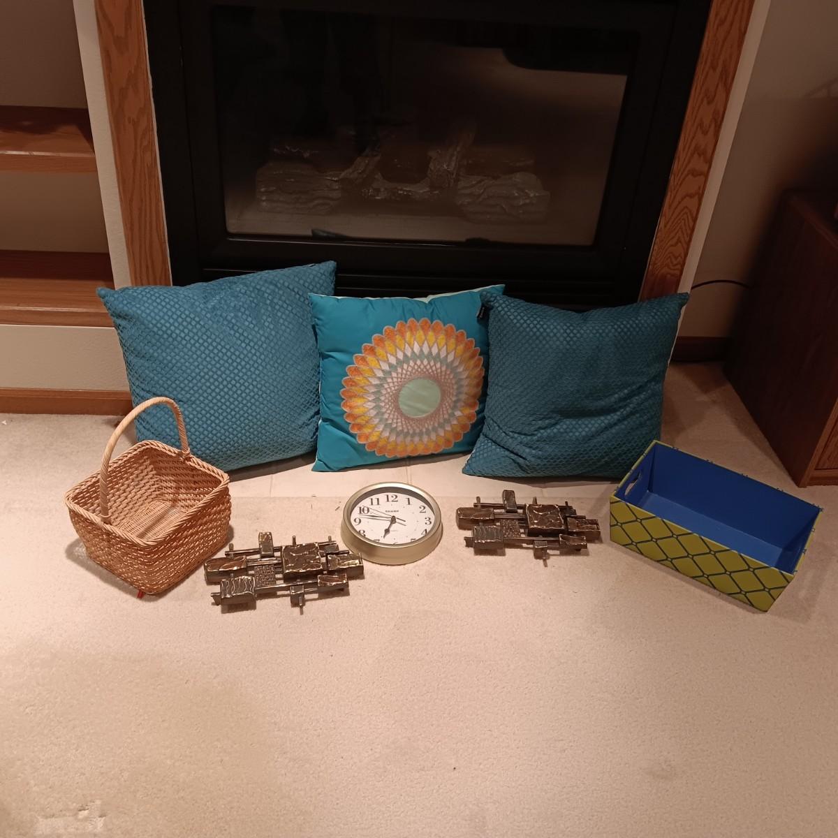 THROW PILLOWS, PAIR OF SYROCO ABSTRACT WALL HANGINGS AND MORE