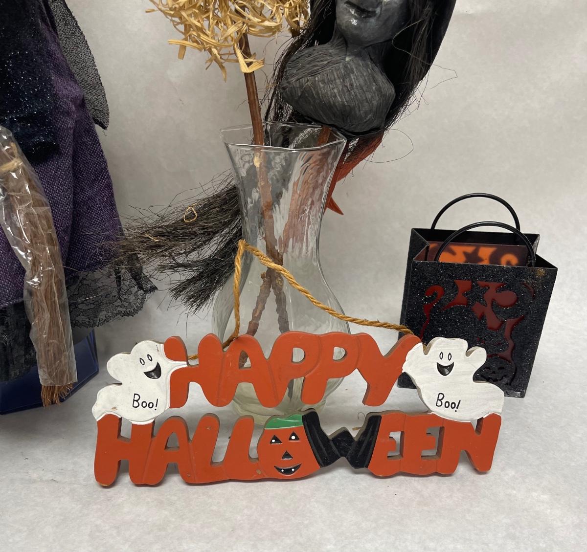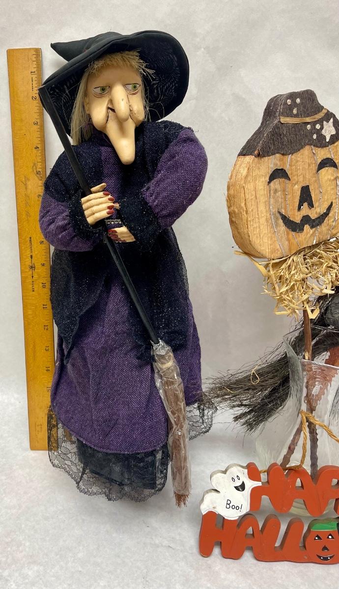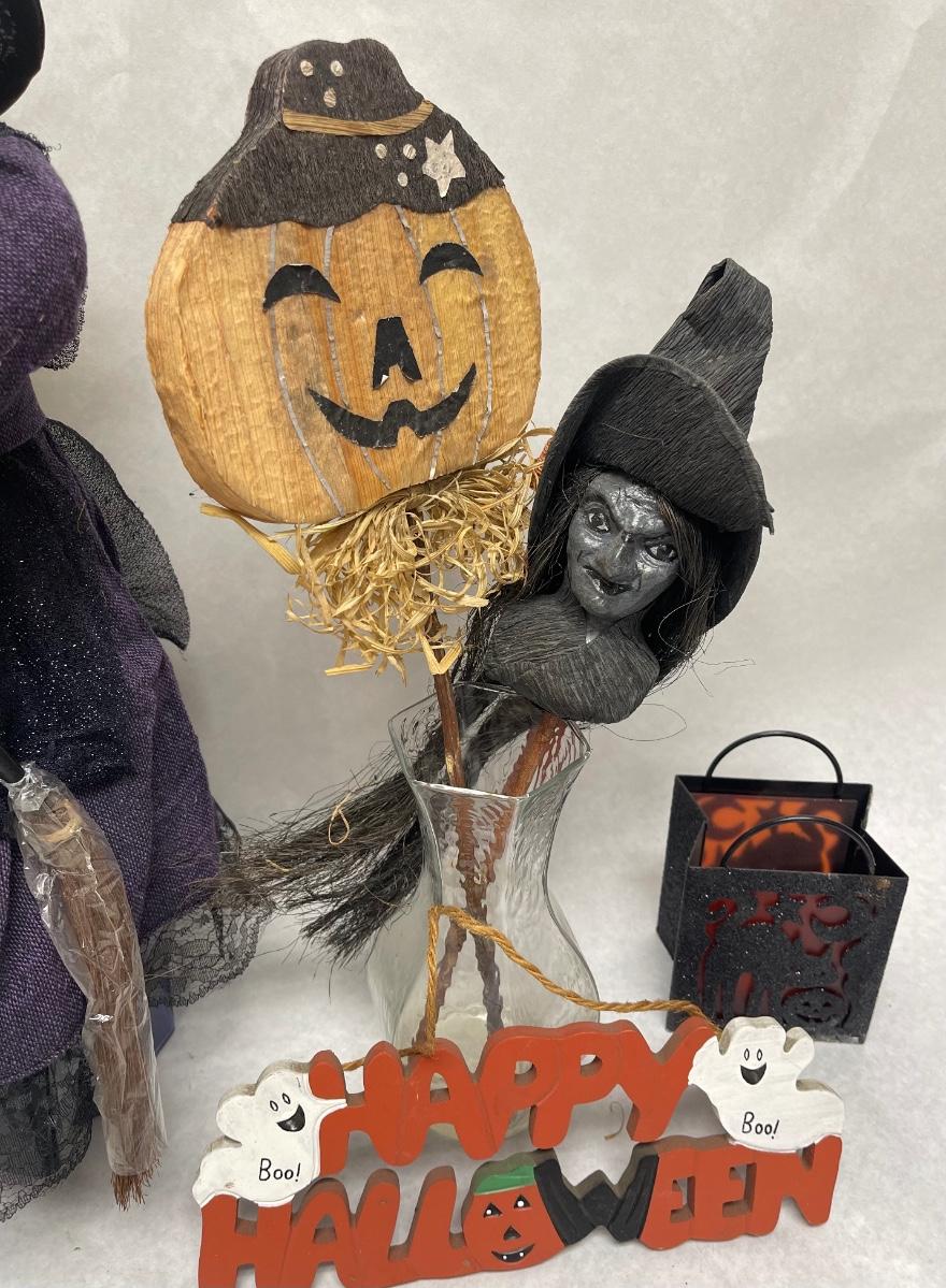 Halloween Lot - Witch, Sign, Candle Holder, Yard Stick Decor in glass vase
