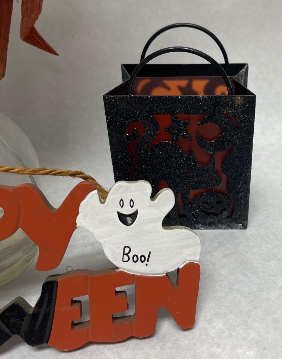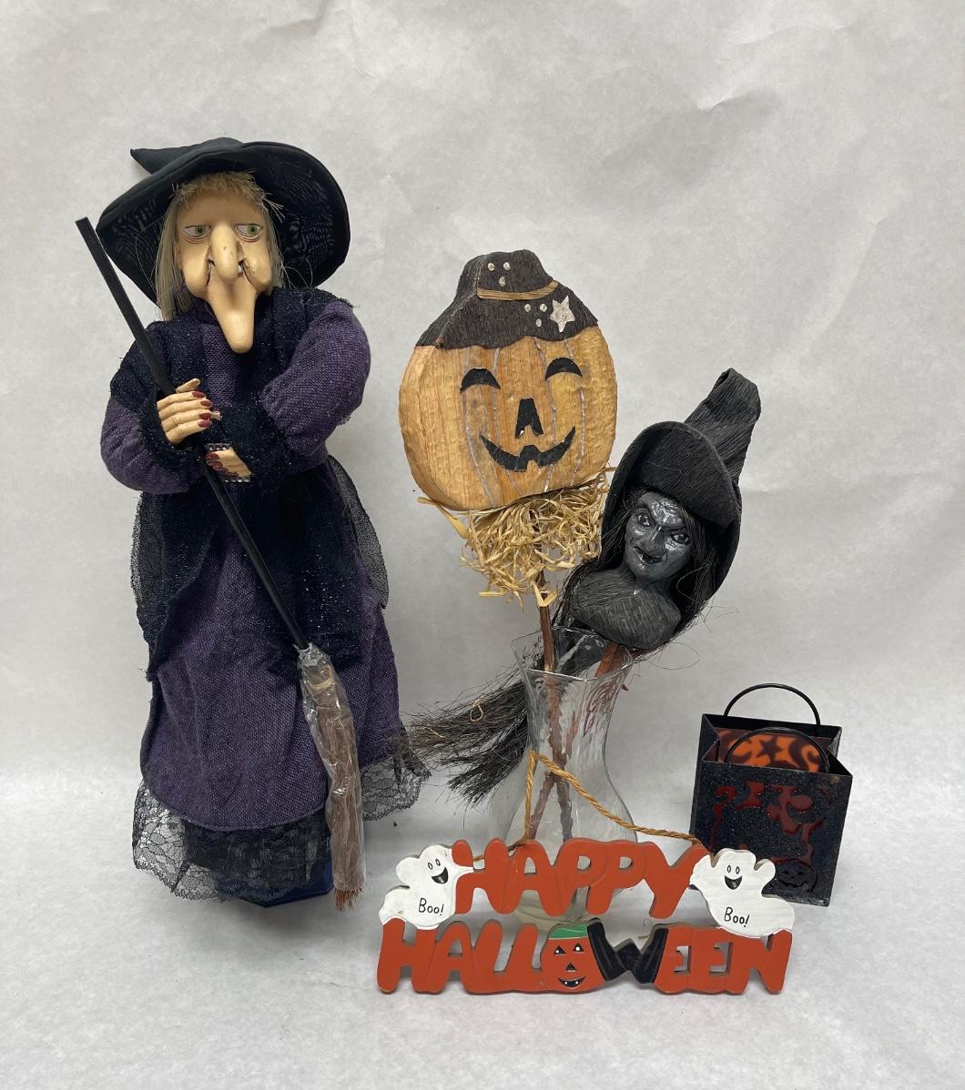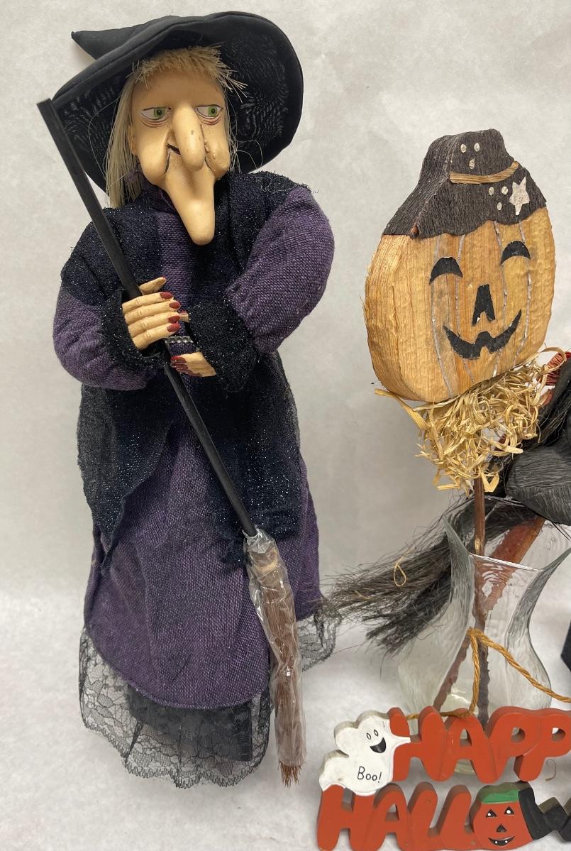 Halloween Lot - Witch, Sign, Candle Holder, Yard Stick Decor in glass vase