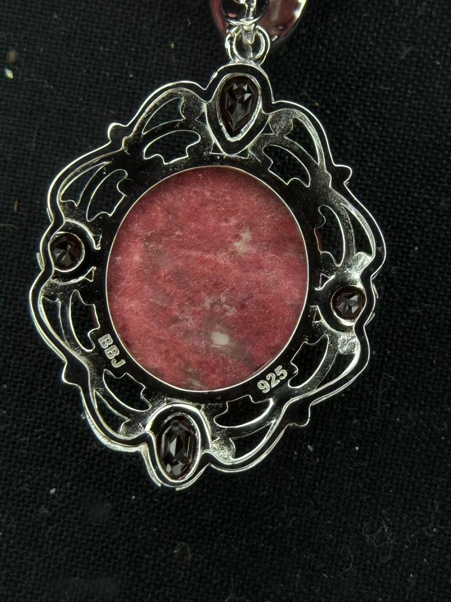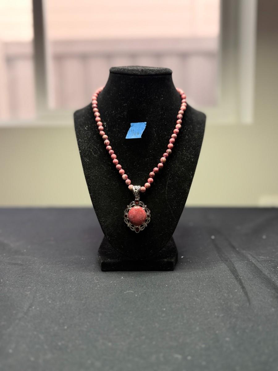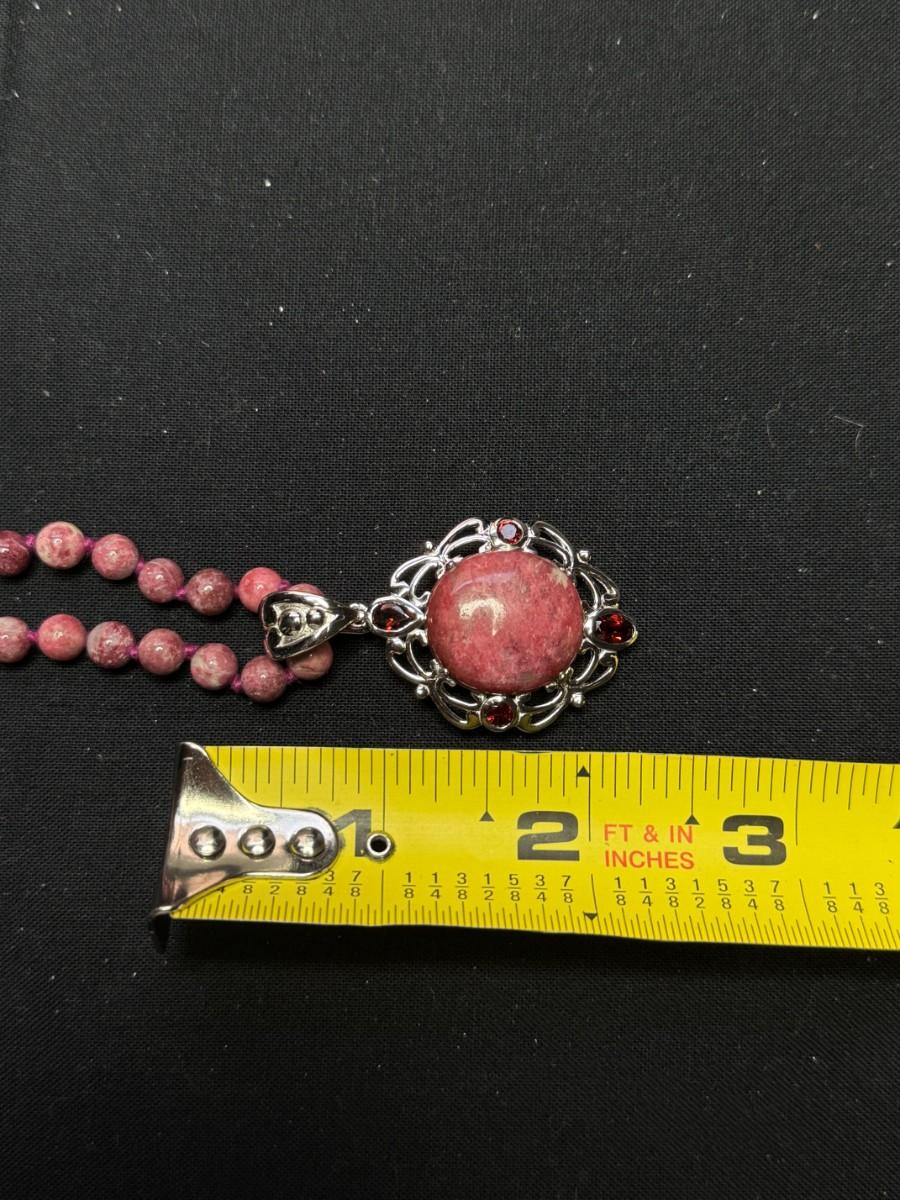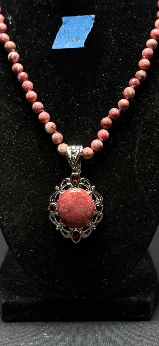 Thulite Bead Necklace & Oval Thulite w/ Chain Phodium over sterling Silver