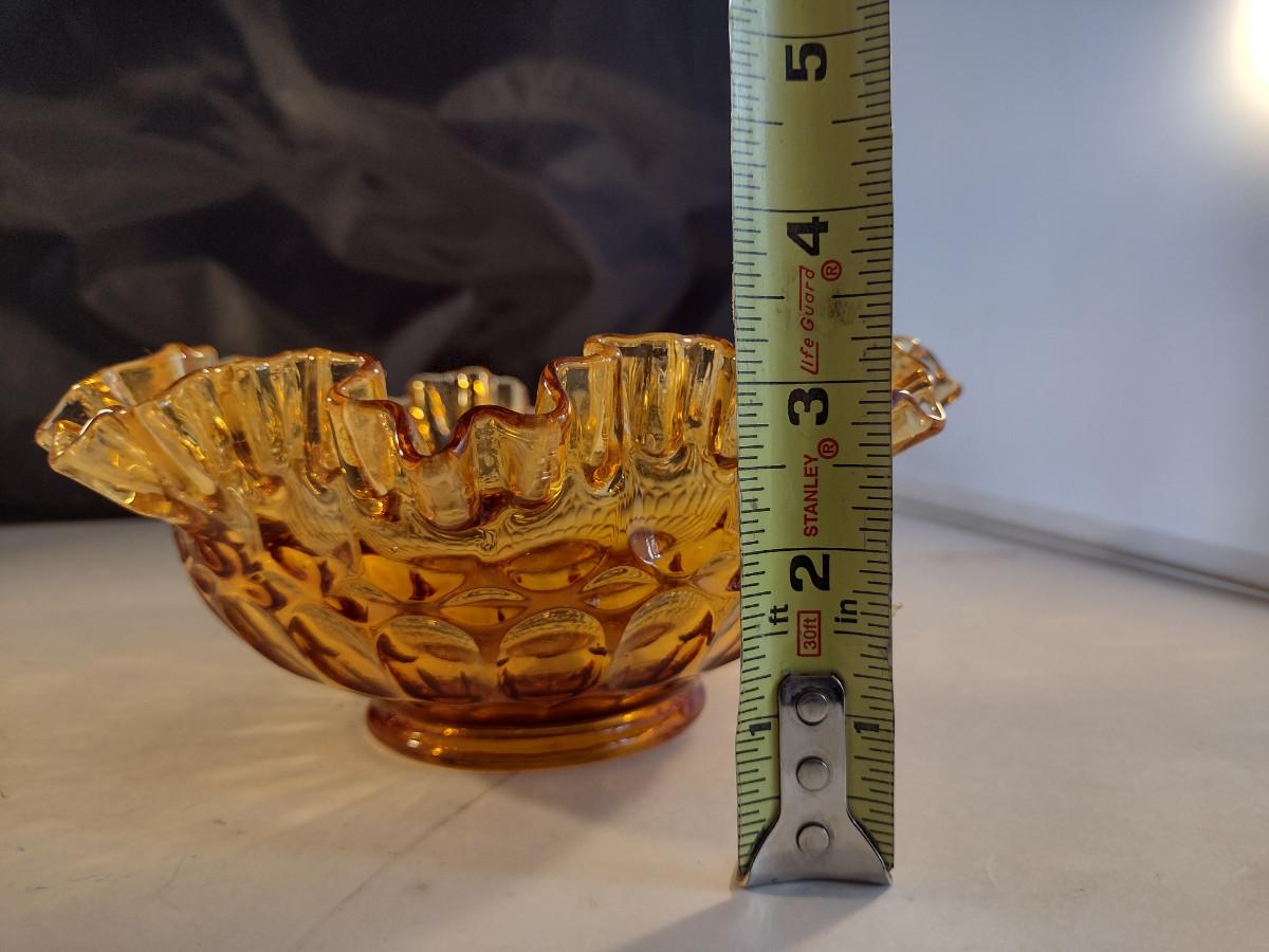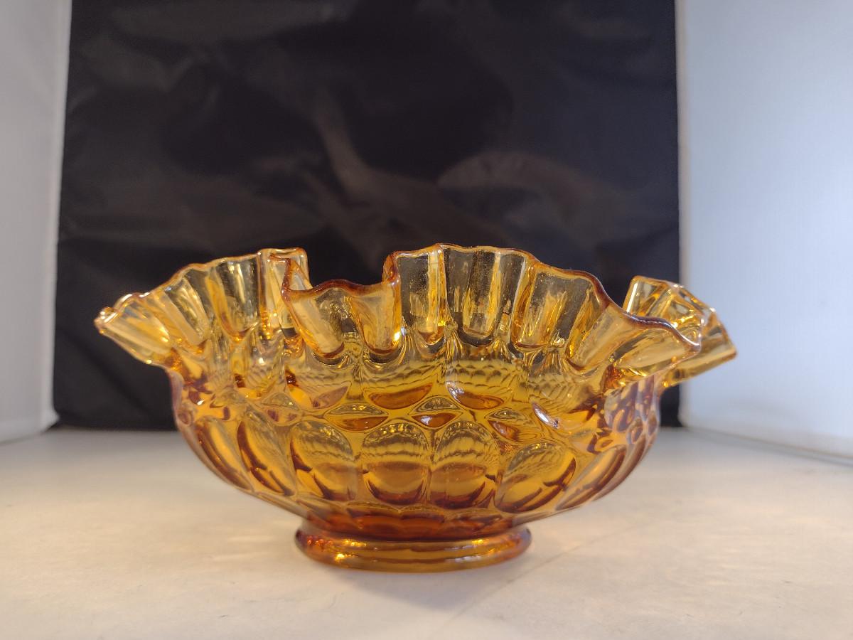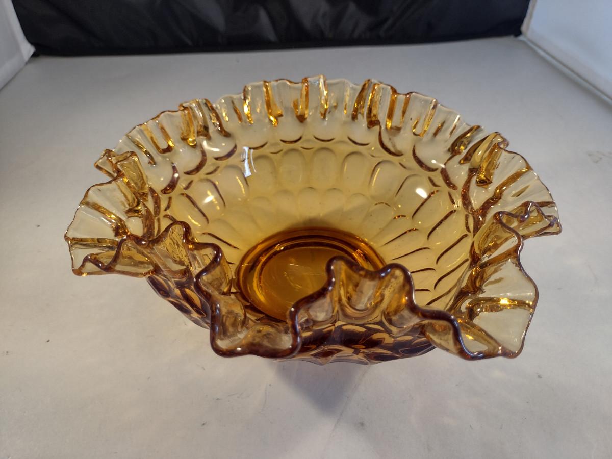 Thumbprint Ruffled Art Amber Glass Bowl- Possibly Fenton- Approx 7 3/4" in Diameter