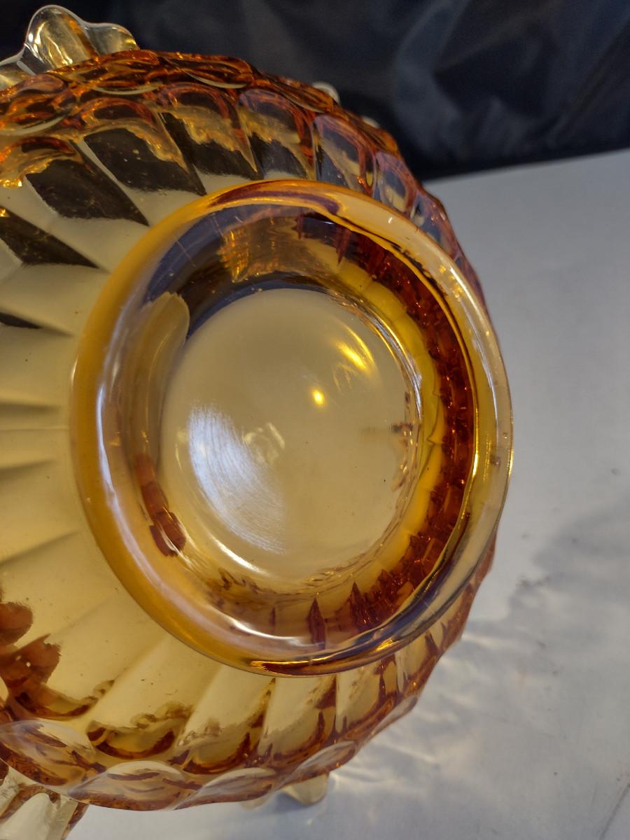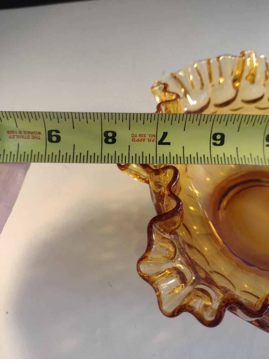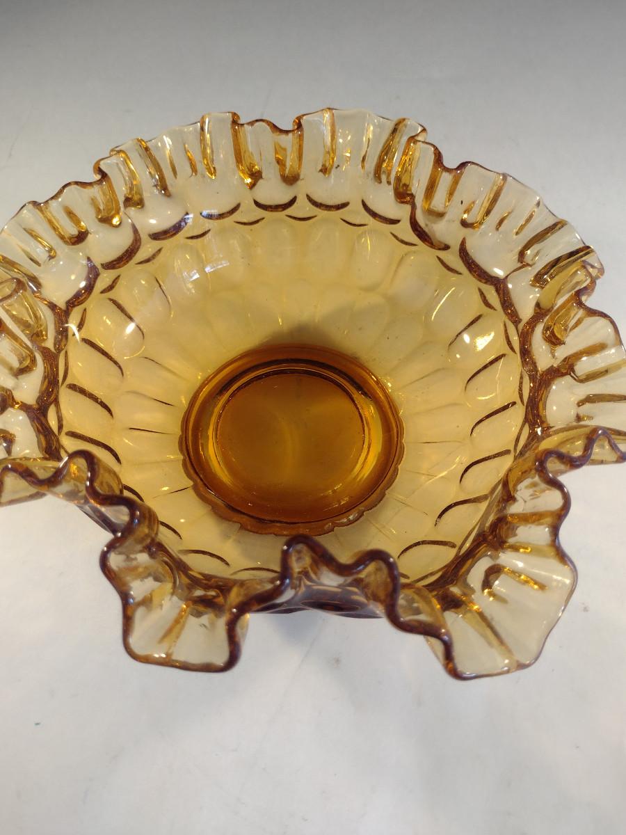 Thumbprint Ruffled Art Amber Glass Bowl- Possibly Fenton- Approx 7 3/4" in Diameter