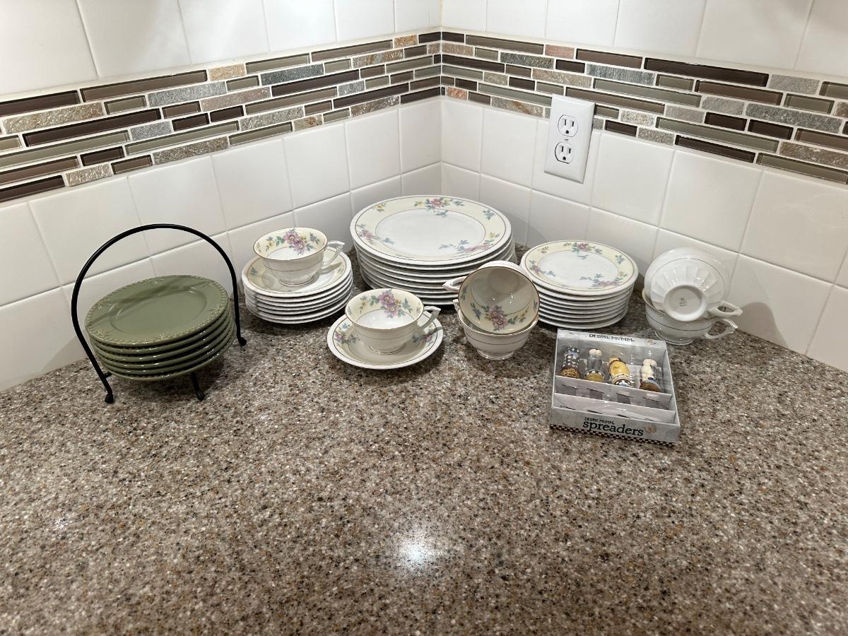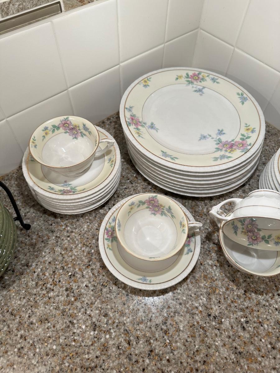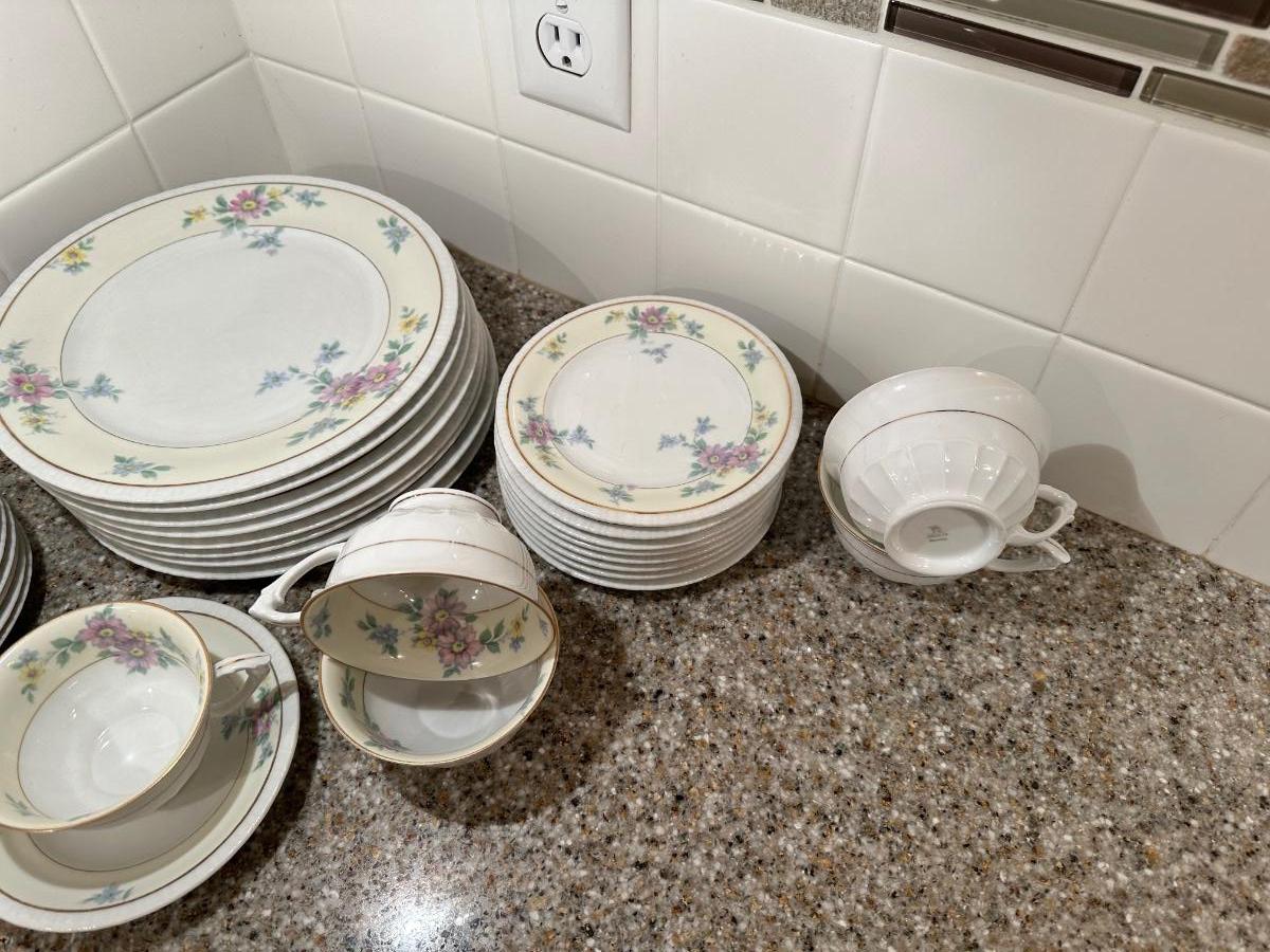 8 DINNER PLATES, 8 SAUCERS, 6 TEACUPS, 8 BREAD PLATES