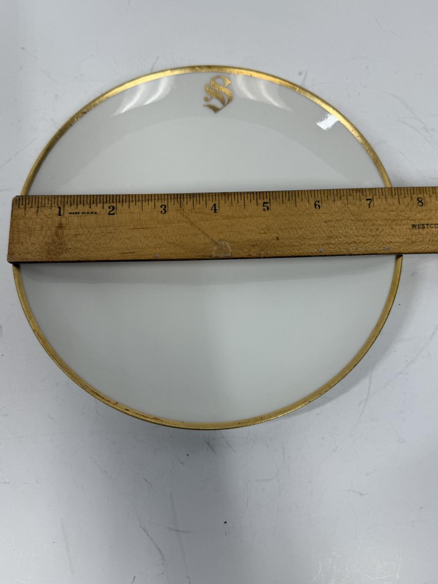 8" Haviland China plate with S golden monogram white with gold Made in France