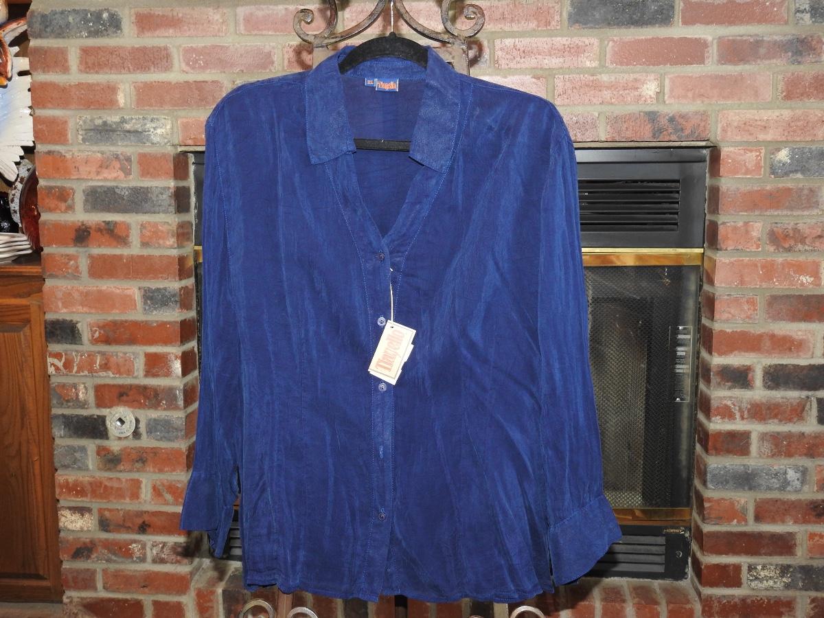 Beautiful royal blue, long sleeve button up blouse. Size XL. New.
