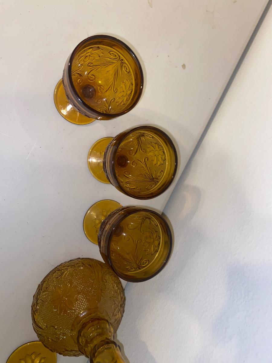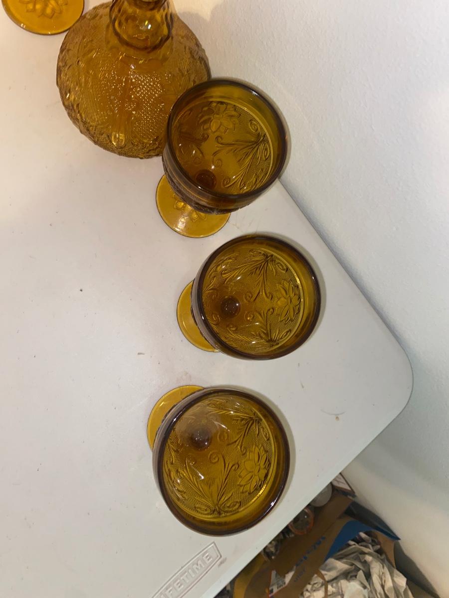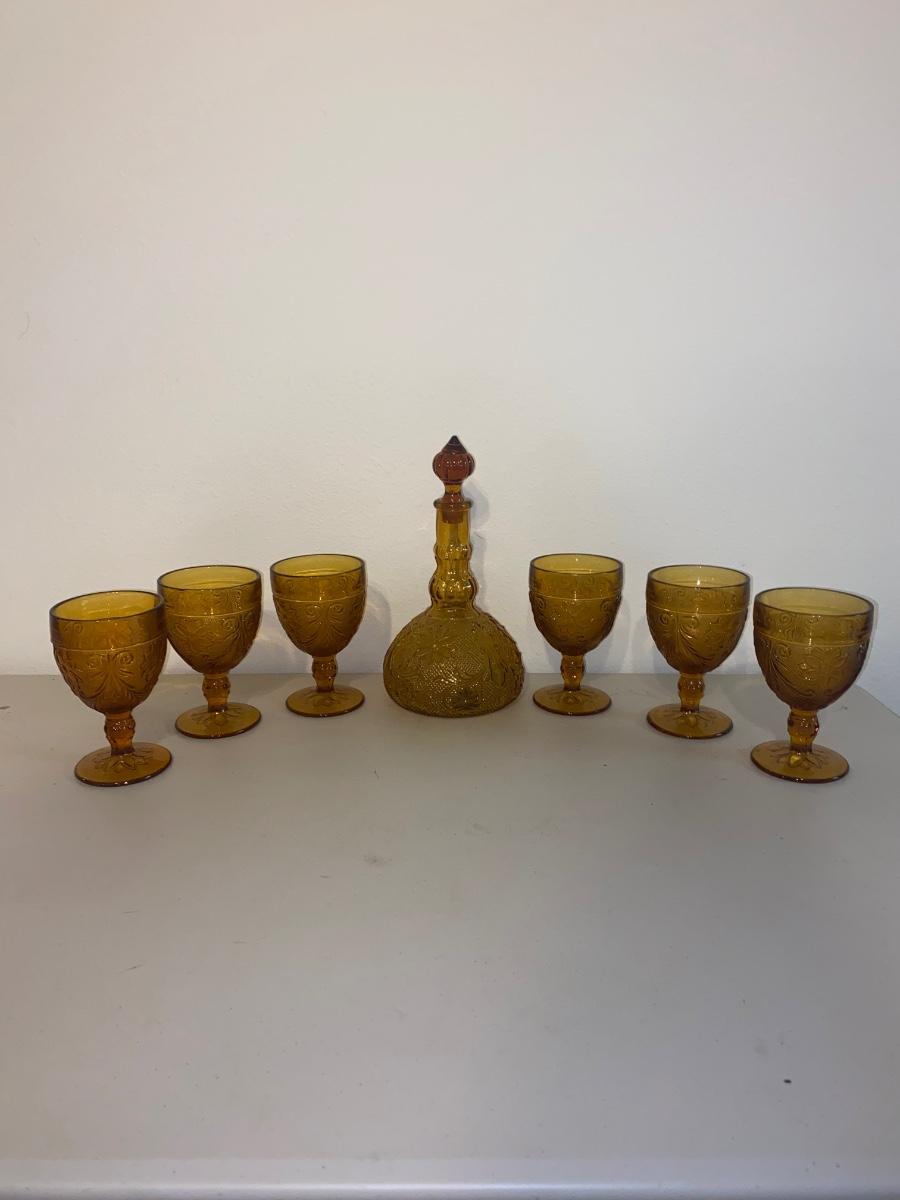 TIARA AMBER STEMMED GLASSES AND DECANTER