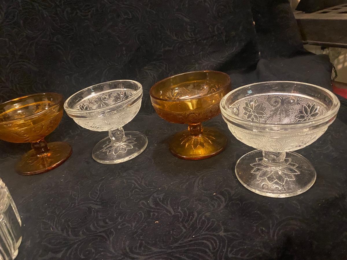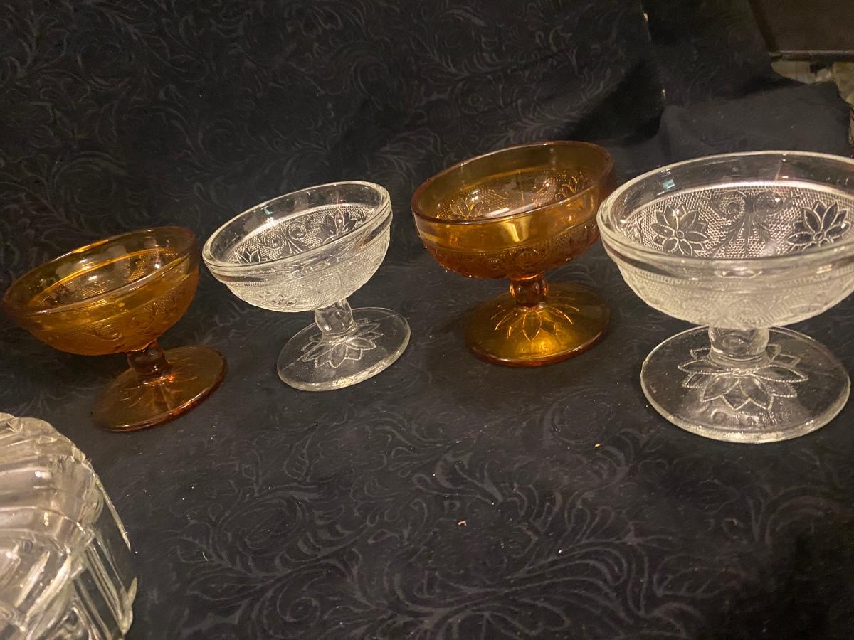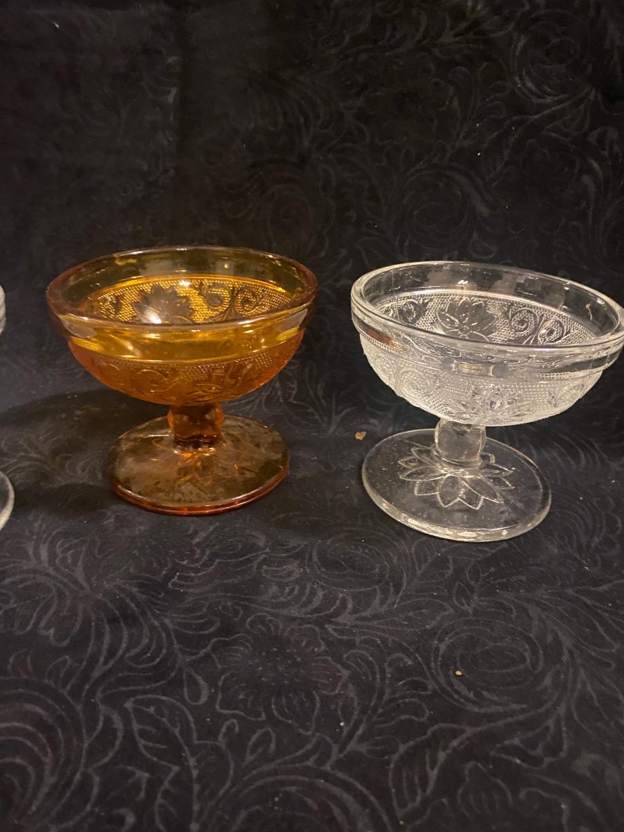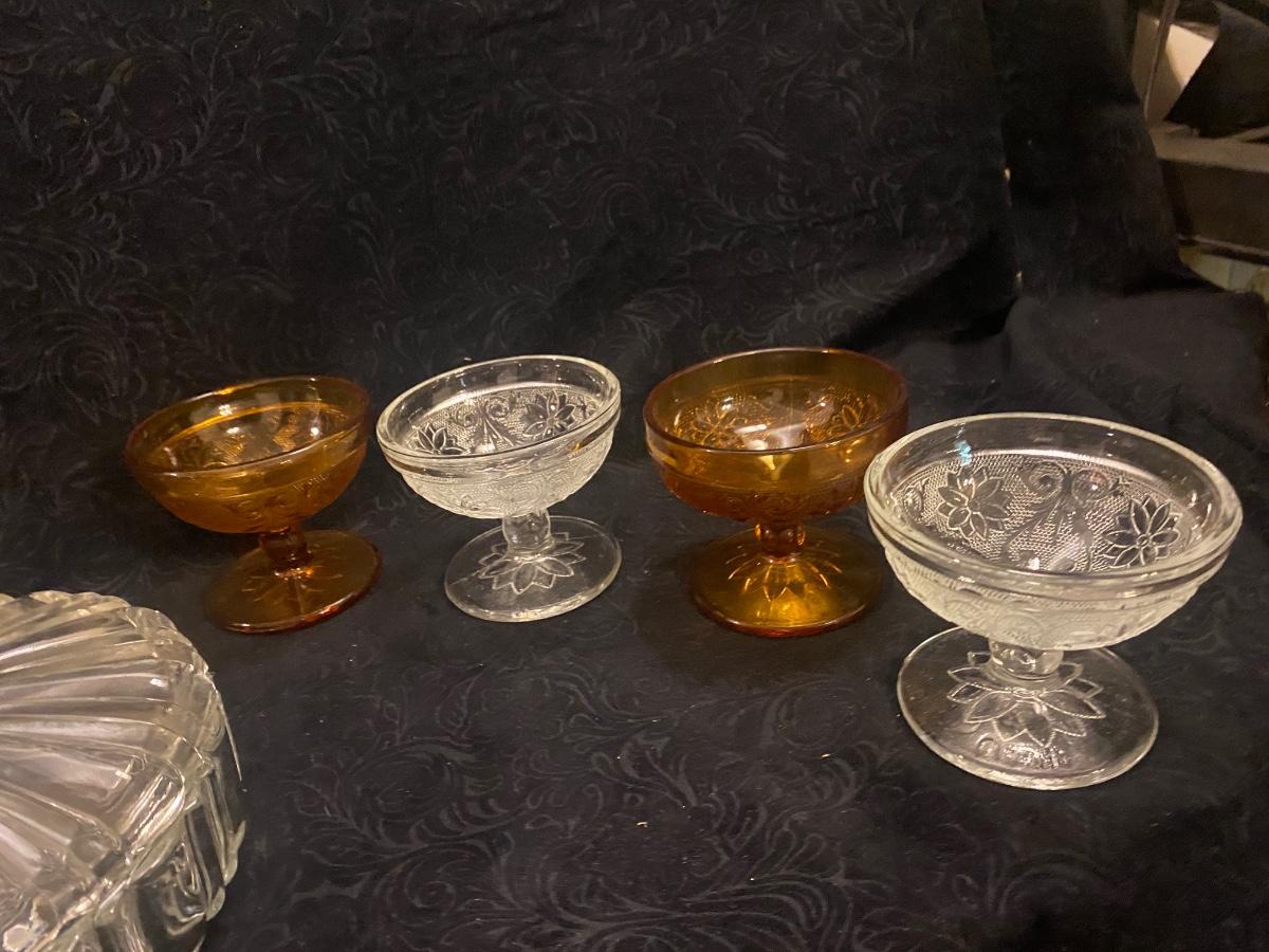 TIARA GLASS SORBET CUPS AND COVERED CANDY DISH