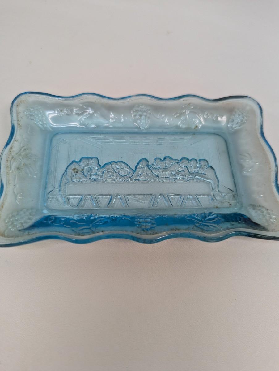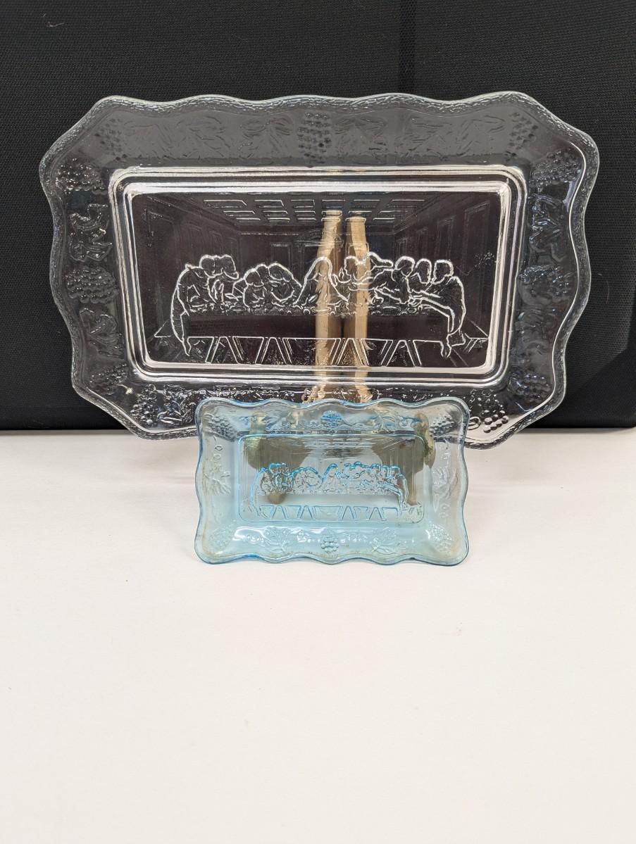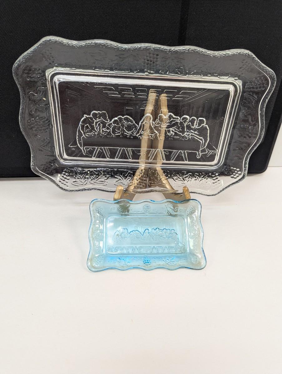Tiara Glass White 11" & Blue 7" Lord's Supper Trays