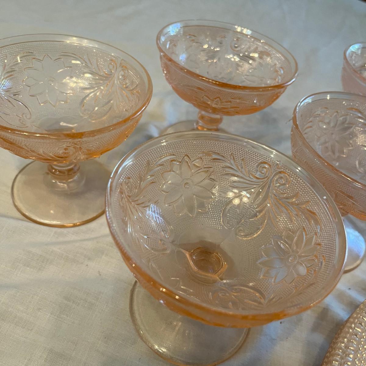 1980s vintage! Plates have a ring that fits the sherbets perfectly! No damage. Cute set.