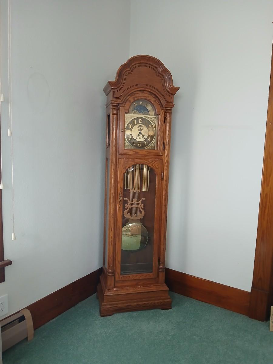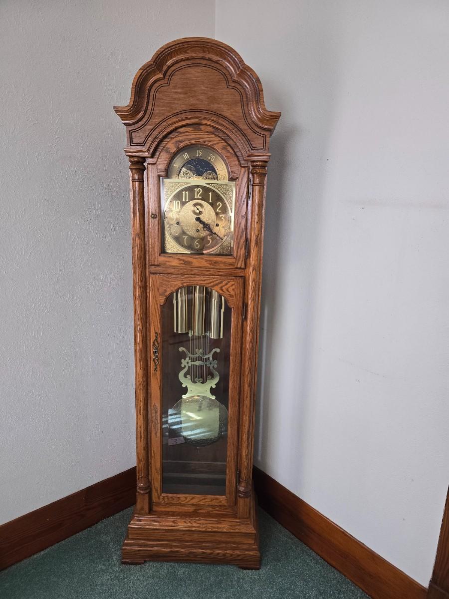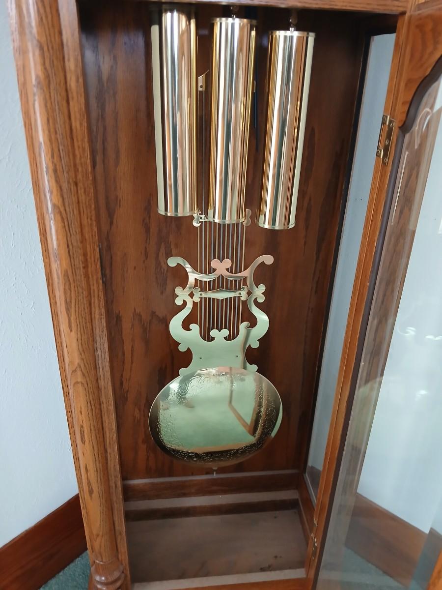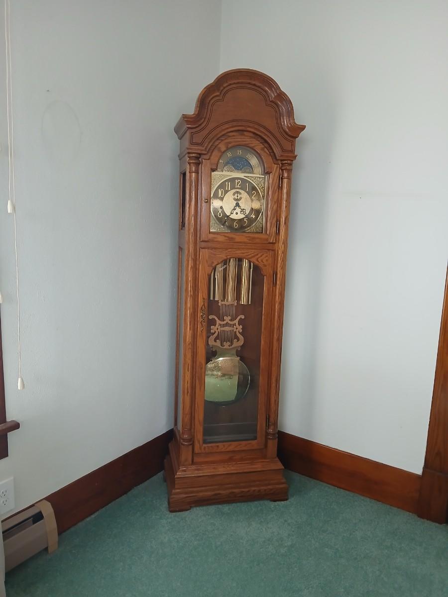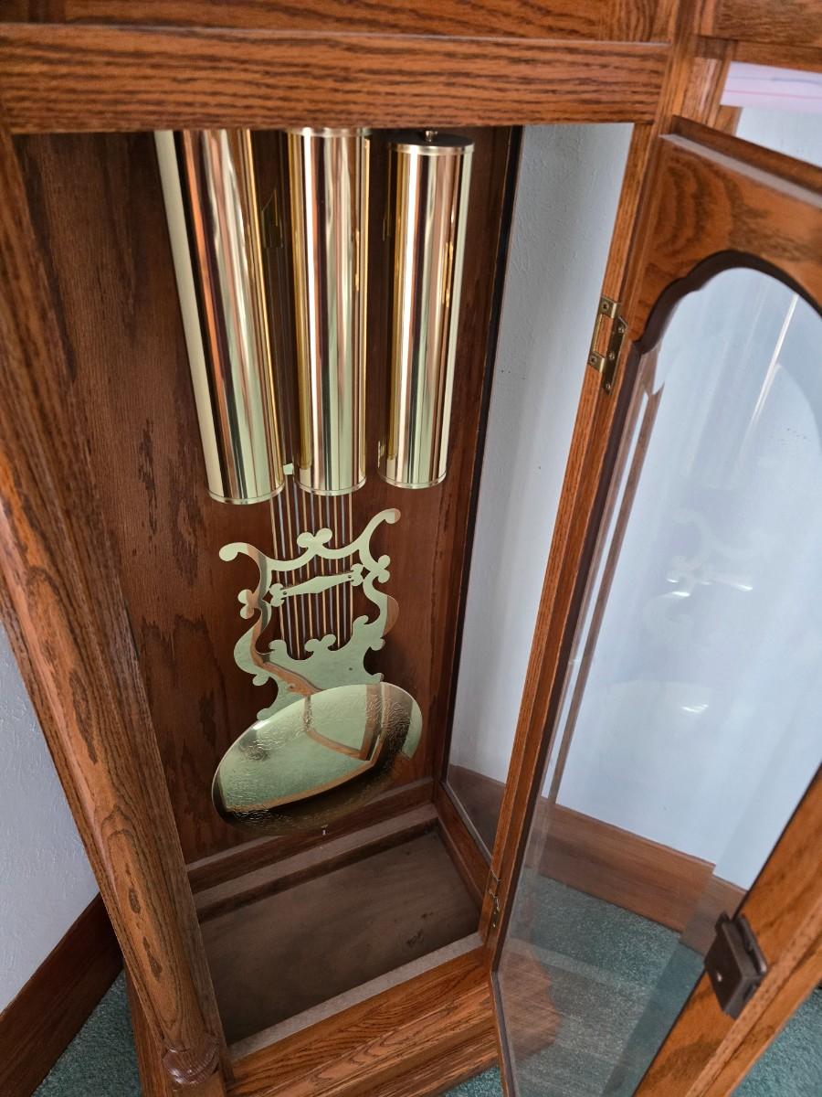 24 1/2" x 14 1/2" x 85", Weight driven, has key, runs and chimes, Local Pickup Only