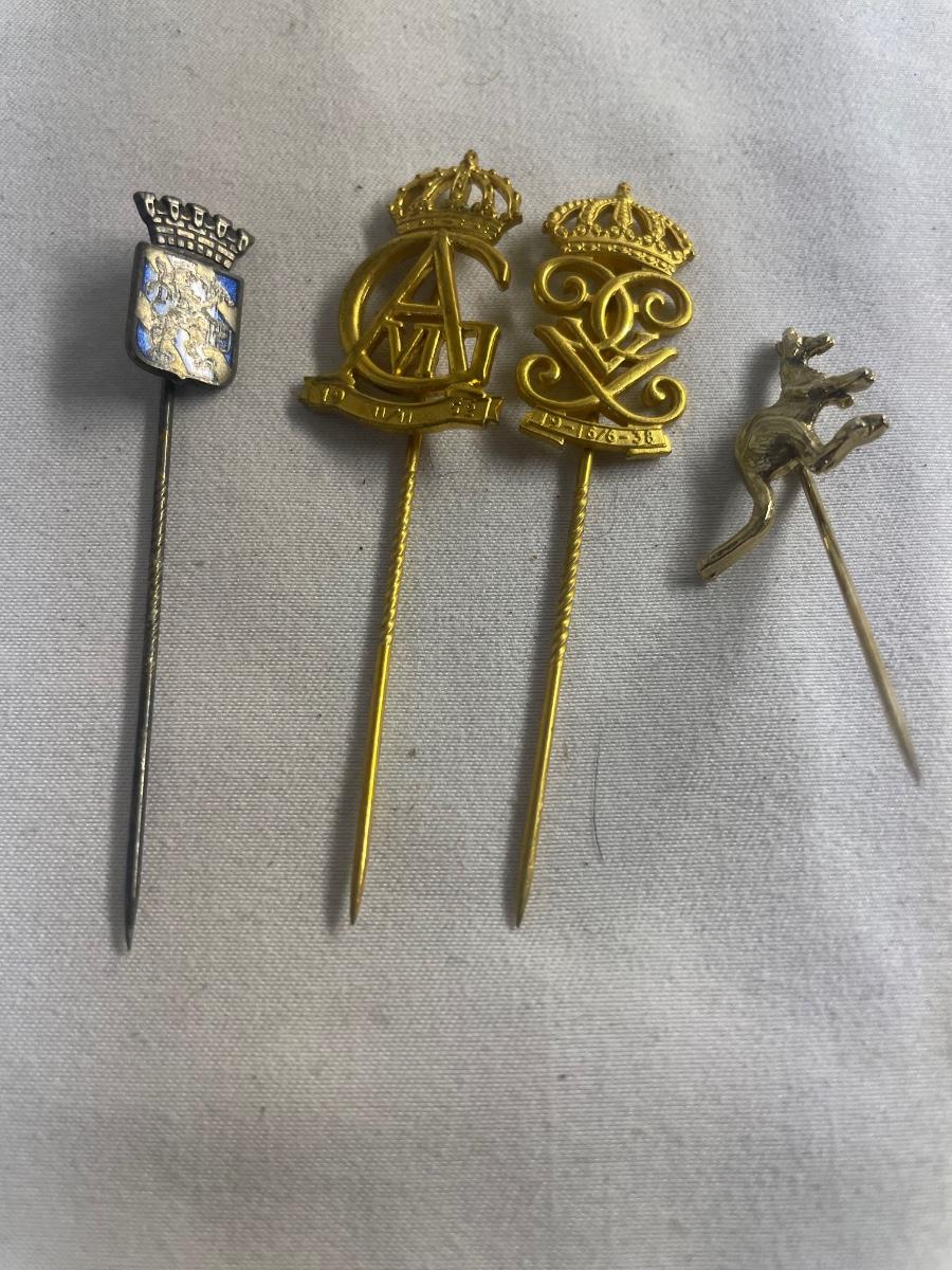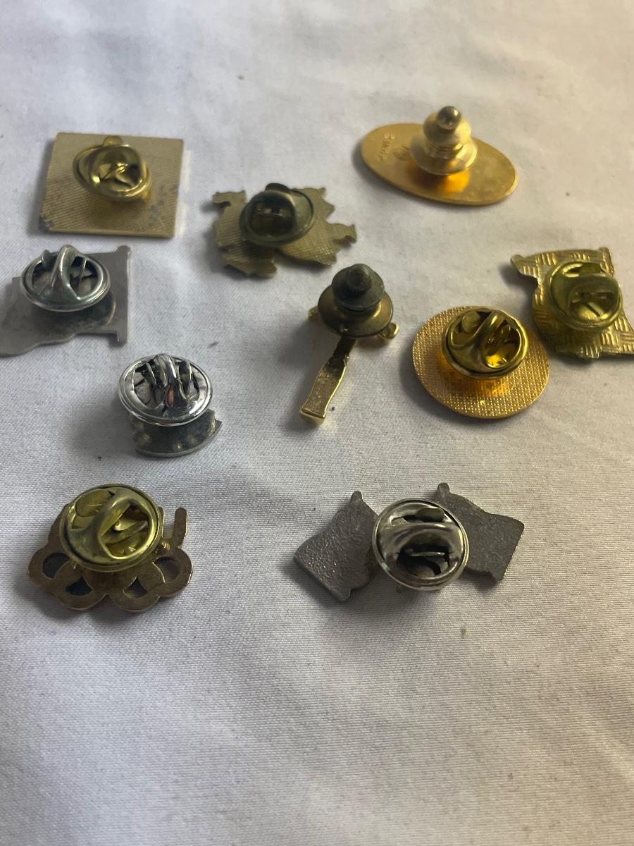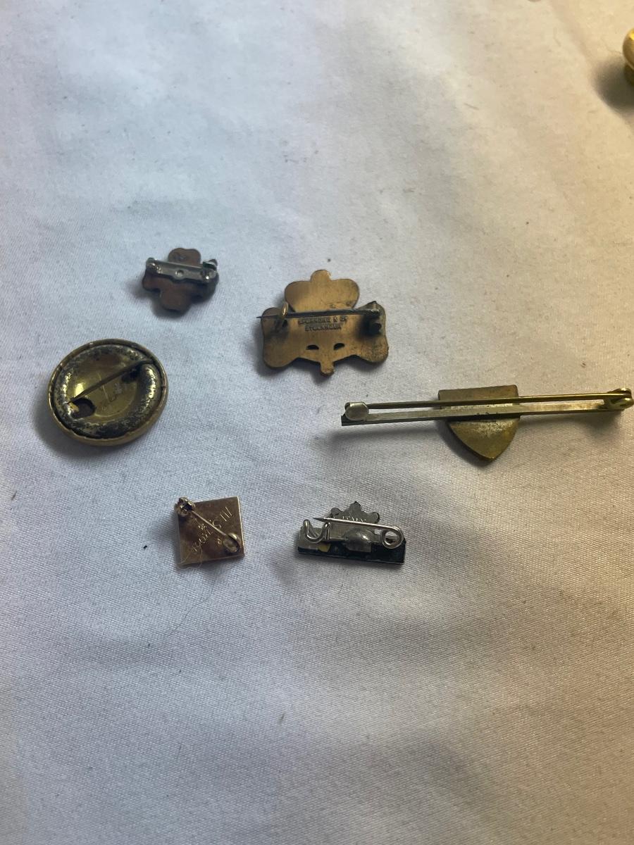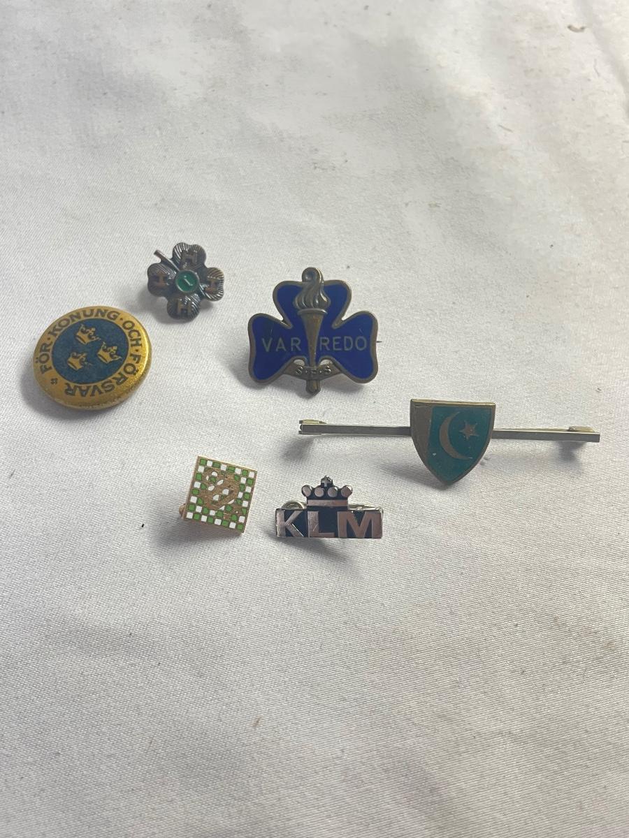 This lot includes plenty of International pieces from places such as Scotland, England, Wales and more. Lot includes 6 tie pins (largest measures @ 2” long), 11 lapel pins plus 15 smaller pins, a pair of cufflinks and a small plaque with herons that measures 0.75” x 1”.