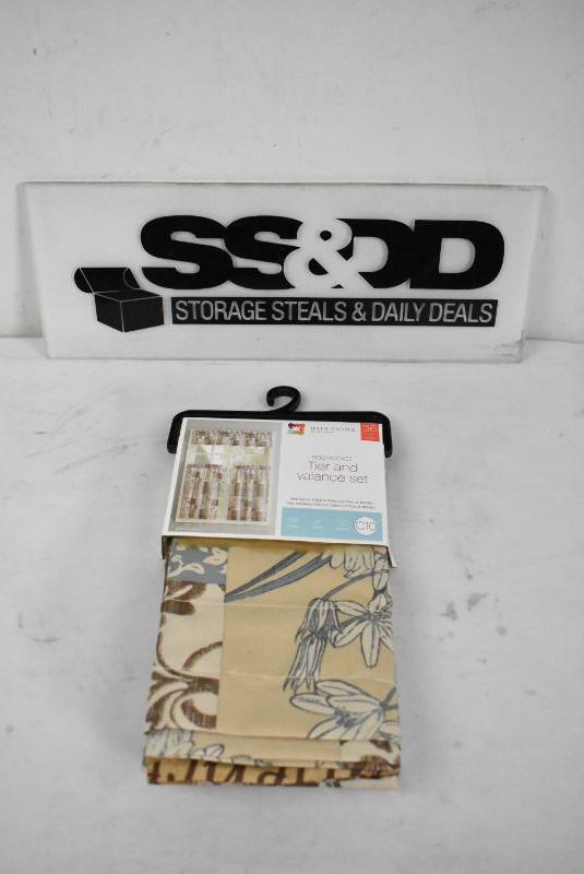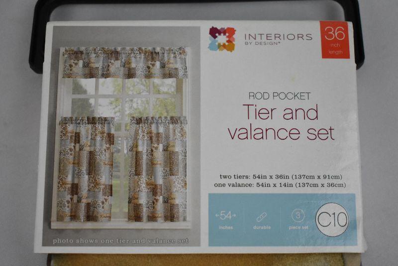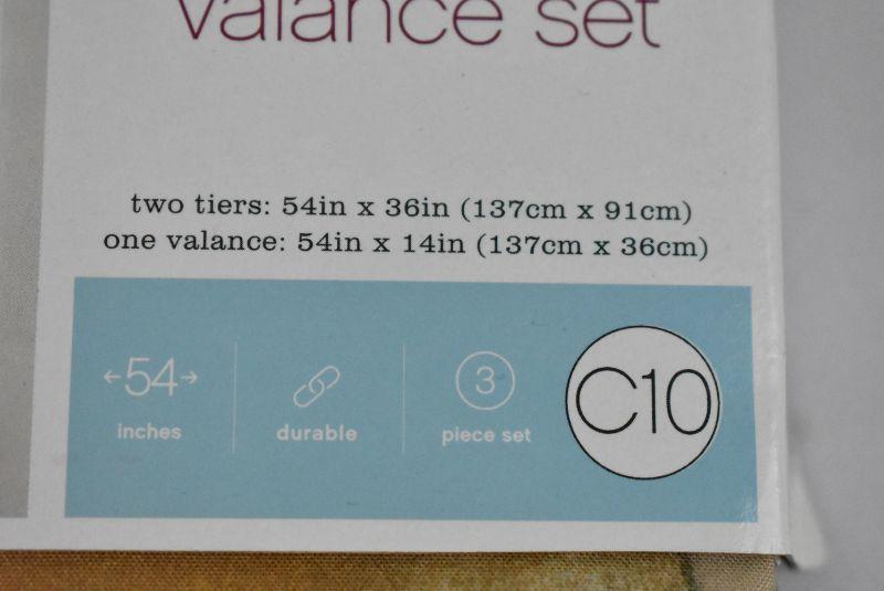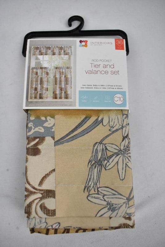 Tier & Valance Set, Tan & Blue Floral Patchwork - New