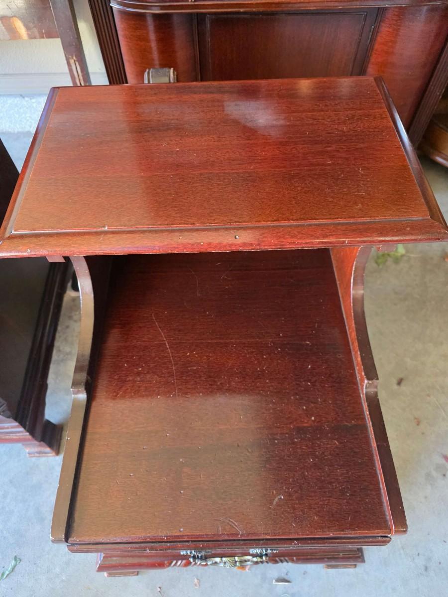 Tiered Side Table. Does need TLC as pictured. 22.5"L x 18"W x 26"H.