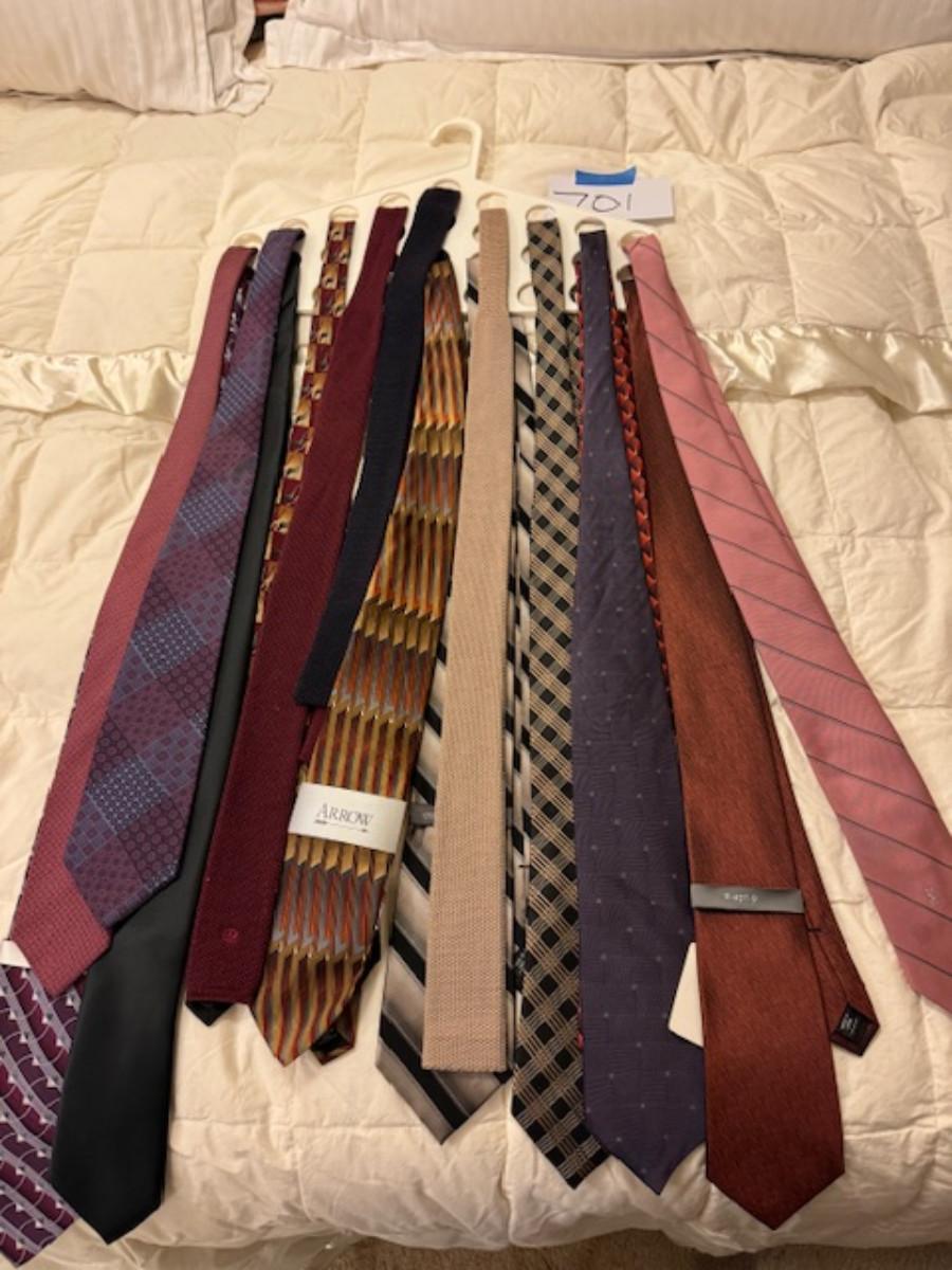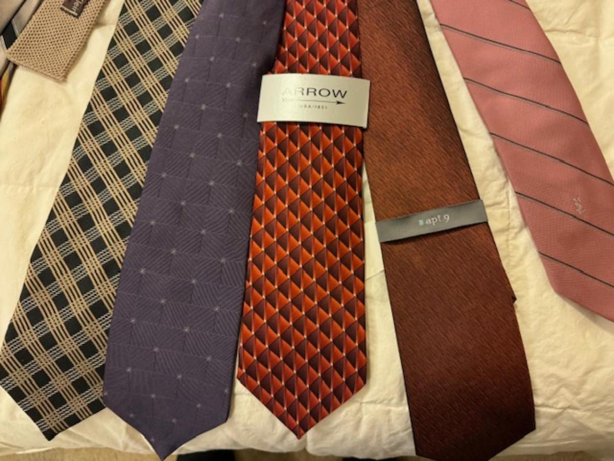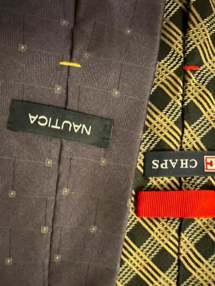 Holder not included: Men's warehouse, arrow x 3, apt 9 x 1, croft and barrow x 1, Yves St. Laurent, Nautica, Jordache, Chaps, Brownstone NY, Jerry Garcia, Calvin Klein, Pierre Cardin, Polo Ralph Lauren.