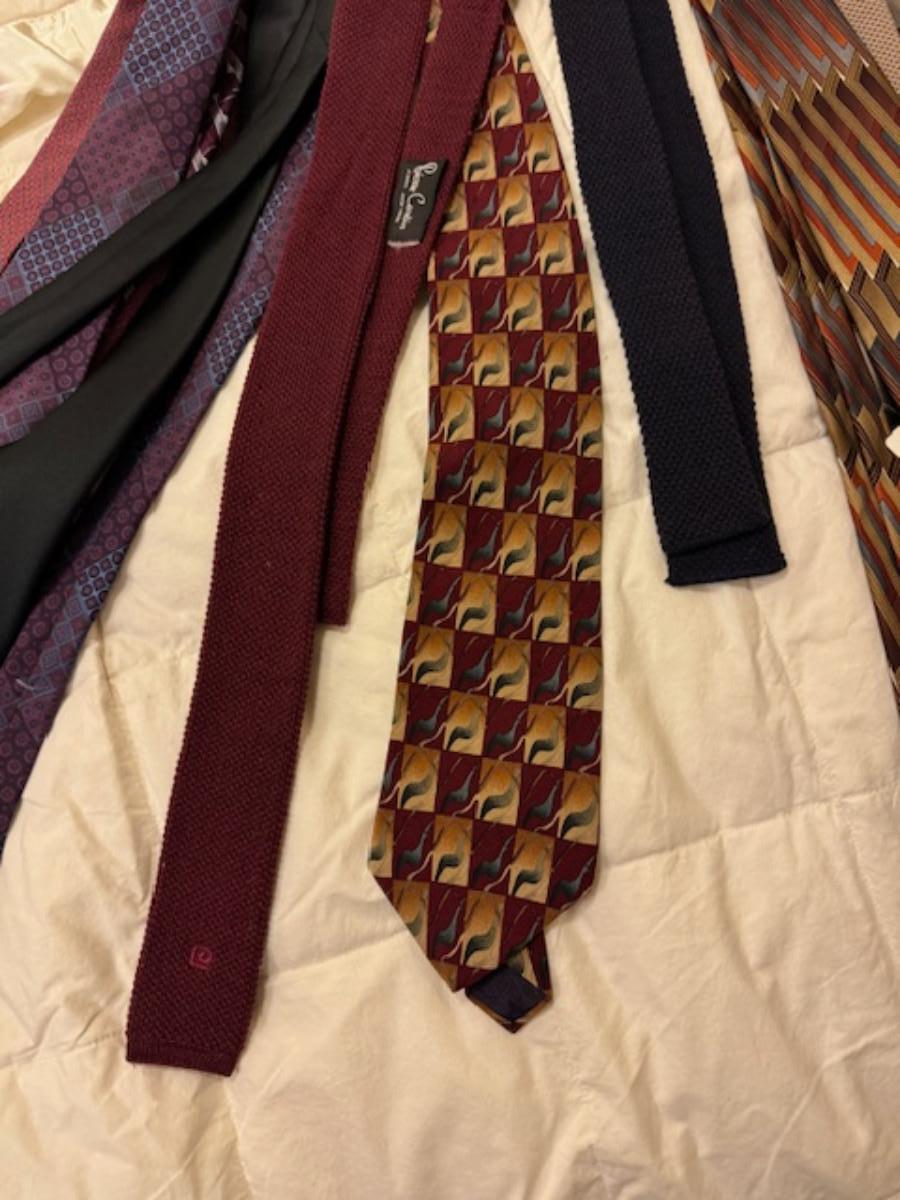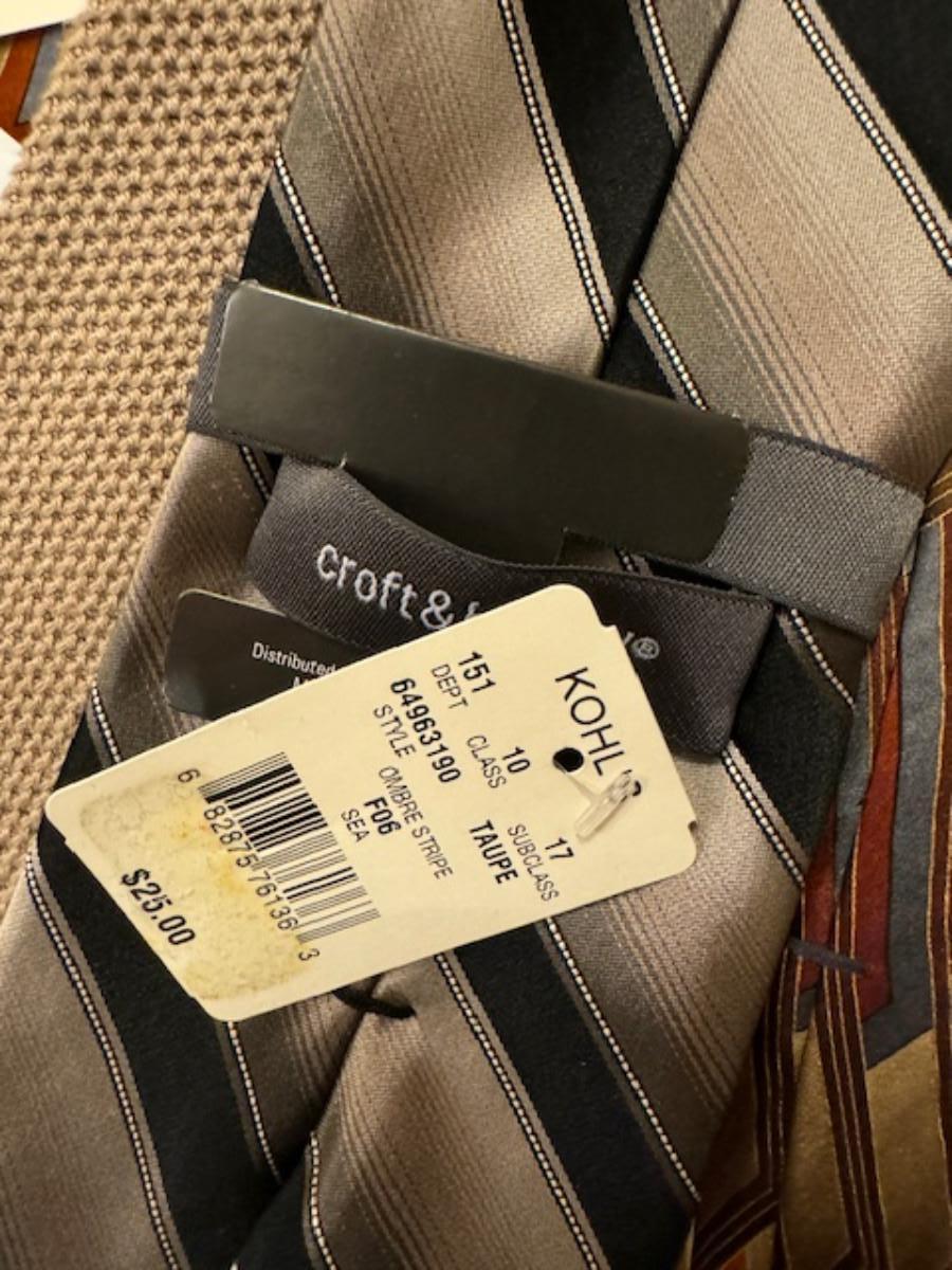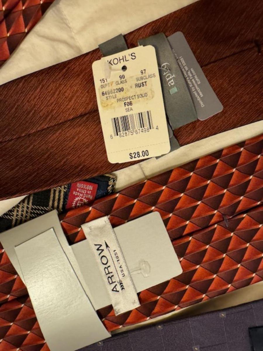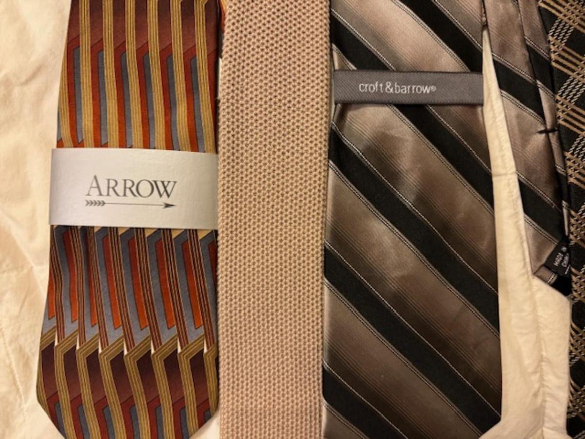 Holder not included: Men's warehouse, arrow x 3, apt 9 x 1, croft and barrow x 1, Yves St. Laurent, Nautica, Jordache, Chaps, Brownstone NY, Jerry Garcia, Calvin Klein, Pierre Cardin, Polo Ralph Lauren.