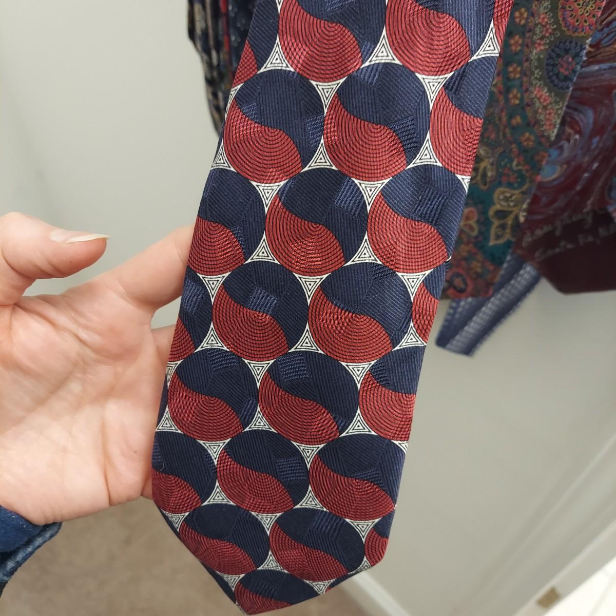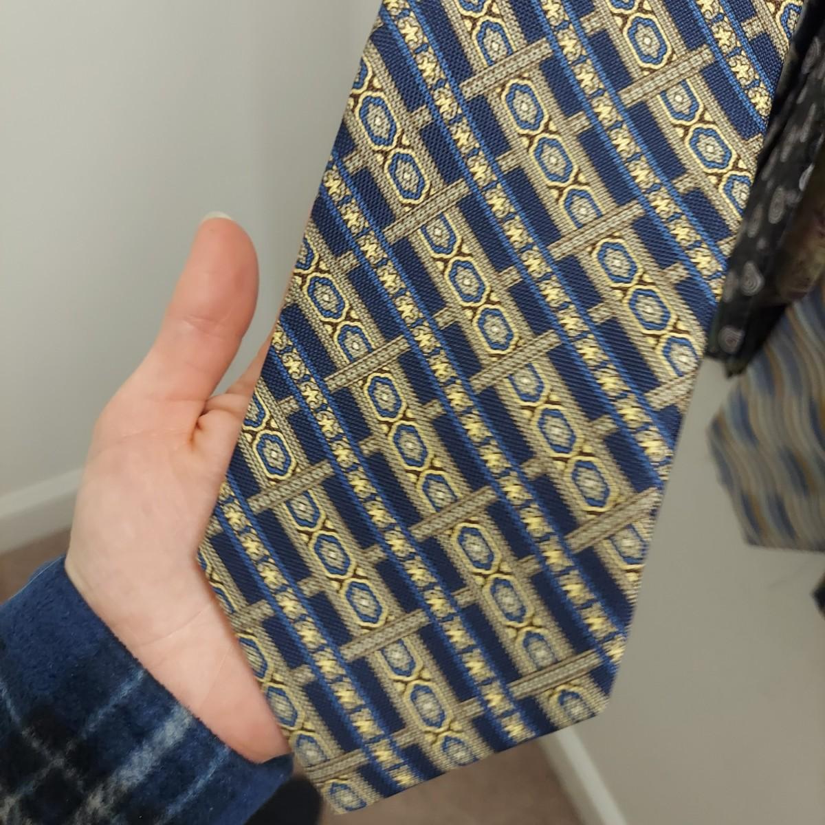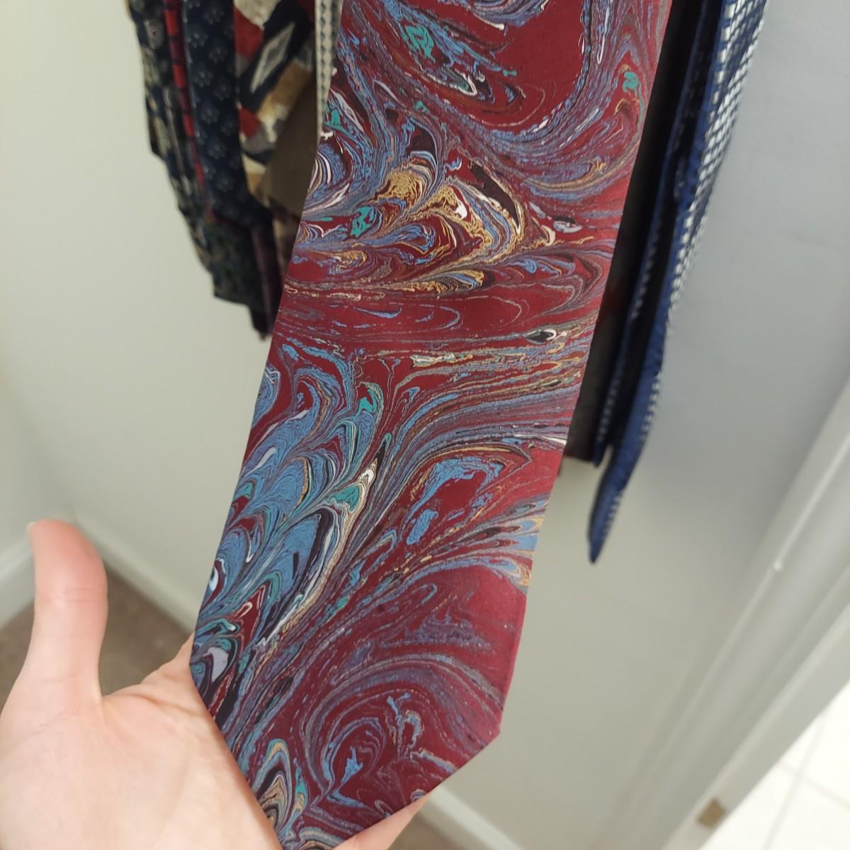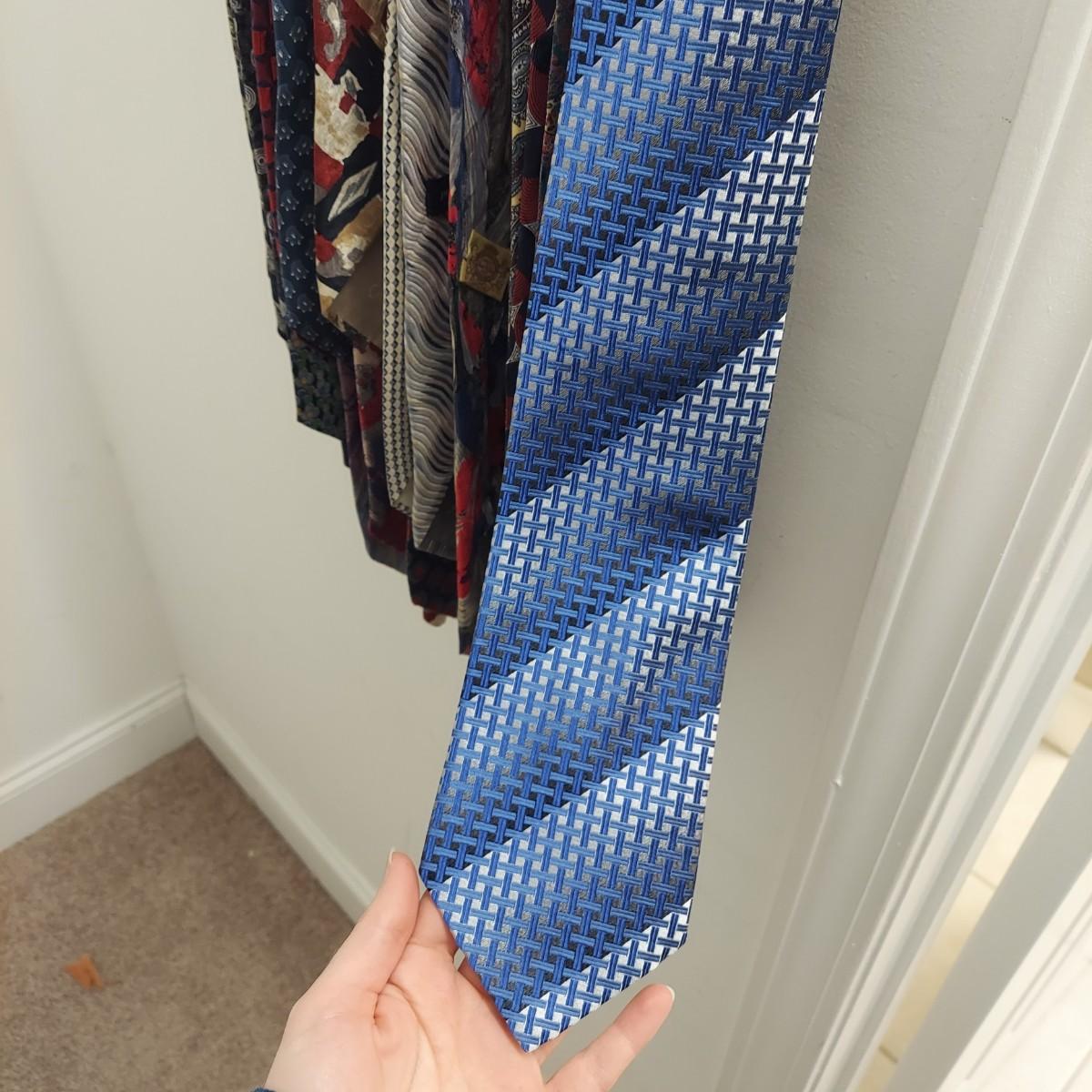 Lot includes 20+ neckties, four leather belts size 34 waist and one pair of leather driving gloves. Please see photos for details. Shipping available