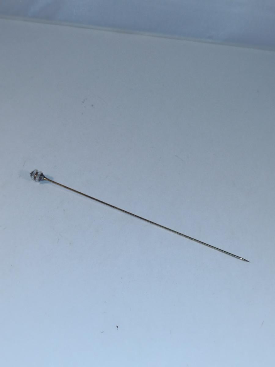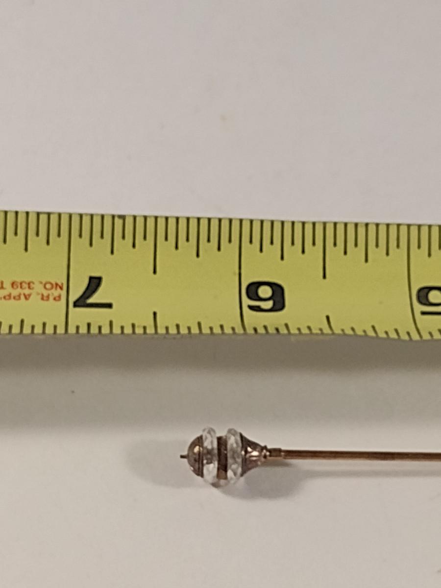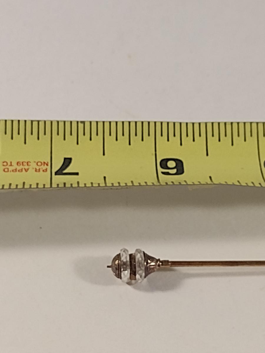 Tiffany & Co 14 Karat Yellow Gold and Faceted Crystal Hatpin. Item is approx 6 1/2" long.