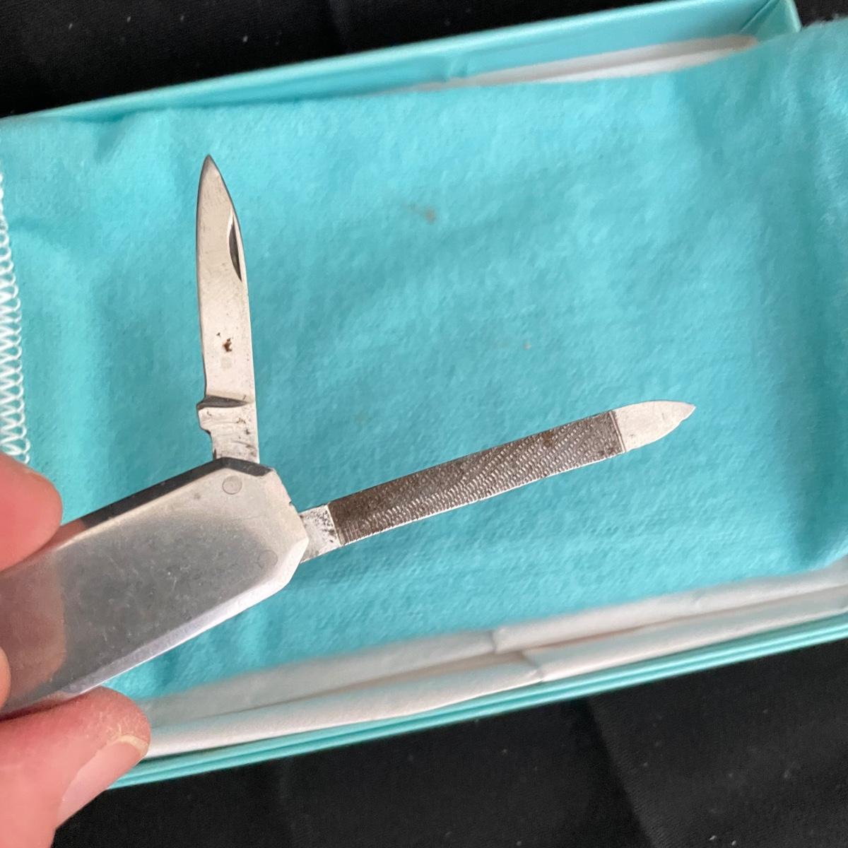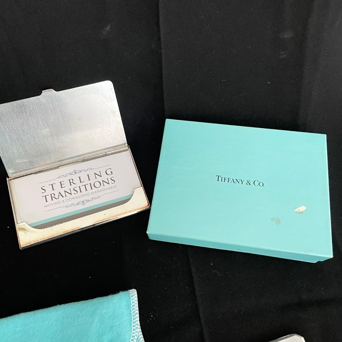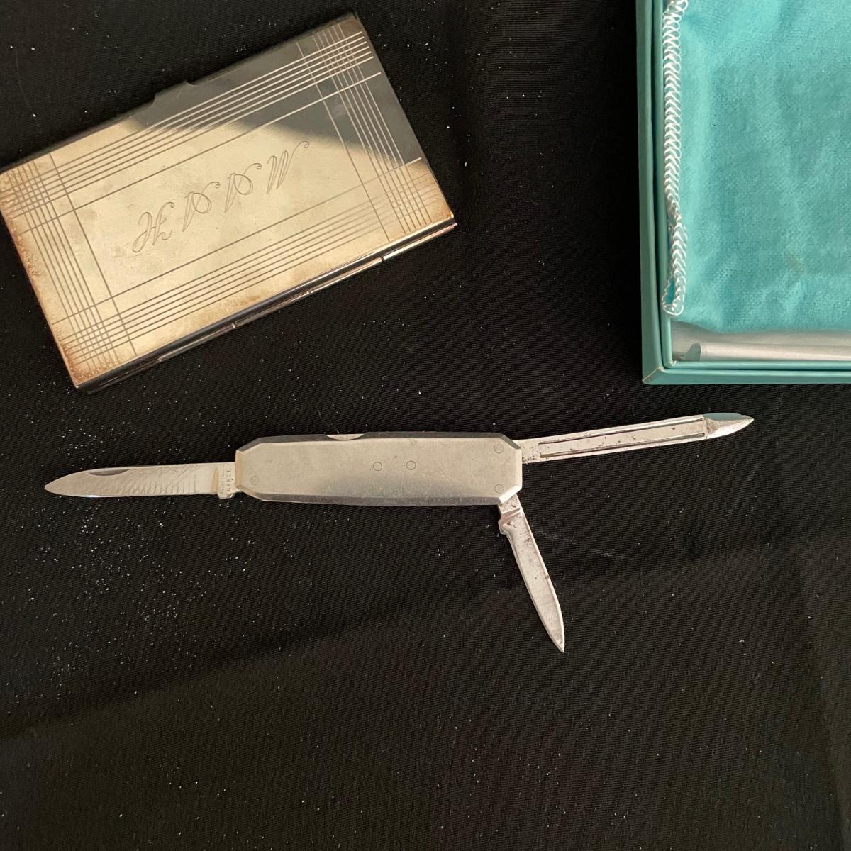 Engraved Tiffany & Co business card case with bag and box. Lot also includes a 2.5” stainless pocket knife. See images. Shipping available.