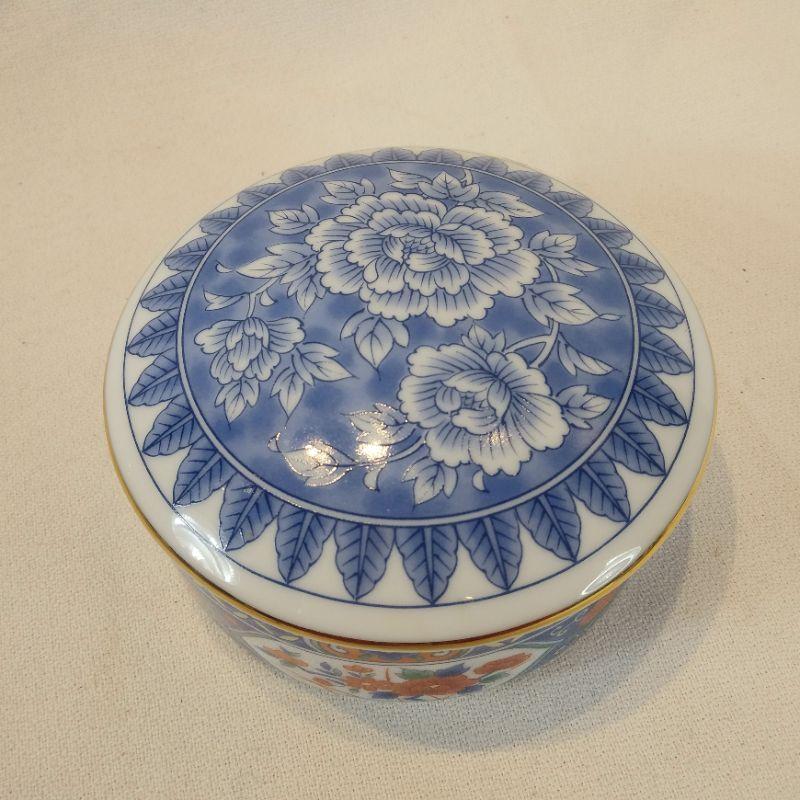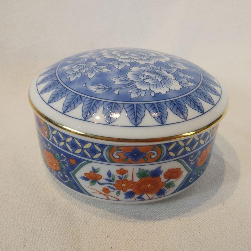 This pretty oriental-influenced porcelain Trinket Box is marked Tiffany & Co. on its bottom. It measures 4-inches in diameter X 2-inches tall. Very good condition - no chips or cracks. Straight from 5th Avenue in NYC, just missing that stylish blue box.