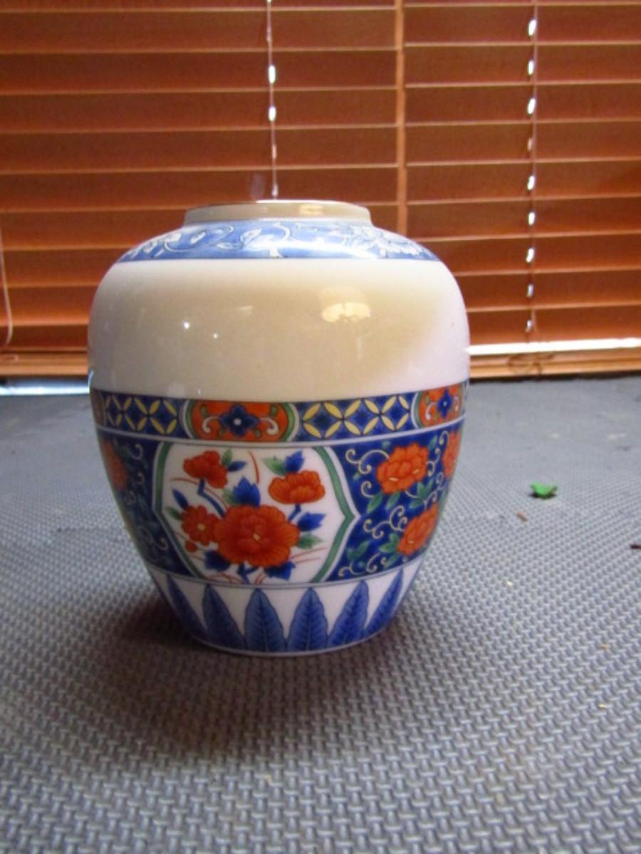 Tiffany & Co Painted Ceramic Ginger Jar Vase-Approx 5 1/2" Tall (G)