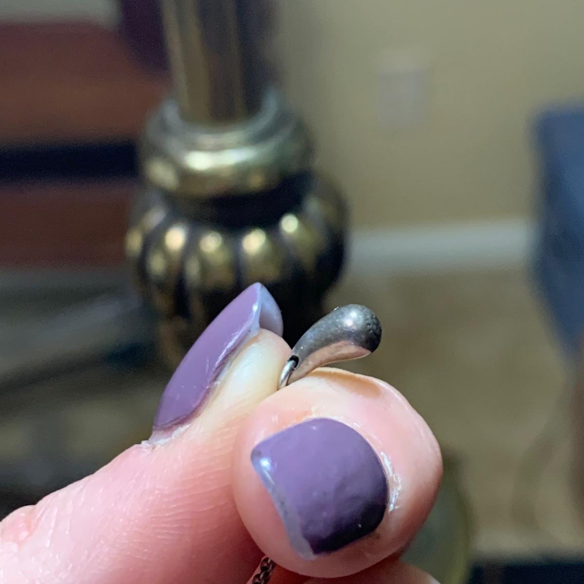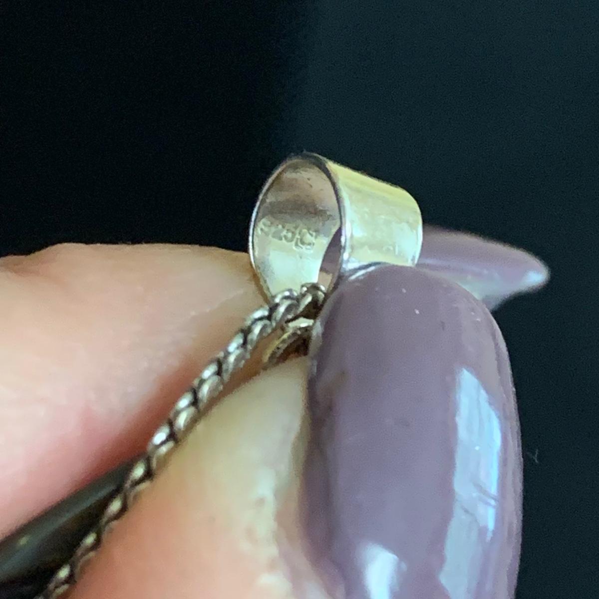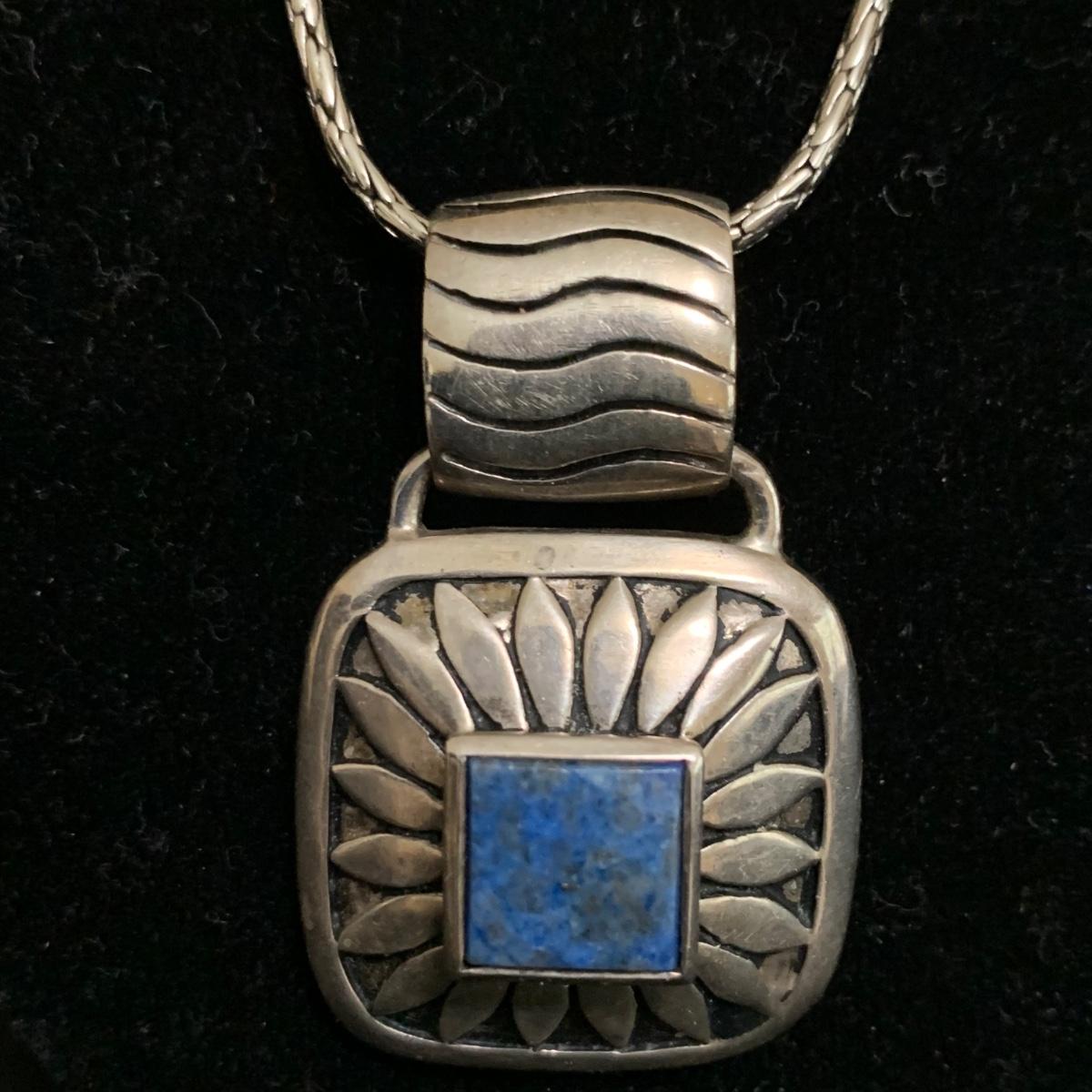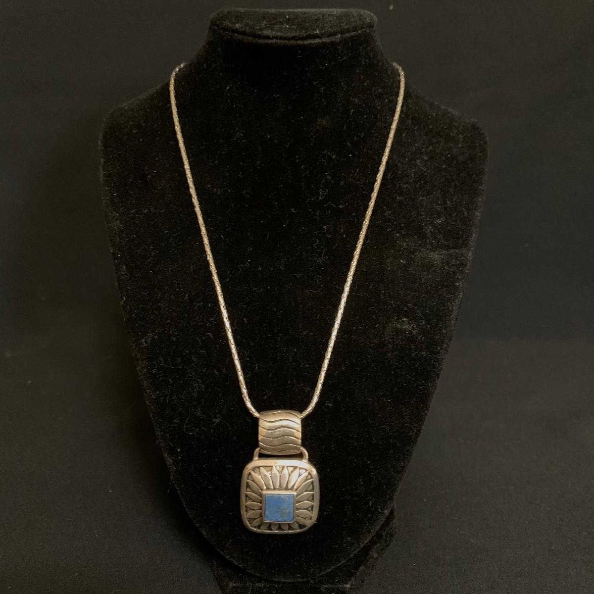 Eleven total necklaces in this collection, including three pendants. The necklace with the small teardrop shaped pendant is marked “Tiffany & Co.” & “Peretti”. The Tiffany chain is 18”. Six necklaces (including the Tiffany & Co.), as well as the two larger pendants, are marked Sterling/925. The gold-toned necklace chain is marked “1/20 12k GF”. The longest necklace, the gold-toned chain with the pearl-like beads, is 30“, and the shortest chain is 16“.