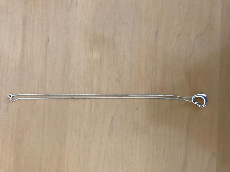 Lovely open heart sterling pendant by Elsa Peretti marked Tiffany & Co. 925 Sterling on 18" Chain marked sterling on clasp.