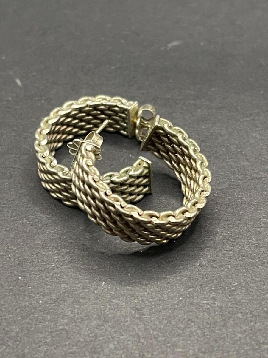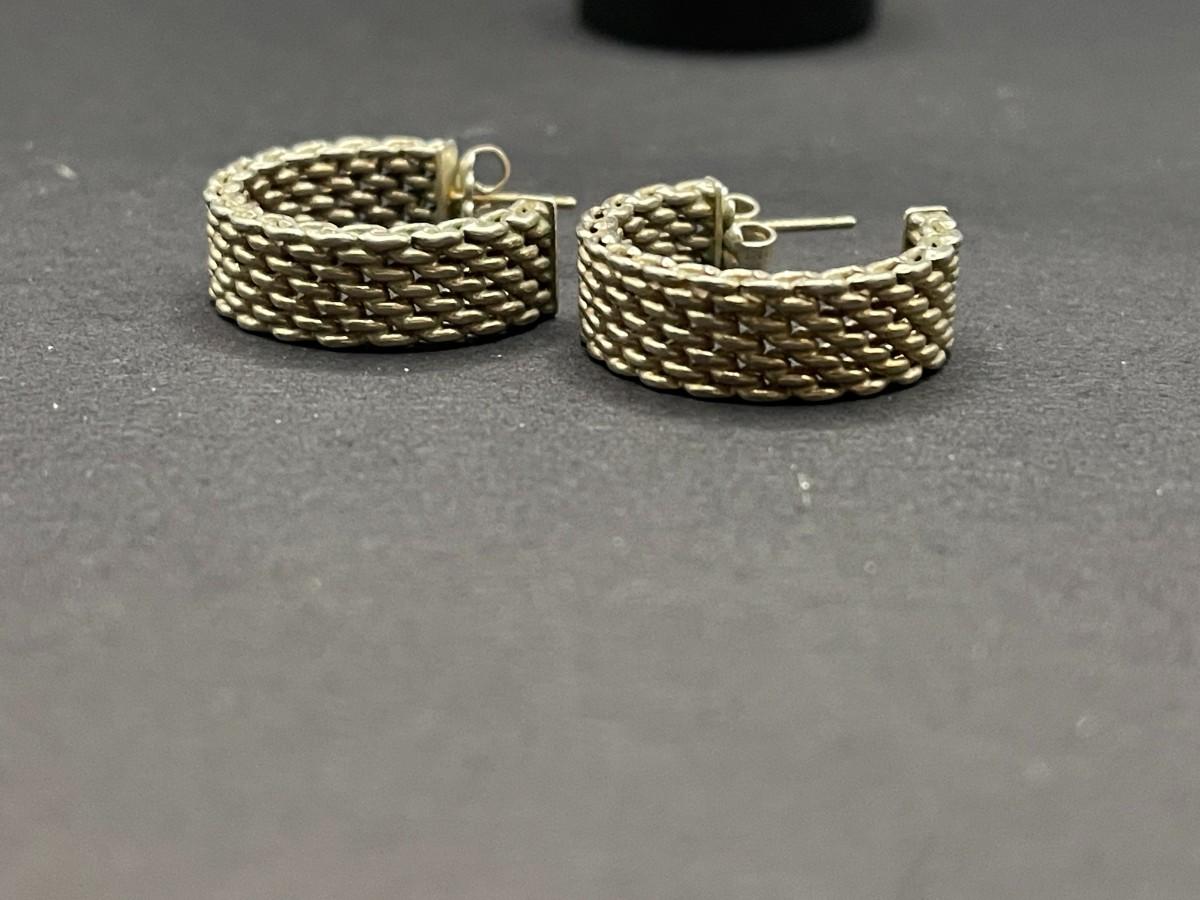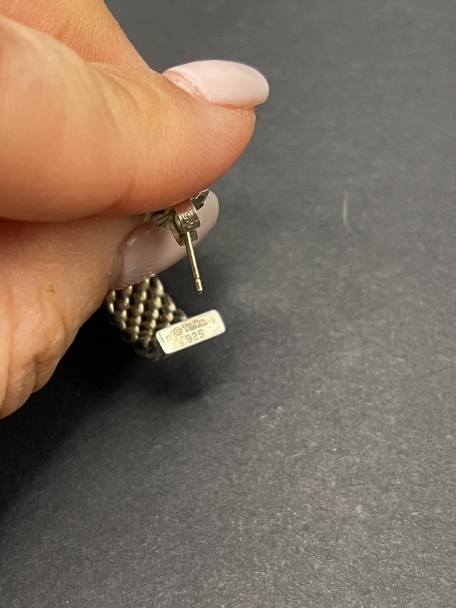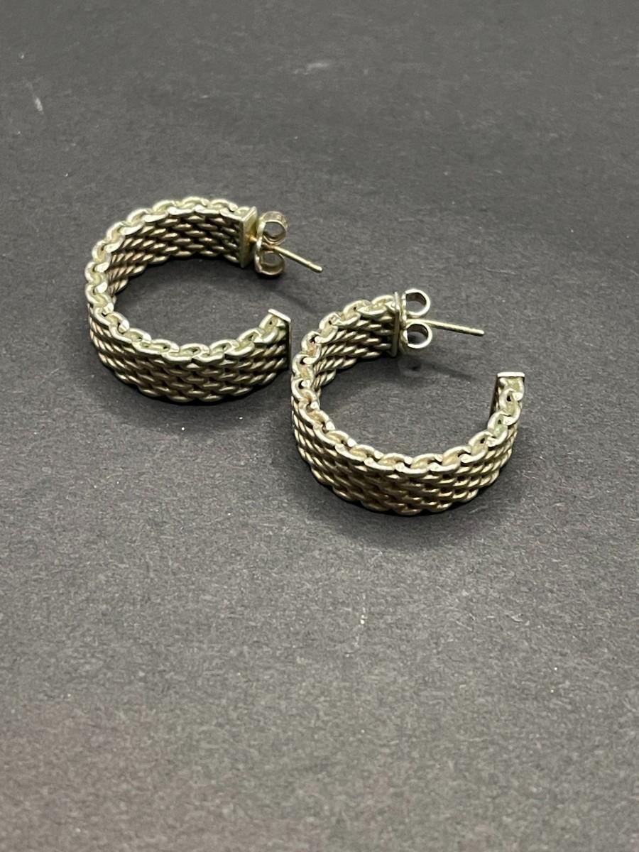 Tiffany & Co sterling silver mesh hoop earrings. Marked T&Co, 925. Good condition. Authentic.