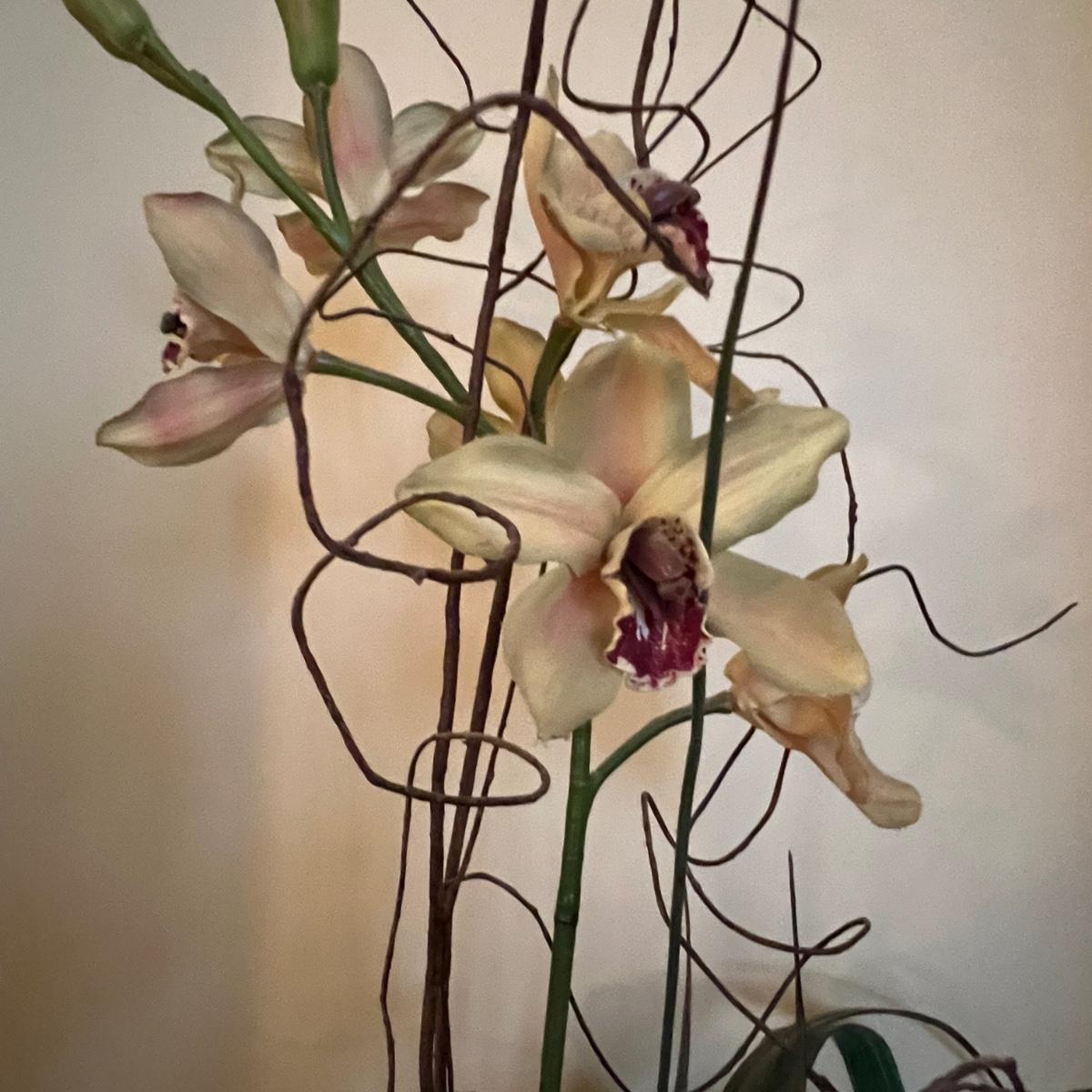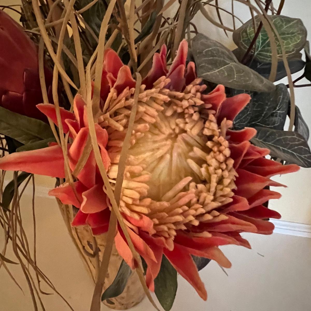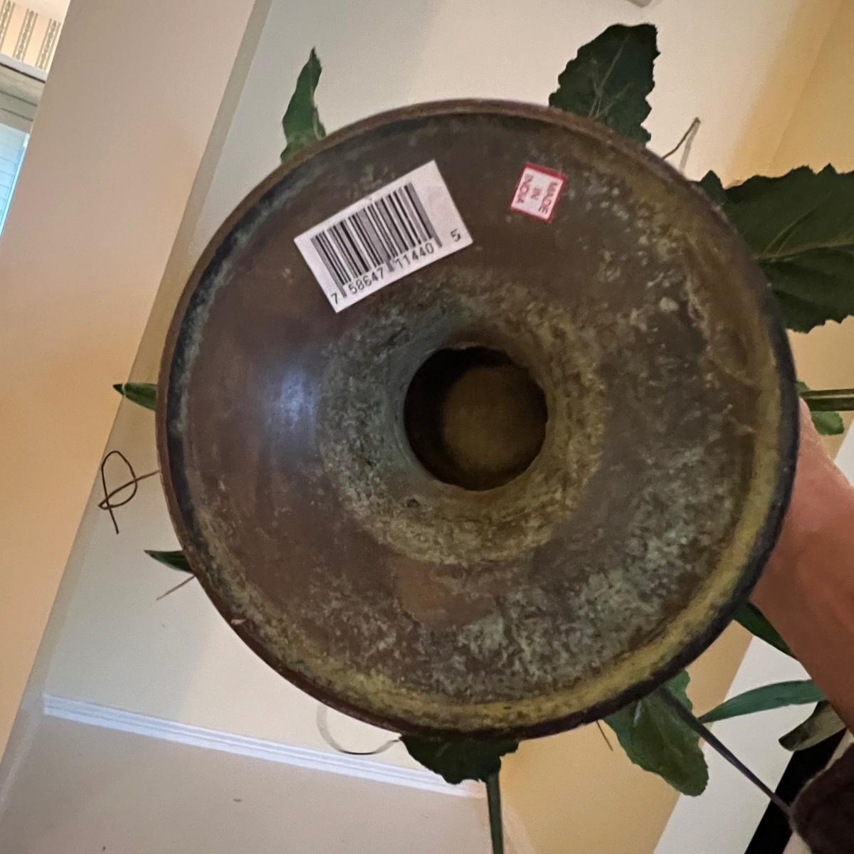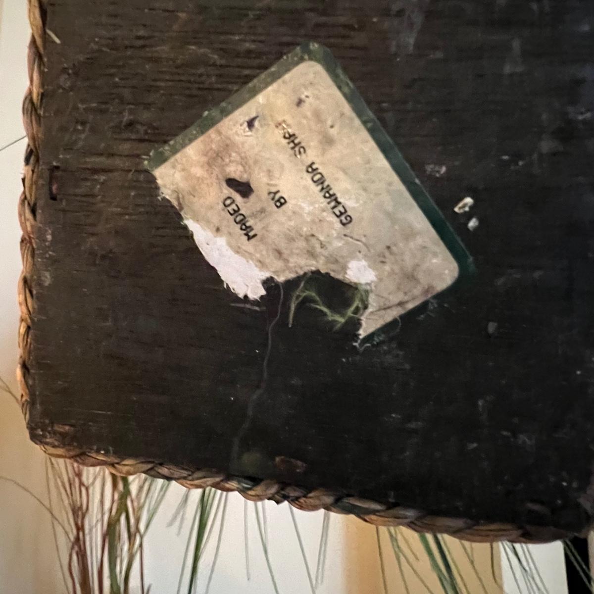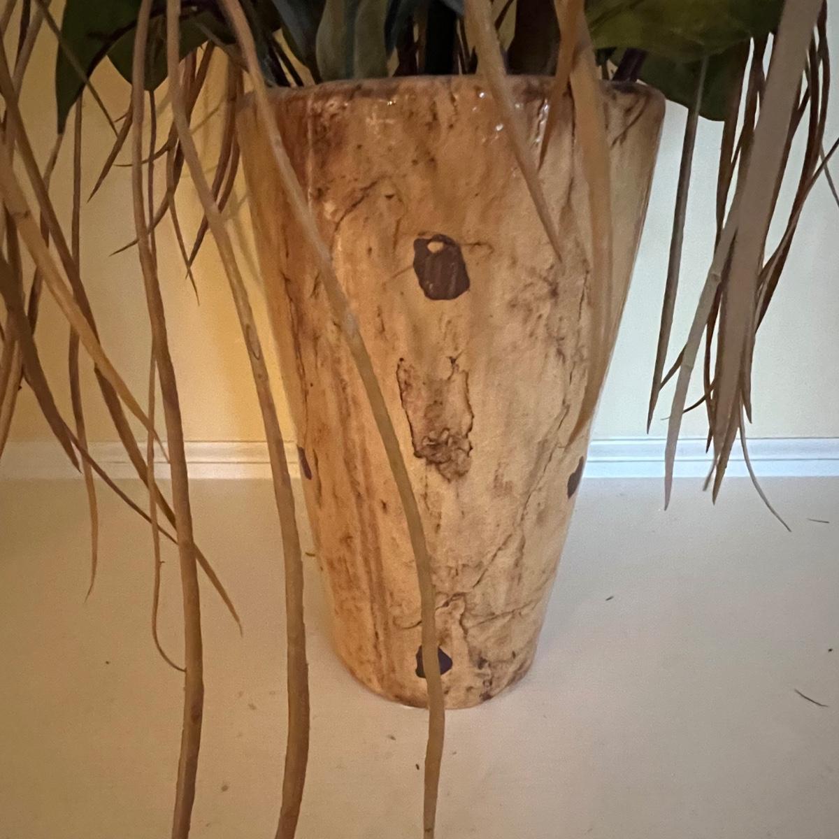 Five faux floral arrangements plus over 20 peacock feathers. Vases include a faux wood (this is the tallest vase measuring 7”D x 22”H), a woven rope, metal urn and two ceramic; the ceramic tulip vase is made by Tiffany & Co and measures 3”D (base) x 9”H.